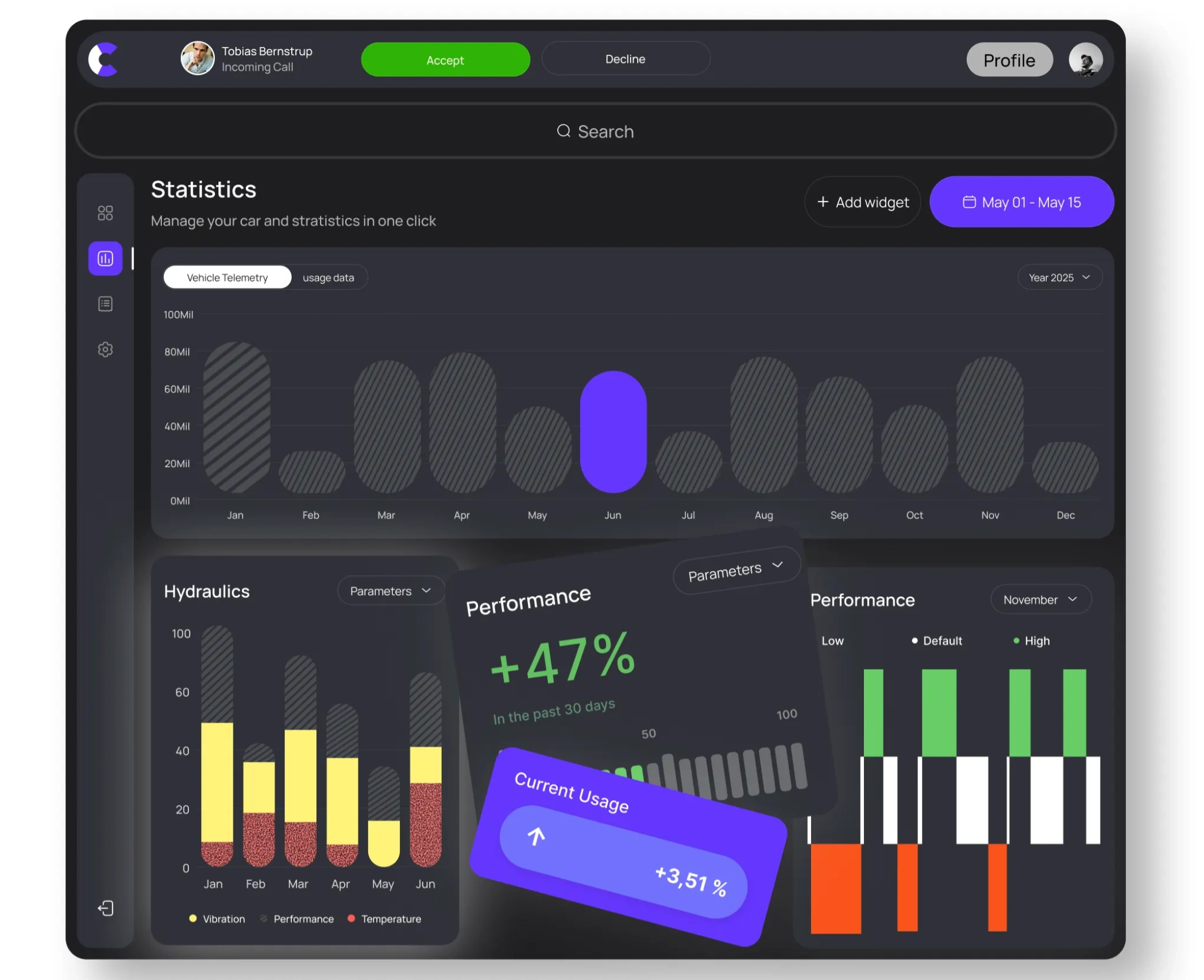 Dashboard interface designed to unify vehicle telemetry, performance data, and control insights into a single intuitive display.