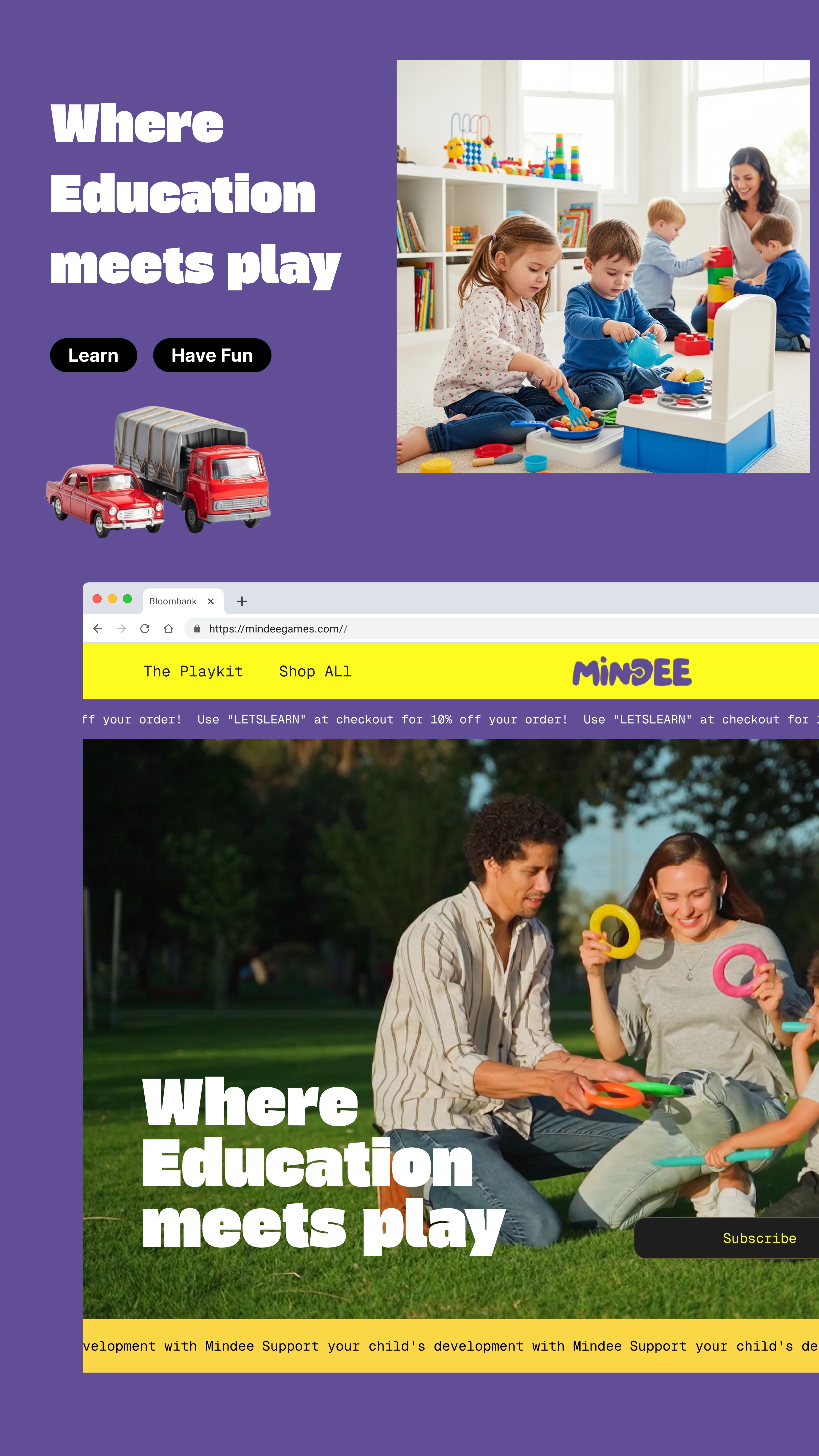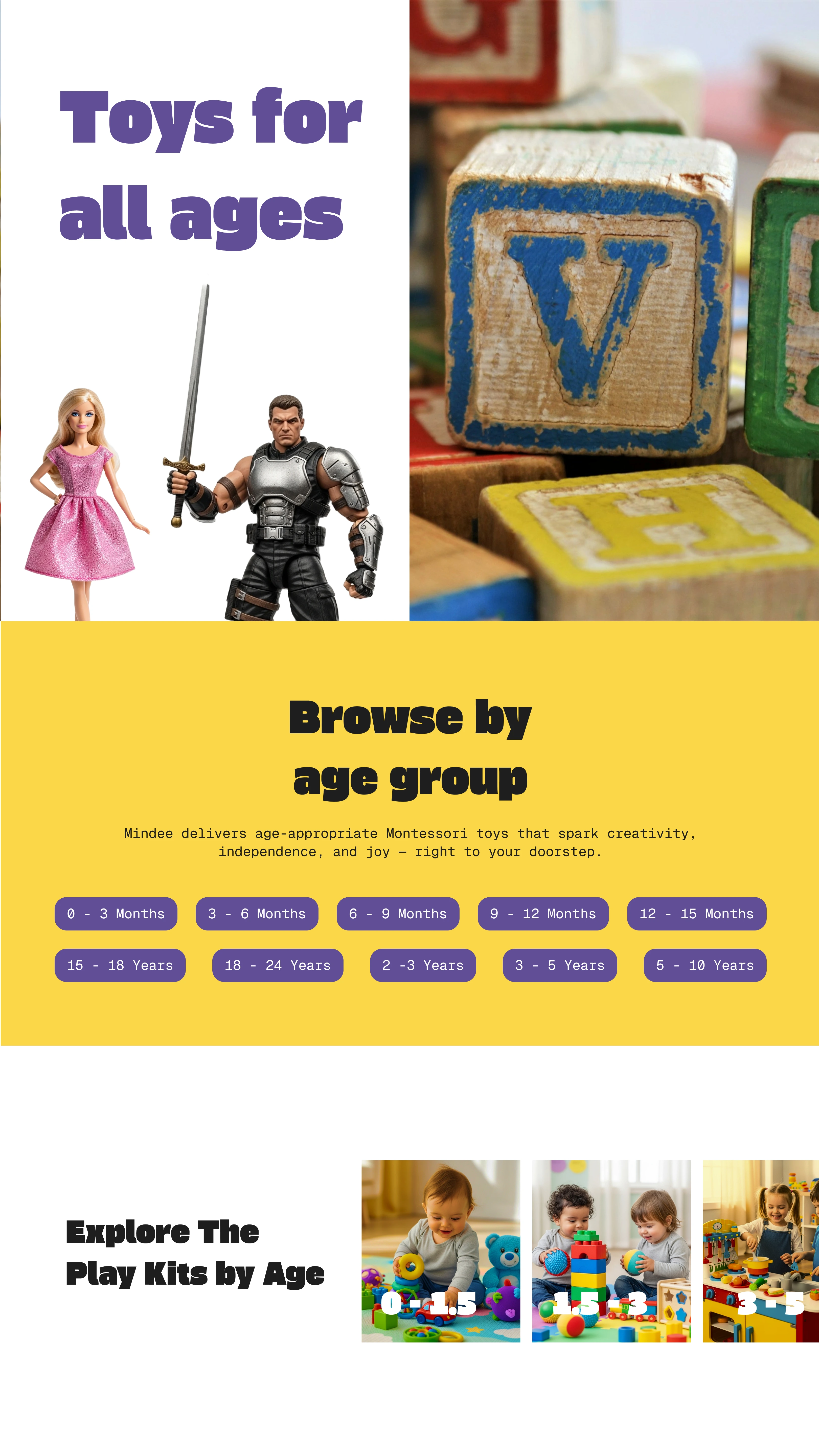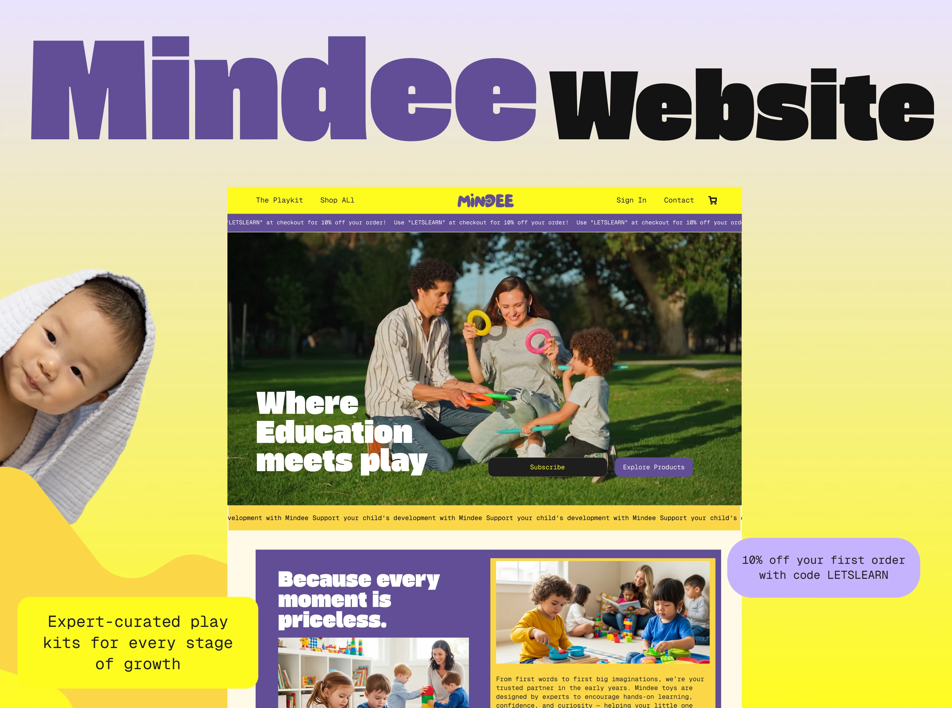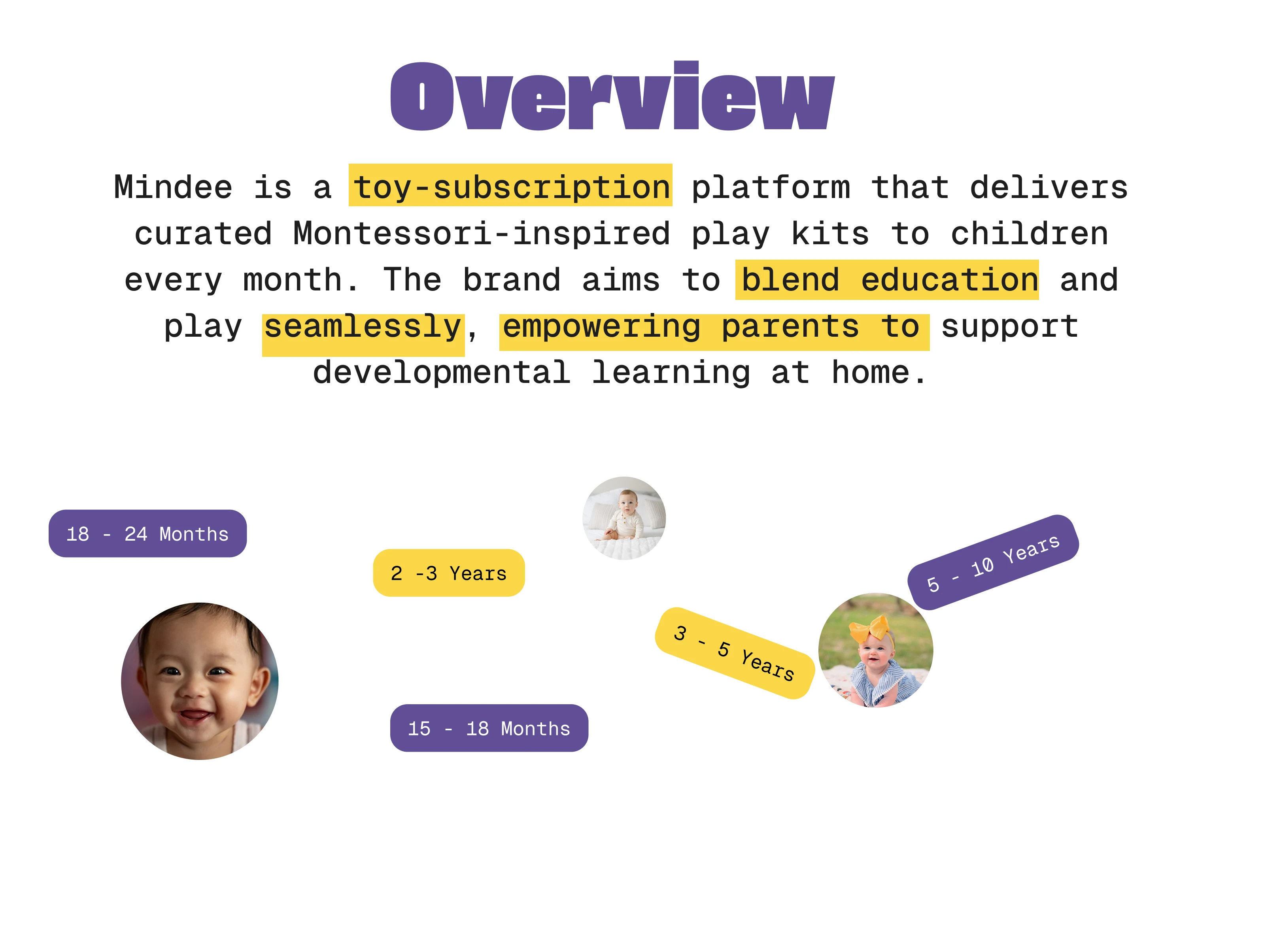 Mindee is a toy-subscription platform that delivers curated Montessori-inspired play kits to children every month. The brand aims to blend education and play seamlessly, empowering parents to support developmental learning at home.