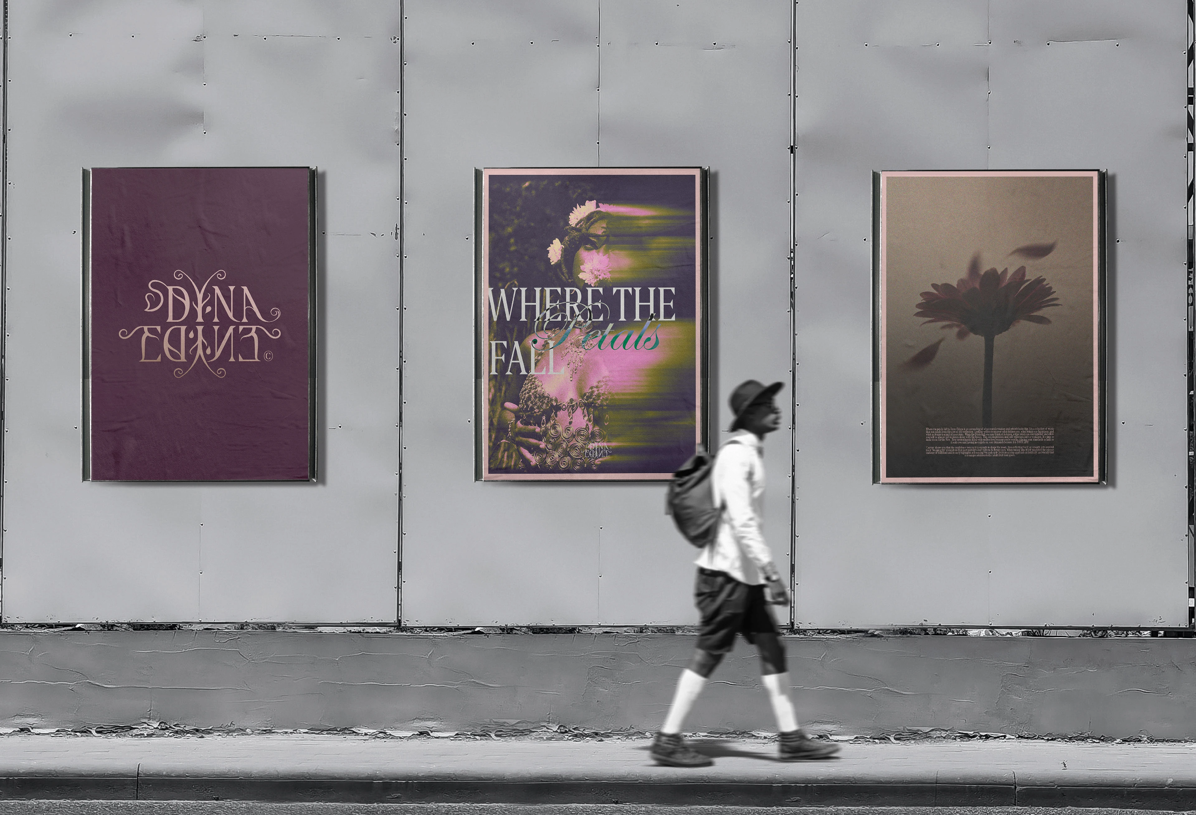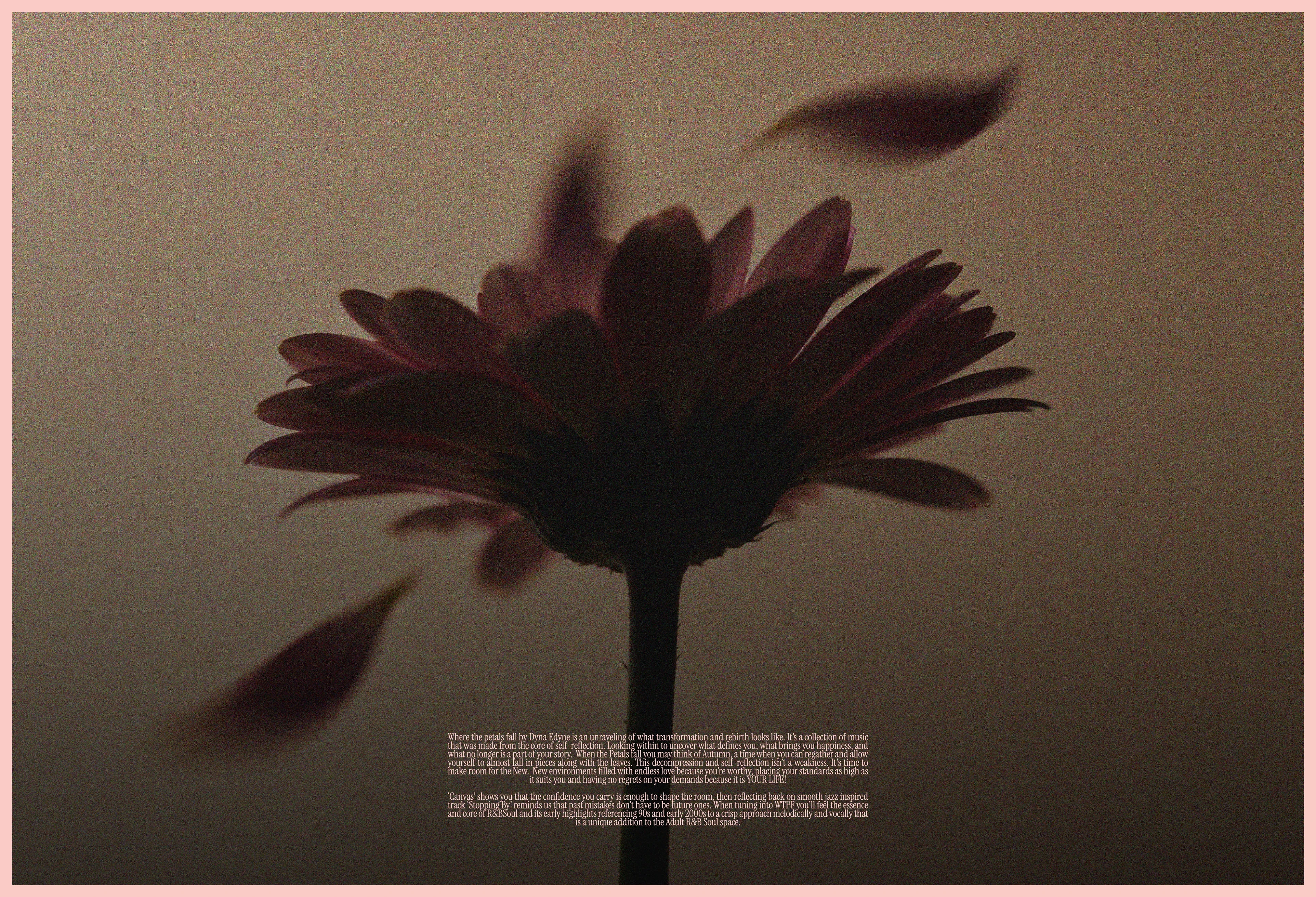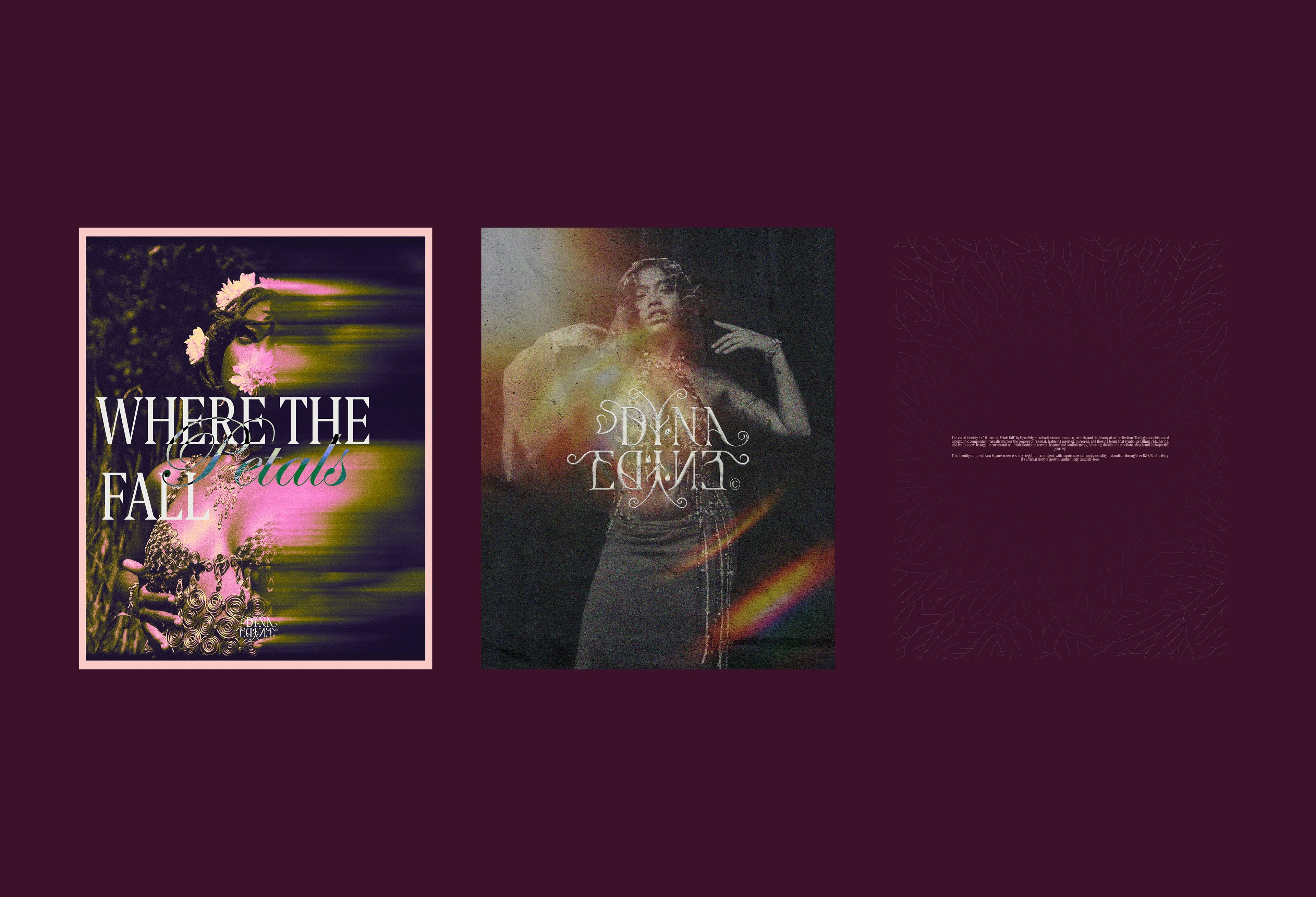 The visual identity for “Where the Petals Fall” by Dyna Edyne embodies transformation, rebirth, and the beauty of self-reflection. The logo, a sophisticated typographic composition, visually mirrors the concept of renewal, featuring inverted, mirrored, and flowing forms that symbolize falling, regathering, and rising anew. Its organic curves and naturistic flourishes convey elegance and soulful energy, reflecting the album’s emotional depth and introspective journey.