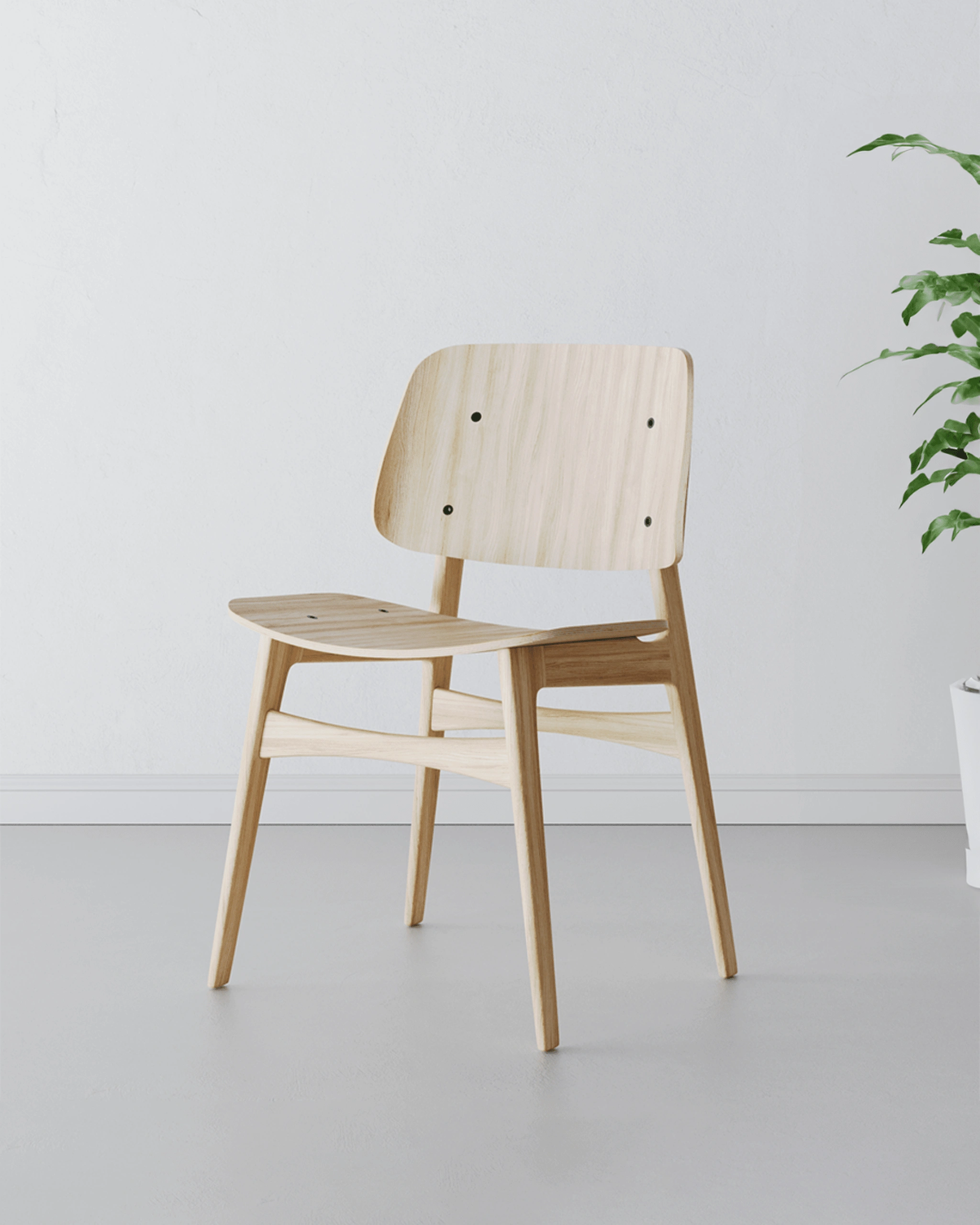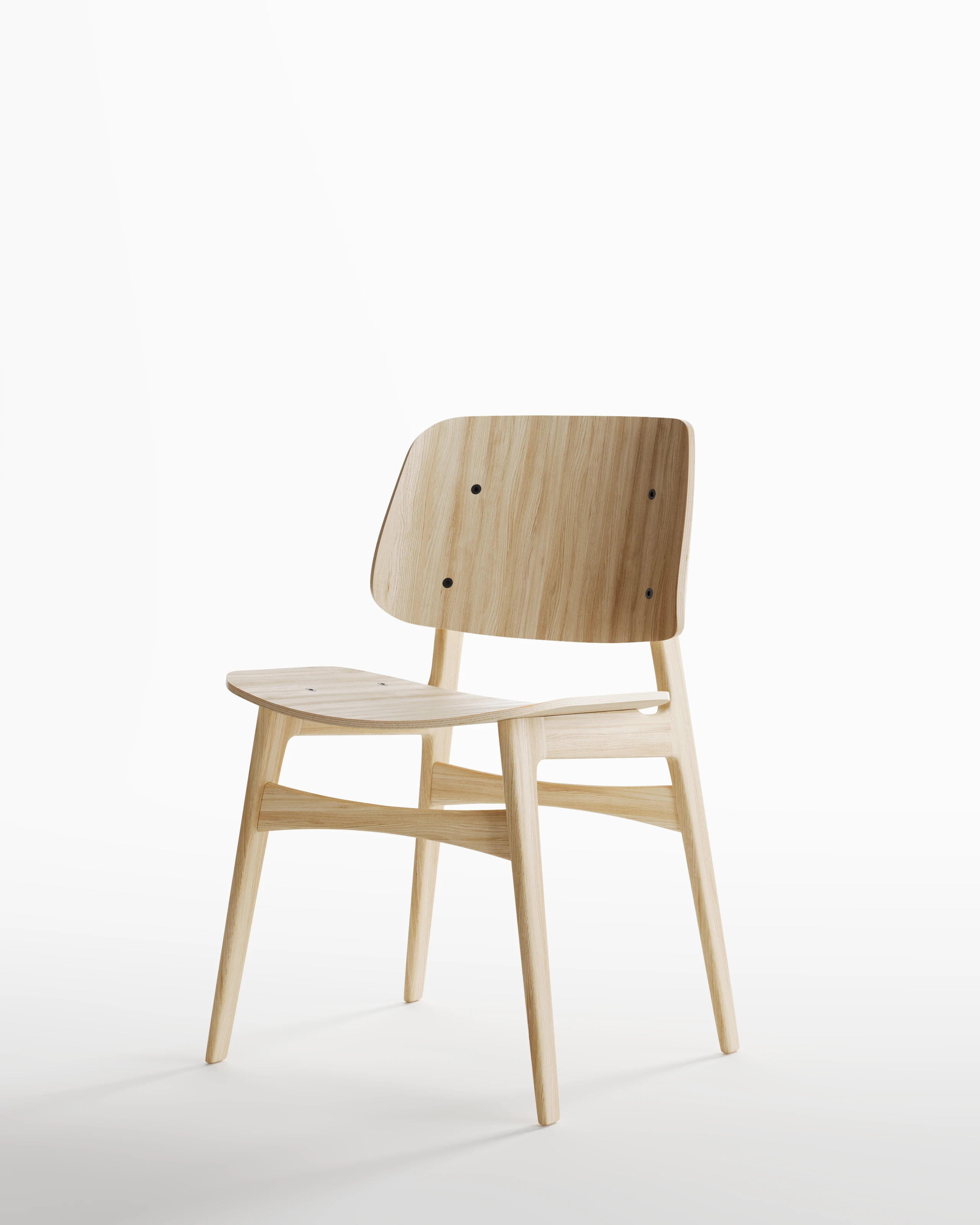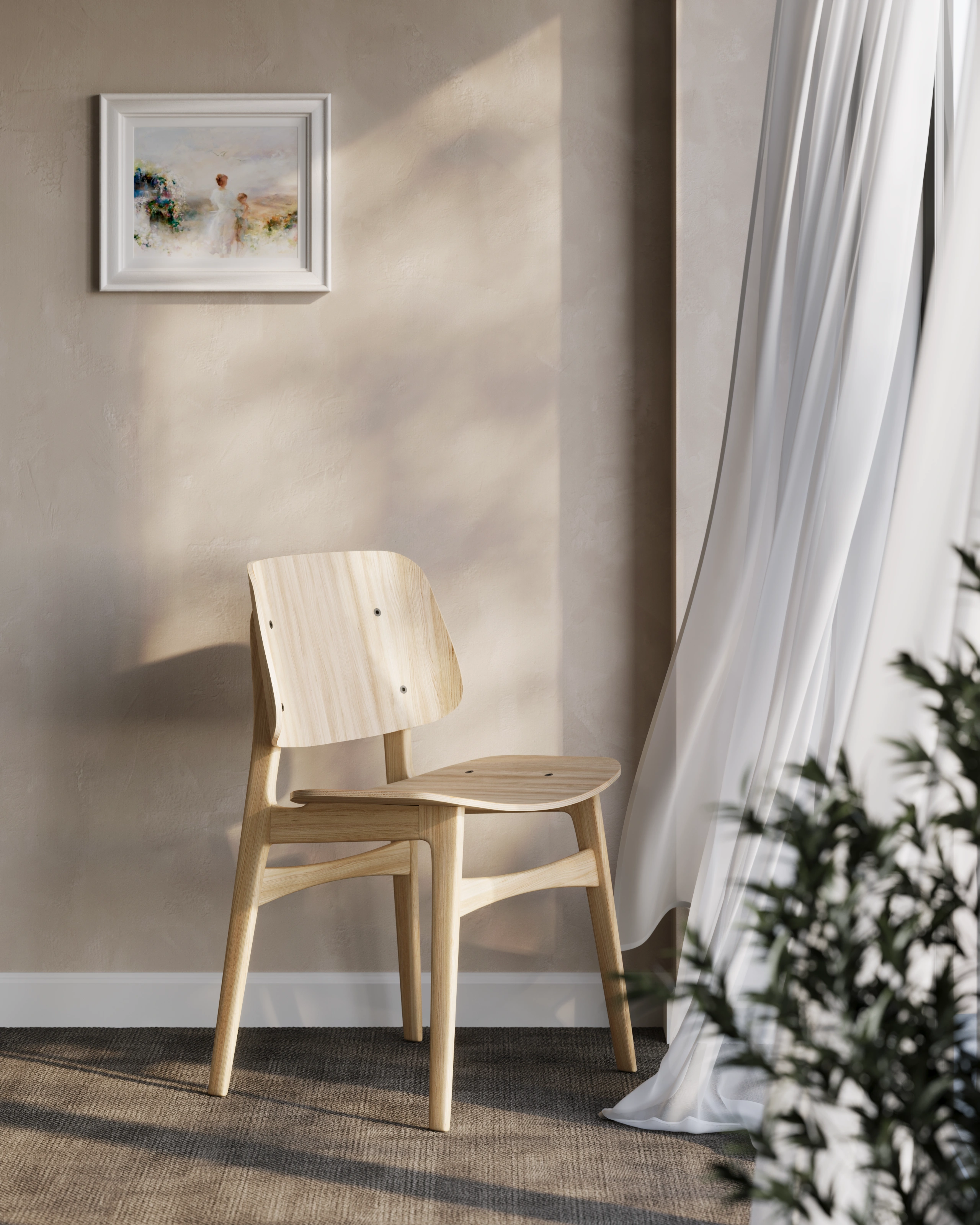 The Søborg chair is a comfortable chair with generous proportions in the seat and back, both of which are available with or without upholstery.