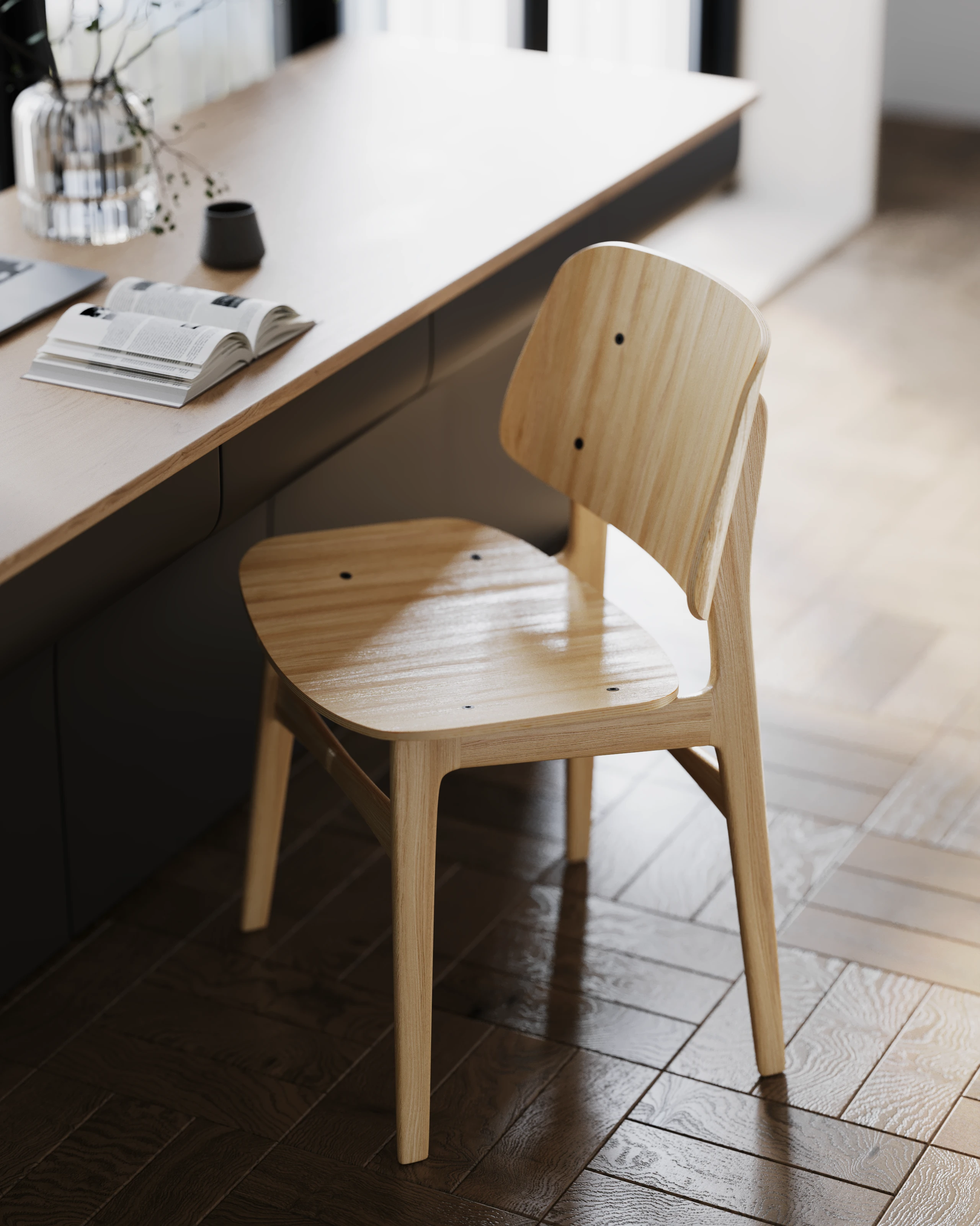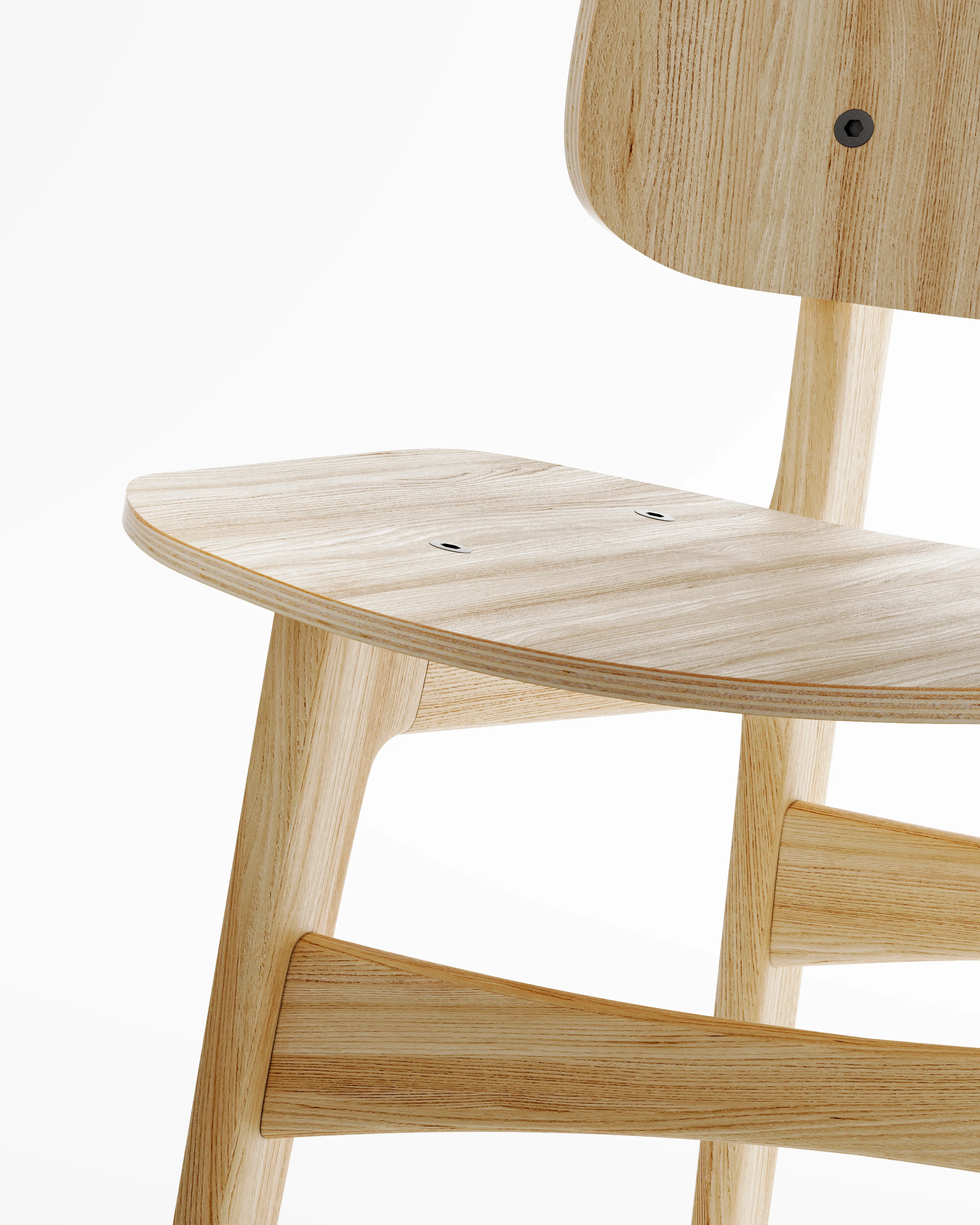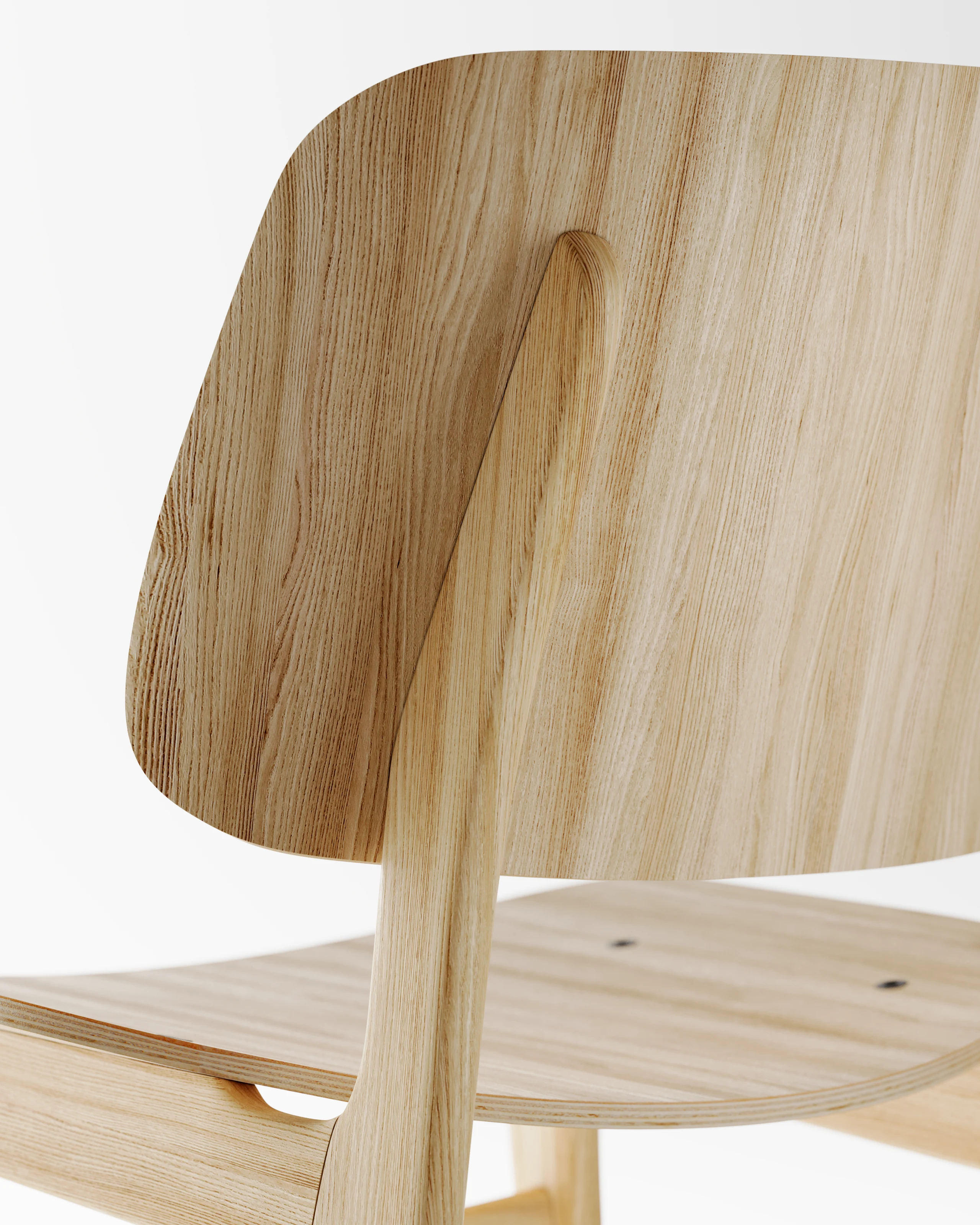 The Søborg chair is a comfortable chair with generous proportions in the seat and back, both of which are available with or without upholstery.