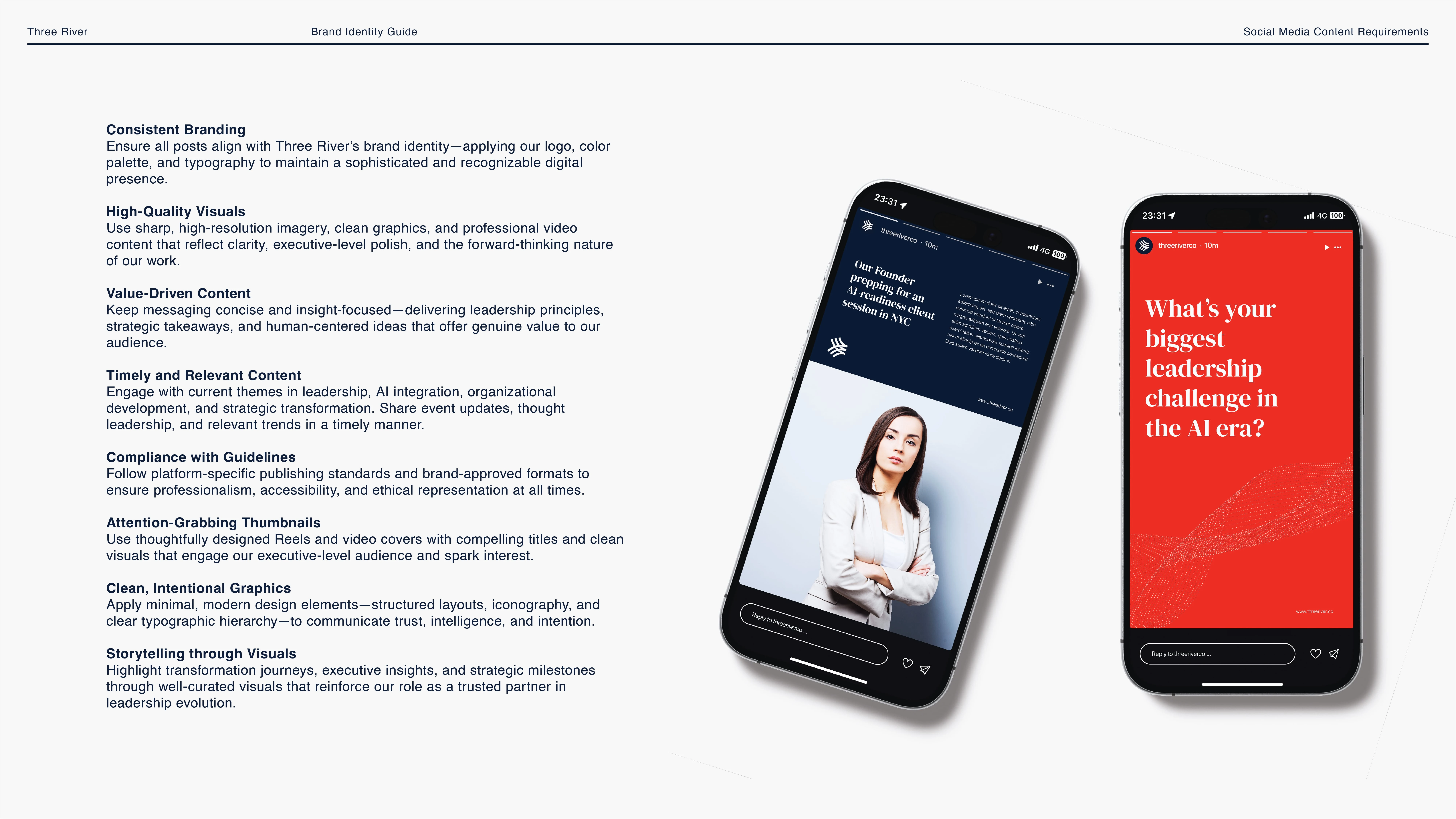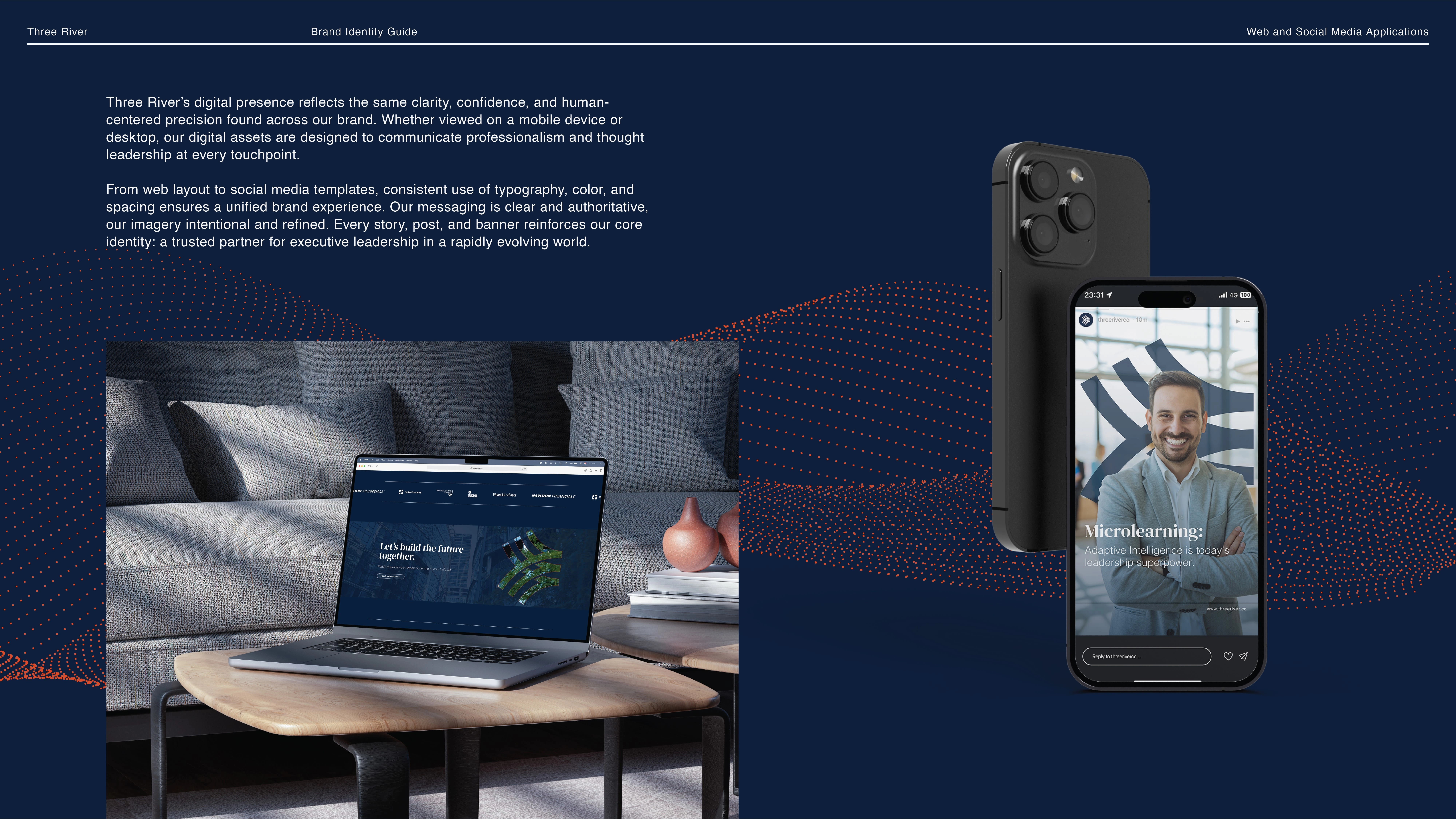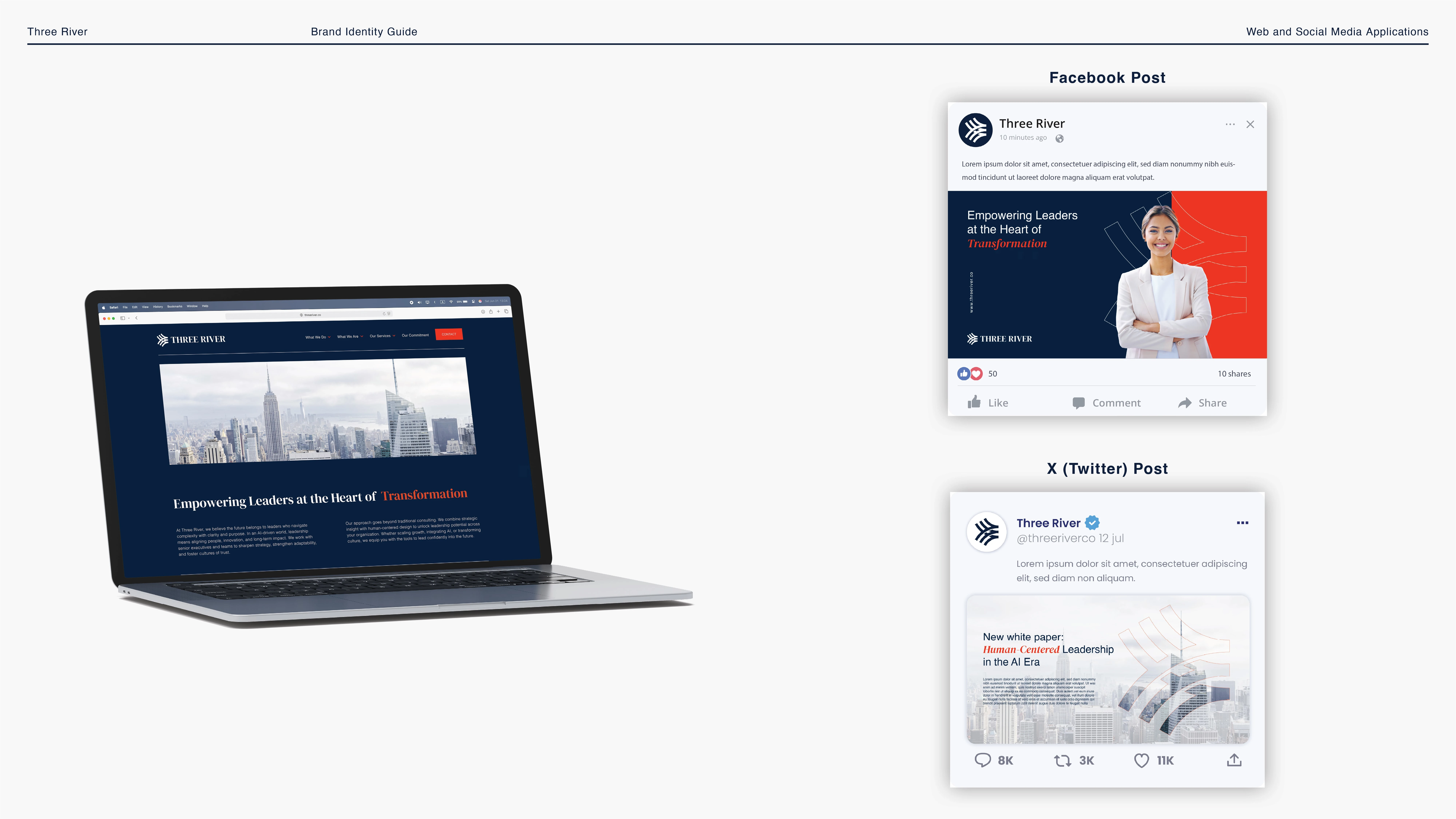 My role was to create a full branding system that would position Three River as a trusted, modern, and strategic partner in the leadership space.
