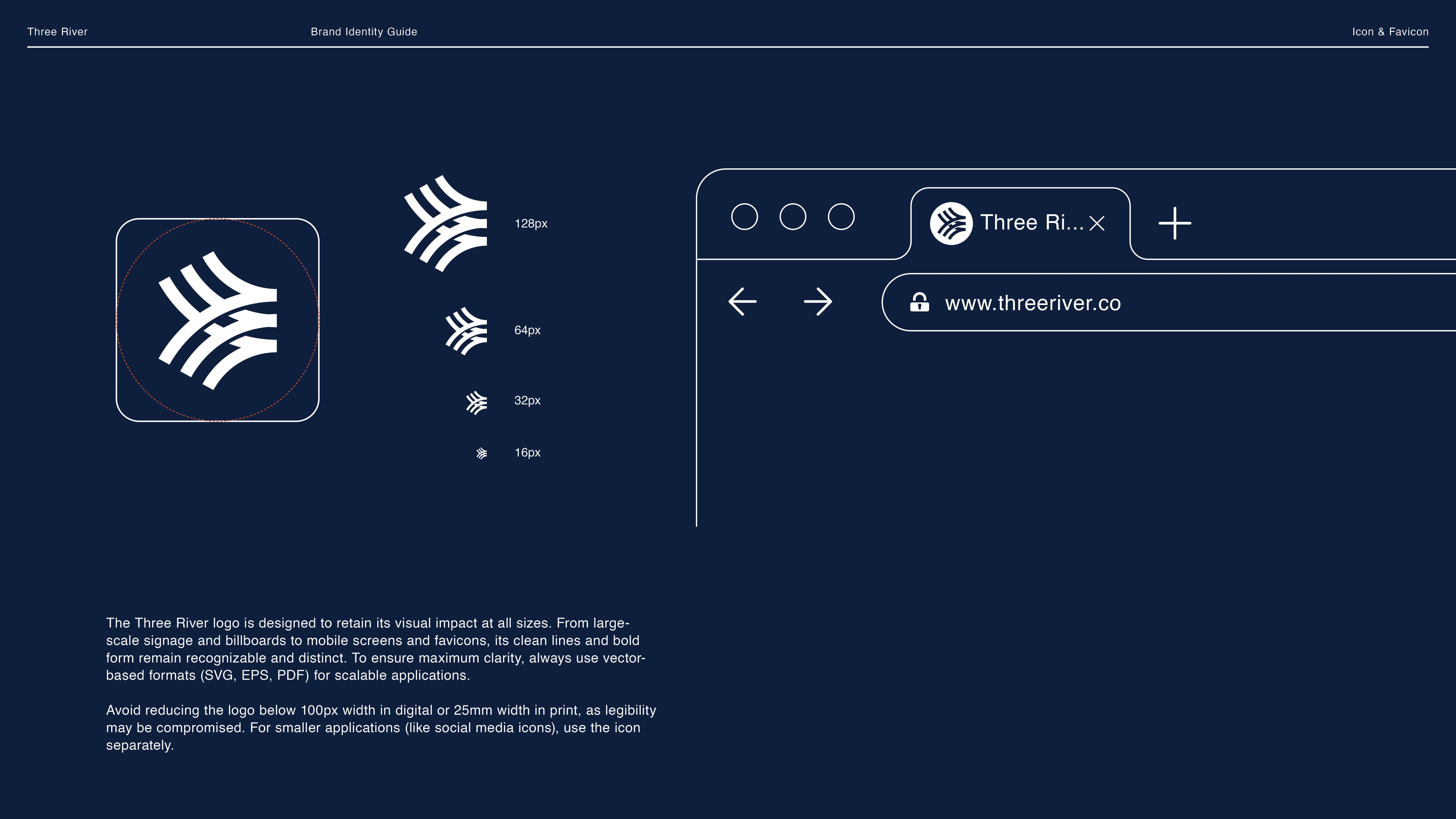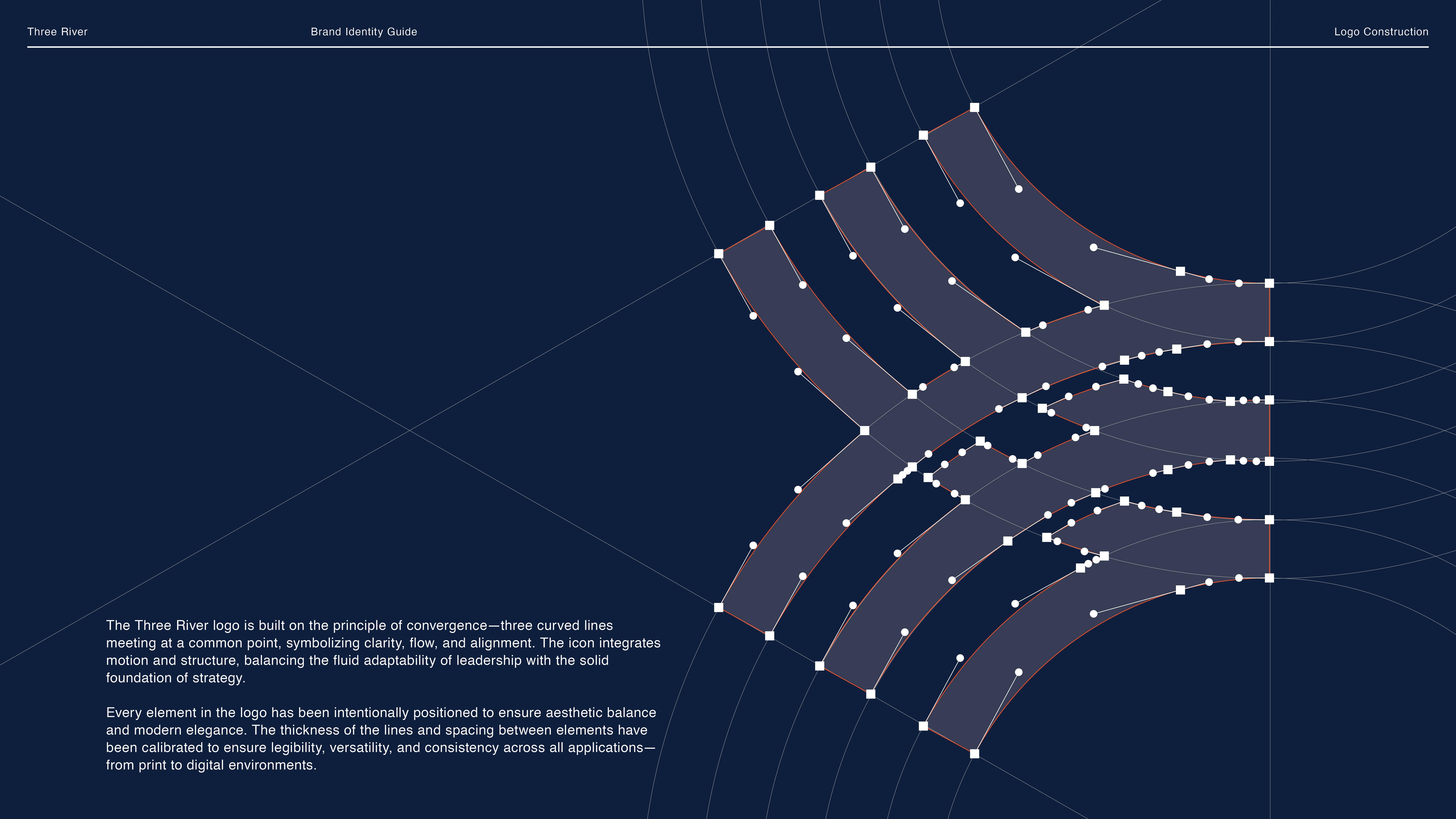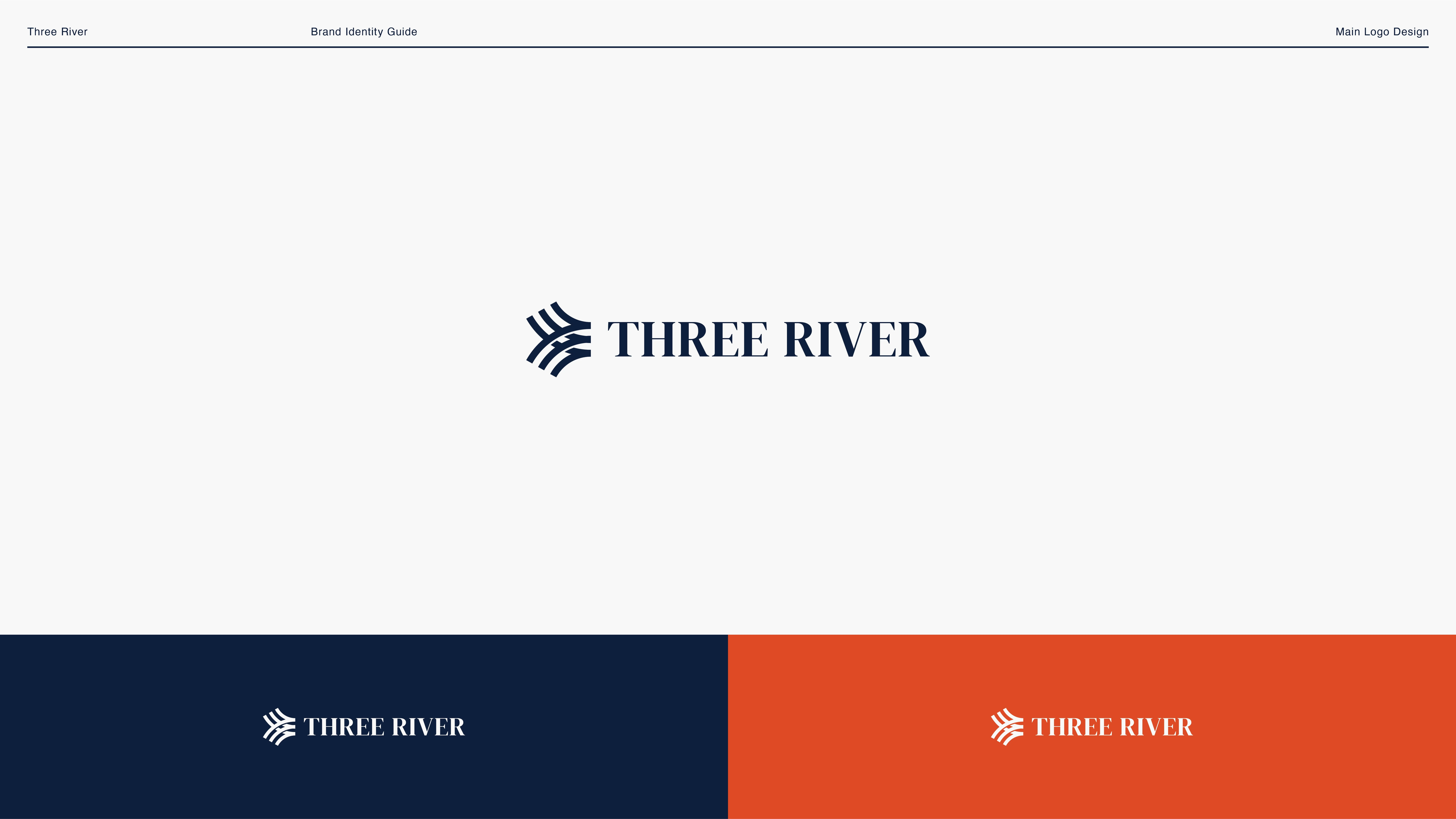 The logo was developed to symbolize clarity, movement, and alignment — core themes in the Three River methodology. The final mark is refined and versatile, easily adapted for both digital platforms and large-scale print.