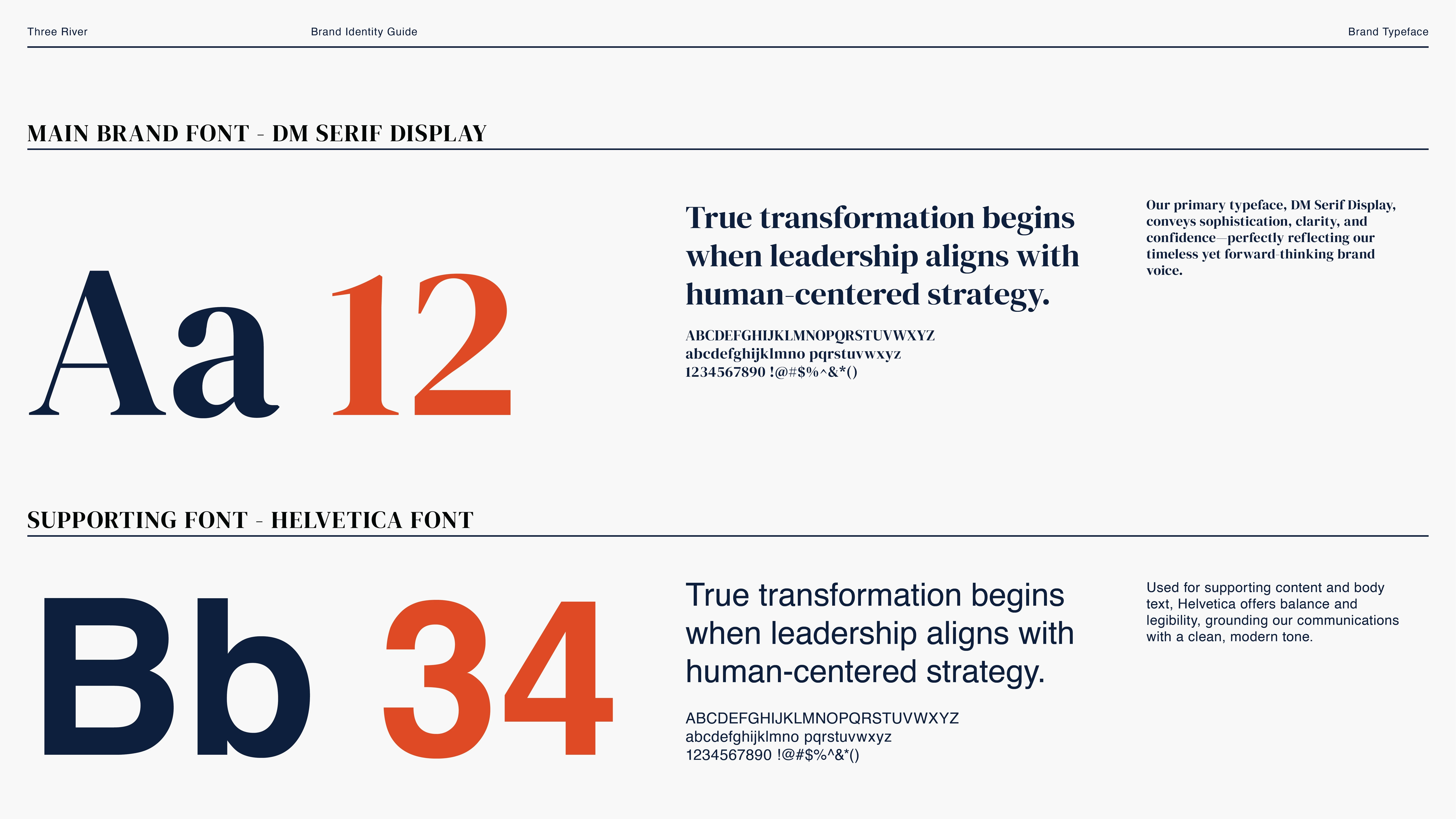 A modern, elegant type hierarchy designed for legibility in reports, presentations, web layouts, and long-form content. The type system creates a consistent voice across all materials.