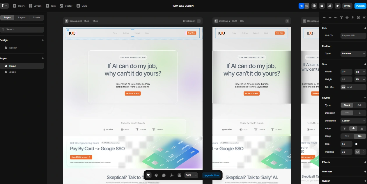 100x needed a high converting landing page that balanced strong visual impact with clarity and performance.