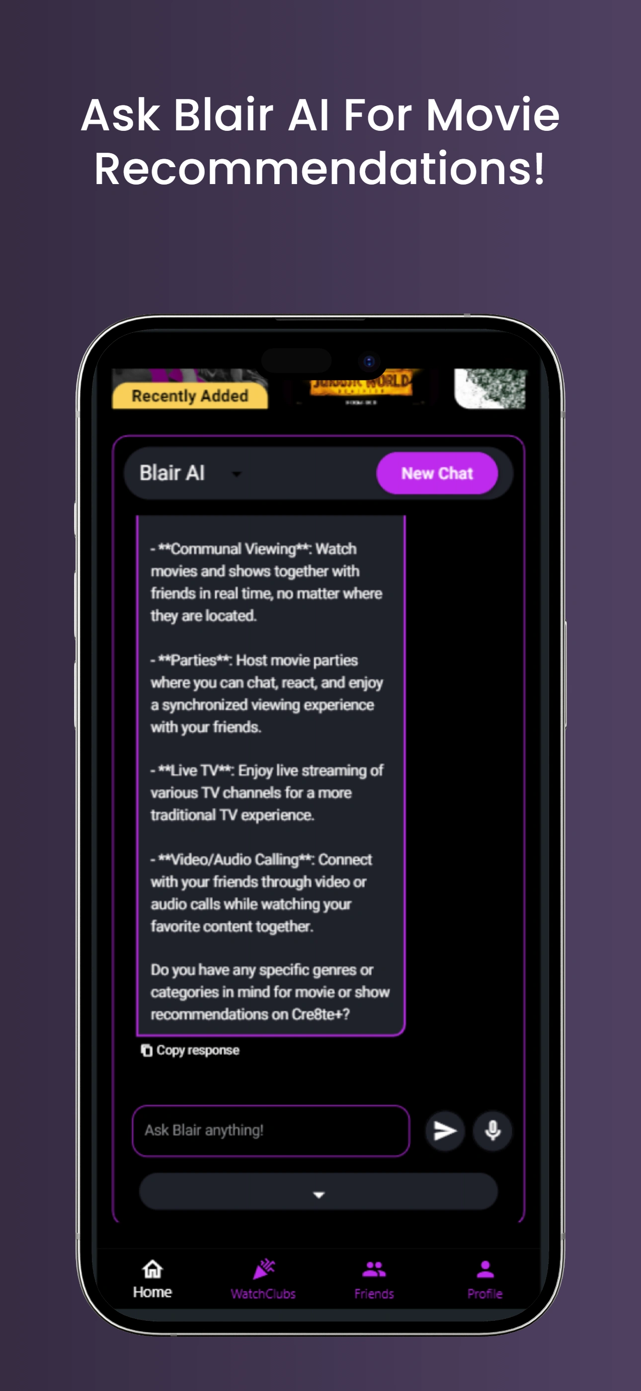 Cre8te+ successfully launched with a highly interactive user base, receiving positive feedback for its watch party and messaging features. The platform’s AI, Blair, has proven valuable for users seeking personalized content suggestions, contributing to high engagement rates.