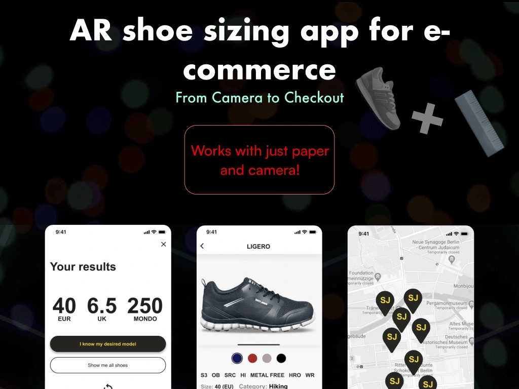 Designed and delivered a mobile sizing and customization app for a global safety shoe brand. Using smartphone cameras, AR overlays, and on-device ML, users could measure foot size and get shoe recommendations - no tape measure needed. The companion app also allowed dynamic color previews and product customization.