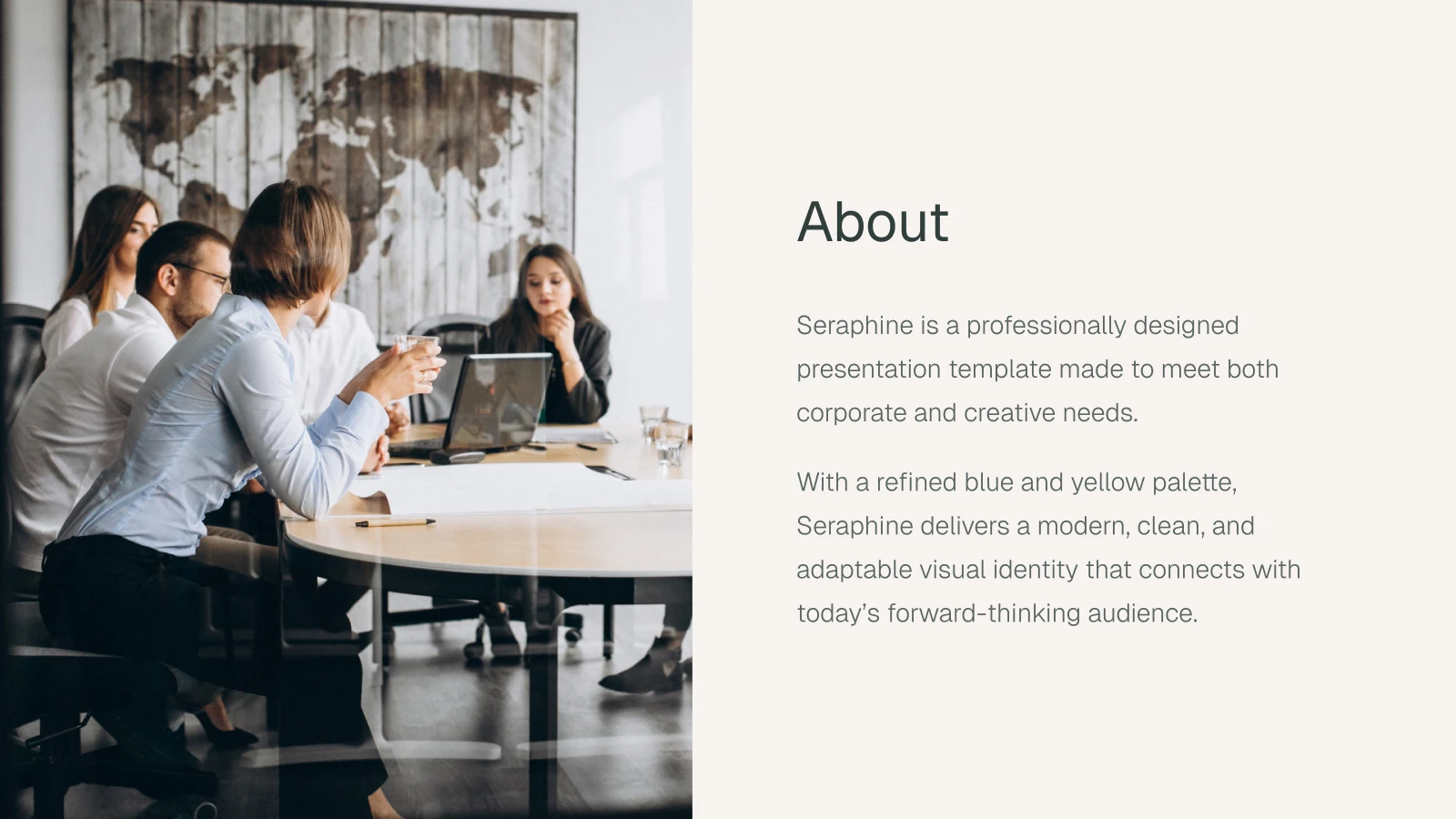 Seraphine is a clean, modern presentation template with versatile layouts that elevate proposals, pitches, and creative showcases.
