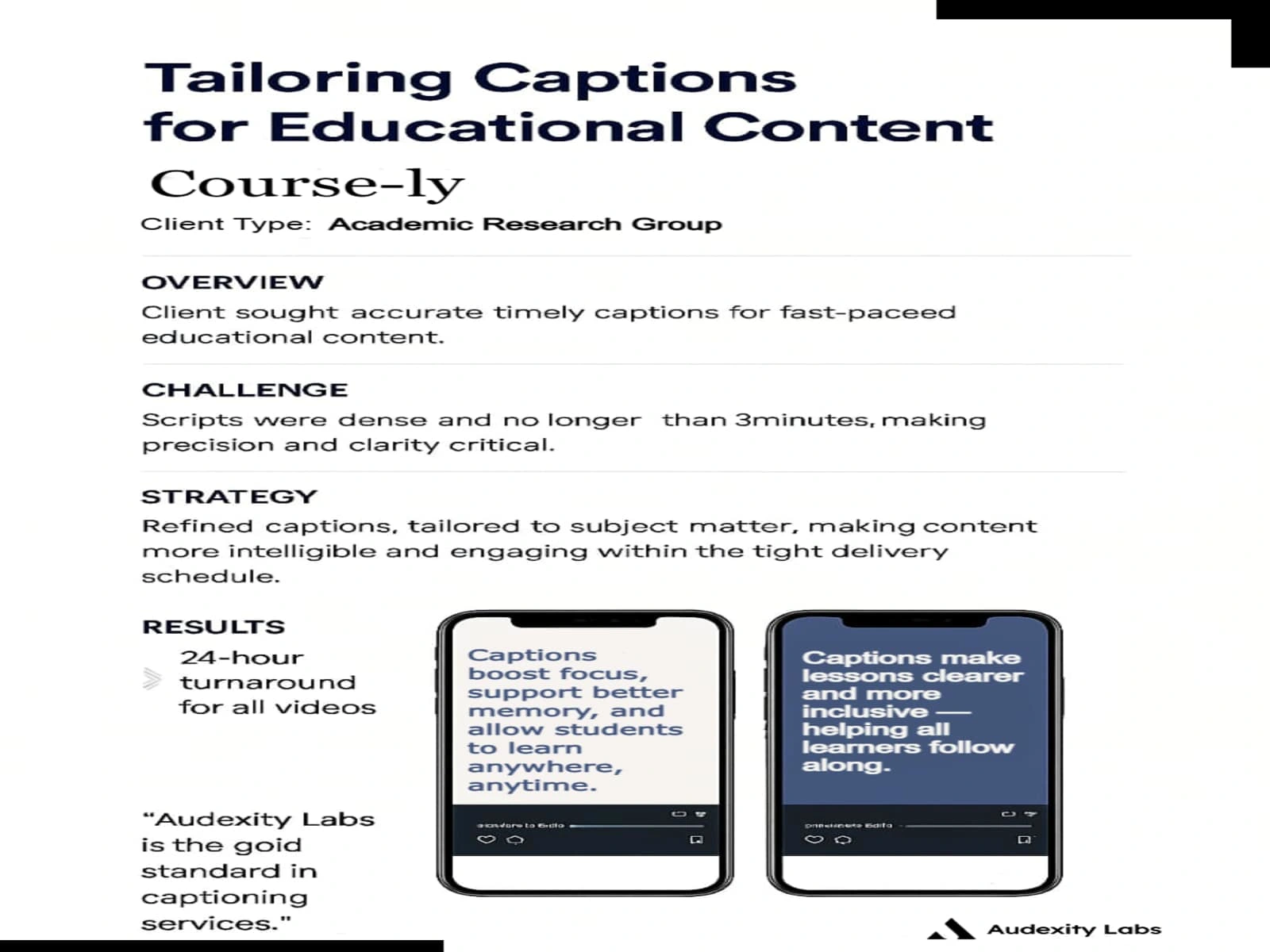 Crafted precise, engaging captions for fast-paced educational videos, ensuring clarity, accessibility, and learner retention — even on tight deadlines.