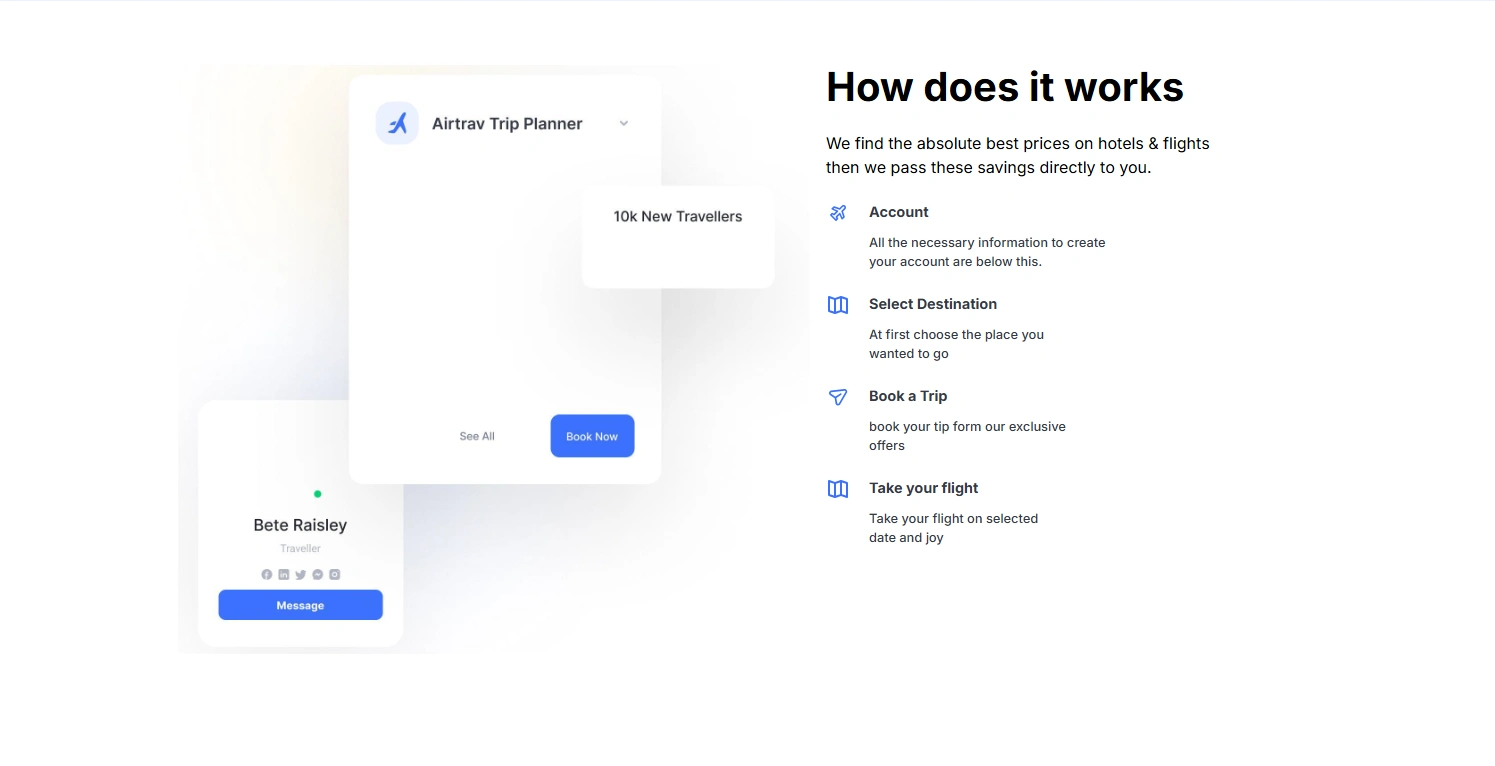 Airtrav demonstrates how thoughtful UI/UX and structured Webflow development can simplify complex travel services into an intuitive, conversion-focused feeling.