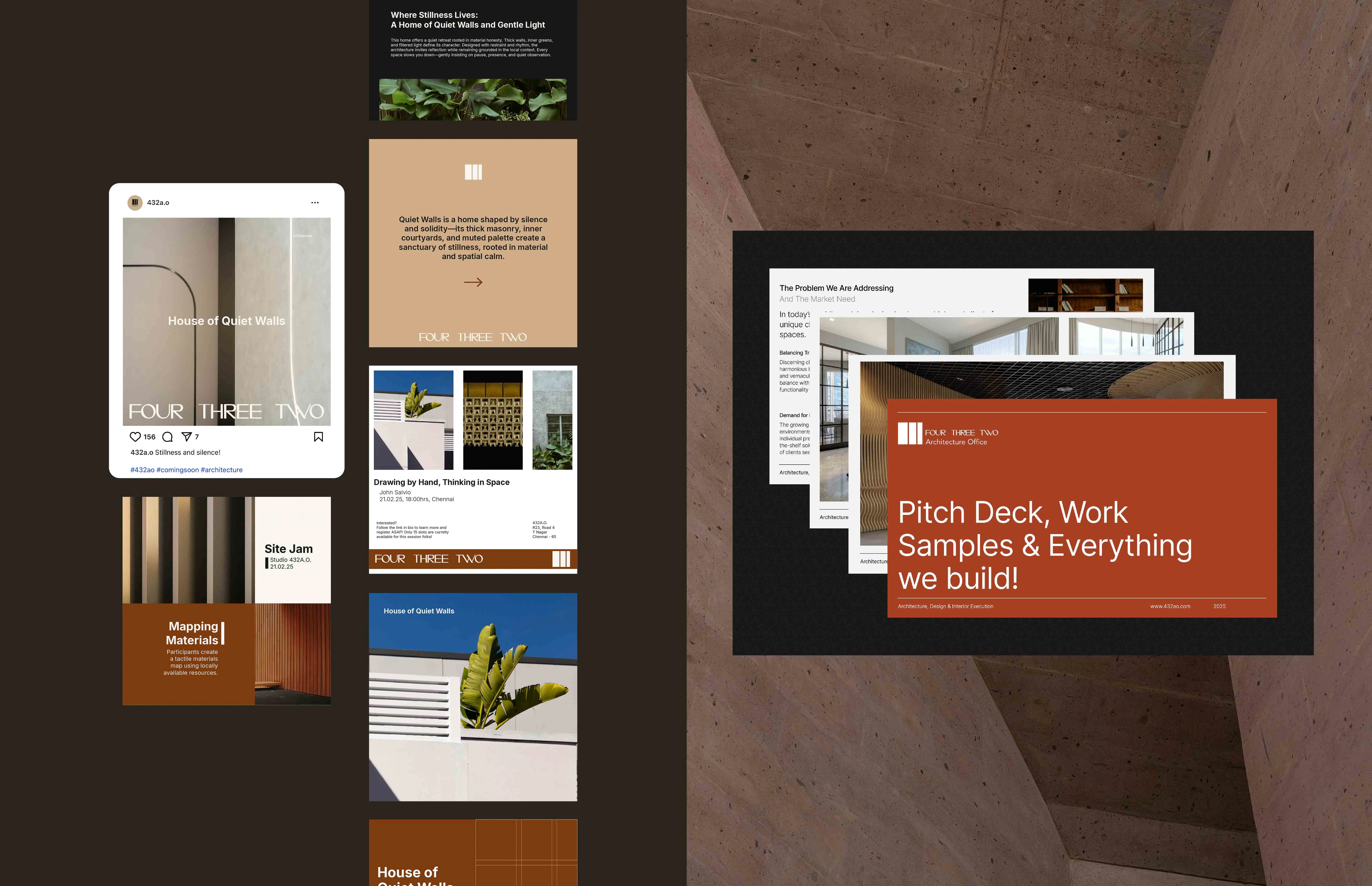 For 432A.O., we grounded the identity in architectural fundamentals while crafting a system that felt refined, contemporary, and deeply rooted in context. The brand speaks not only to the firm's geographic range but also to their values—clarity in structure, adaptability in design, and reverence for material and place.