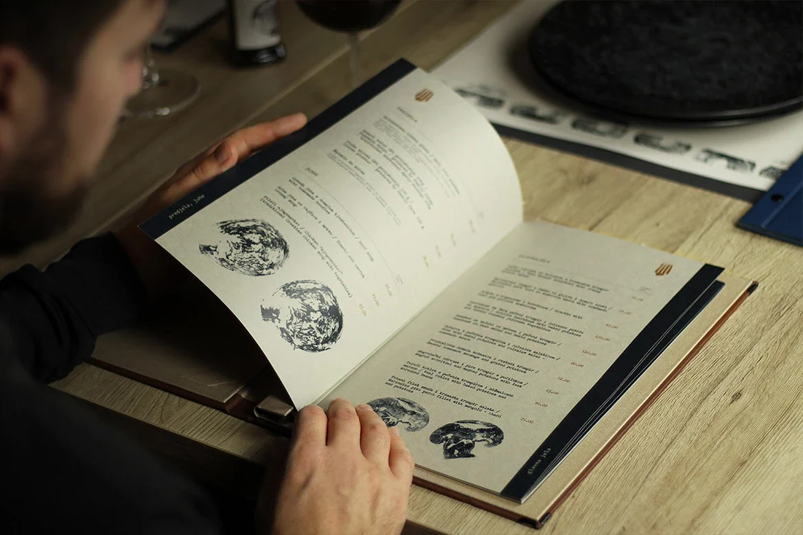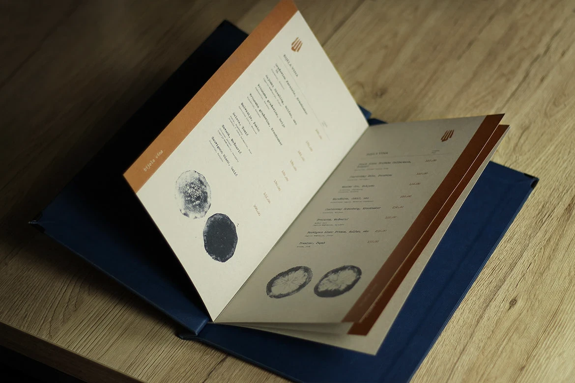 The logo design for the Vatikan restaurant is based on a unique visual solution. By hand-printing the logo symbol itself, a sophisticated and personalized signature is added to the whole story. As the restaurant's offer is based on top quality food and its preparation, this segment has been used to expand identity design. By imprinting cross-sections of fruits and vegetables, food is used as an essential visual element. The inspiration for logo design was found in connection with the Vatican City itself and the history of the Roman Empire. The Trajan Sans typography is used to directly evoke typography from ancient Rome (Roman capital). The concept of imprinting visually alludes to leaving traces and stamps of a certain part of history. Considering that, Vinkovci is also one of the oldest Roman settlements, this way of finding a link for the formation of identity emerged as a logical sequence. Another aspect which is interesting in the context of the imprint/trace is the notion of The Veil of Veronica, taken from Christian iconography. The logo symbol itself is also associated with the contours of the letter "V", referring to the Vatican, so it can be used as a restaurant monogram.