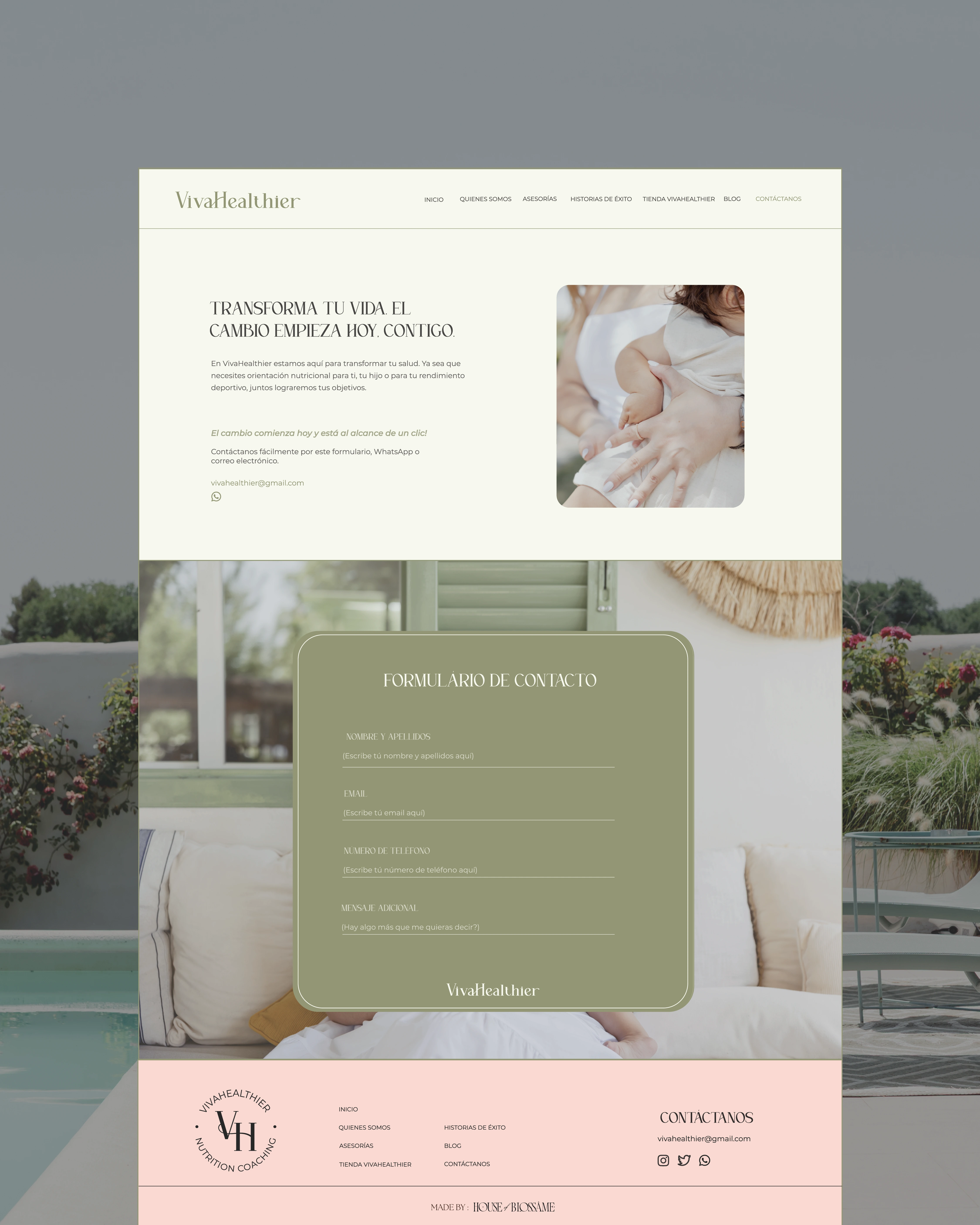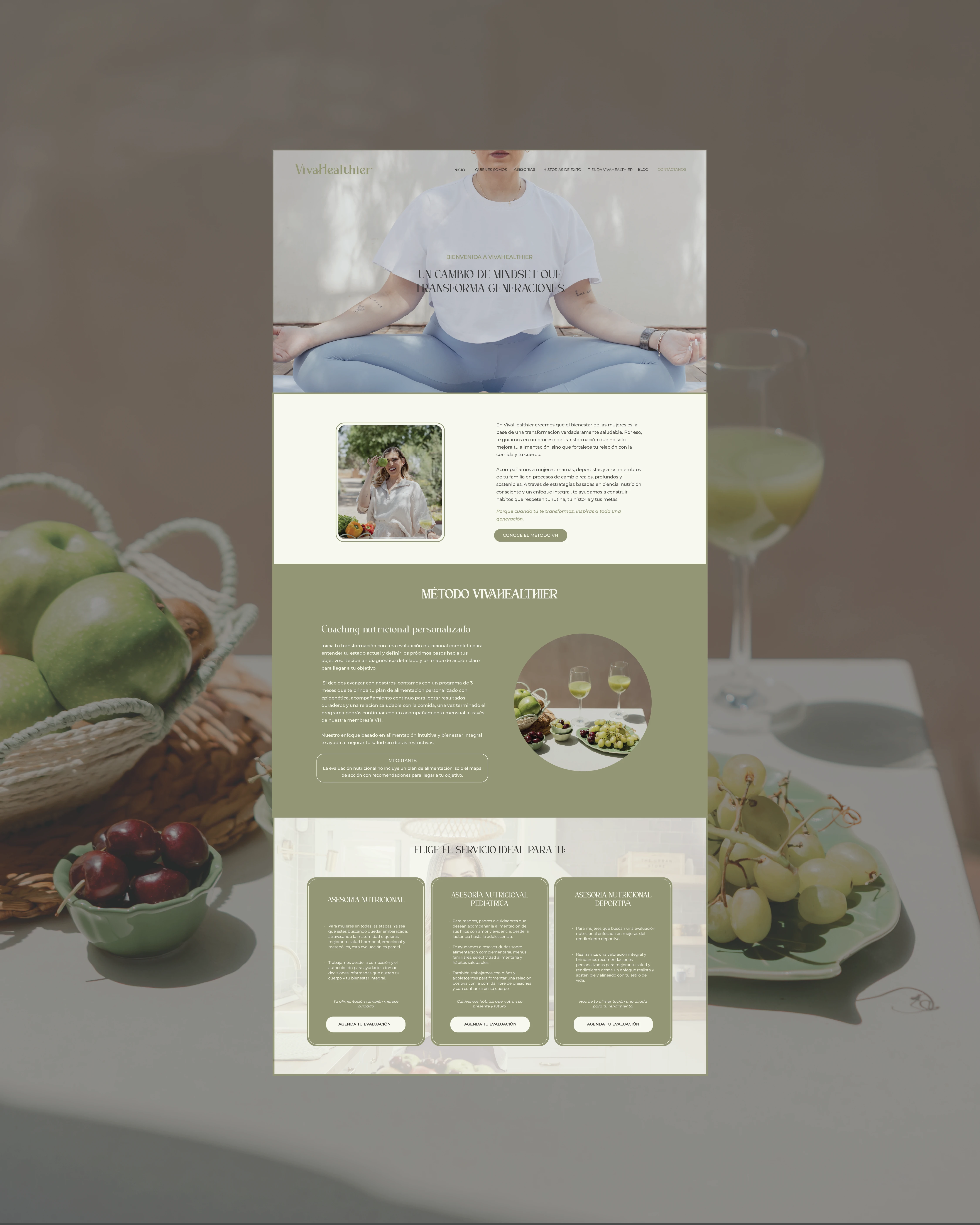 VivaHealthier is a holistic wellness brand founded by Vicky, a nutritionist with a personal journey of overcoming obesity and disordered eating. The brand focuses on supporting women, especially mothers, in achieving balanced nutrition, self-love, and overall wellbeing for themselves and their families. I worked on the full brand identity and website design, translating Vicky’s vision into a visually cohesive and functional digital experience.