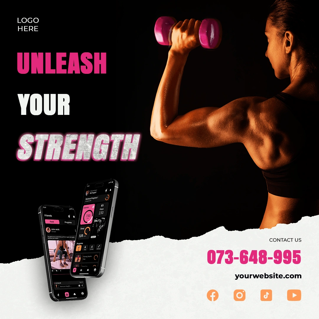Social media launch campaign for a fitness app empowering women to build strength and community.