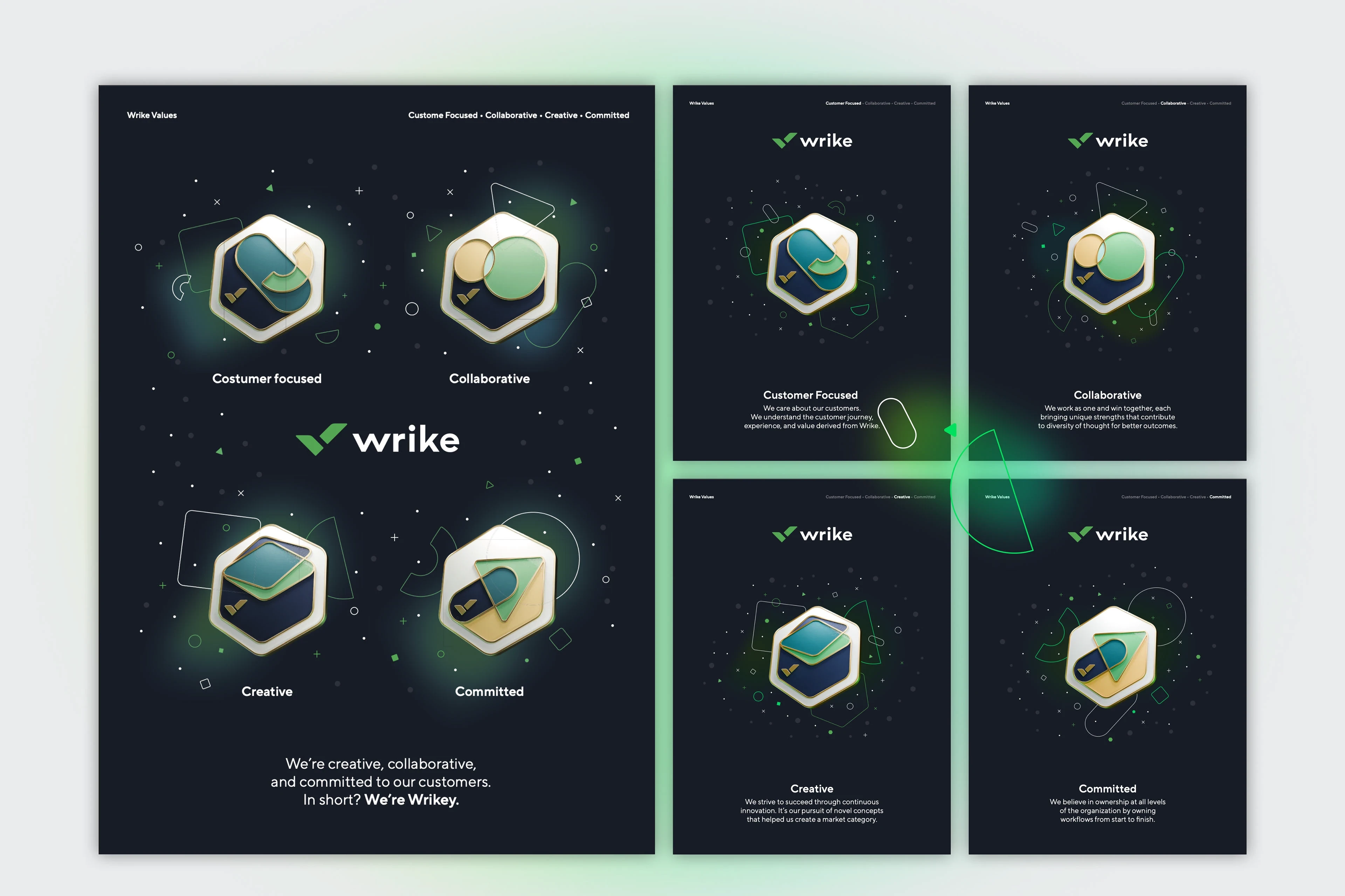 Various swag designs for Wrike employees, clients, and ambassadors.