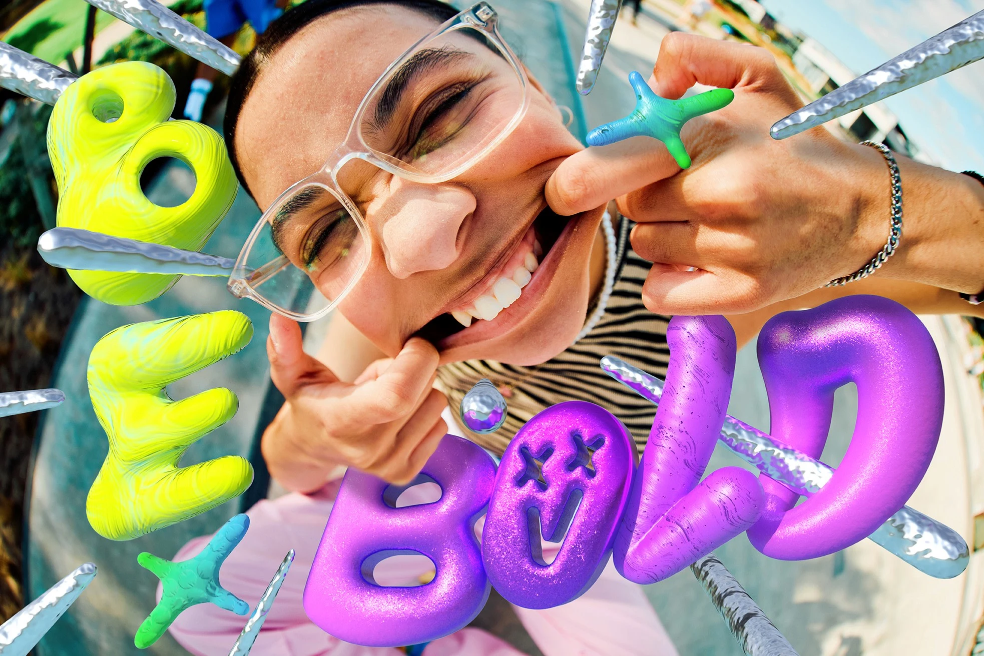 A fun experiment of mixed media of 3D funky textured text with photos. Made with Womp.