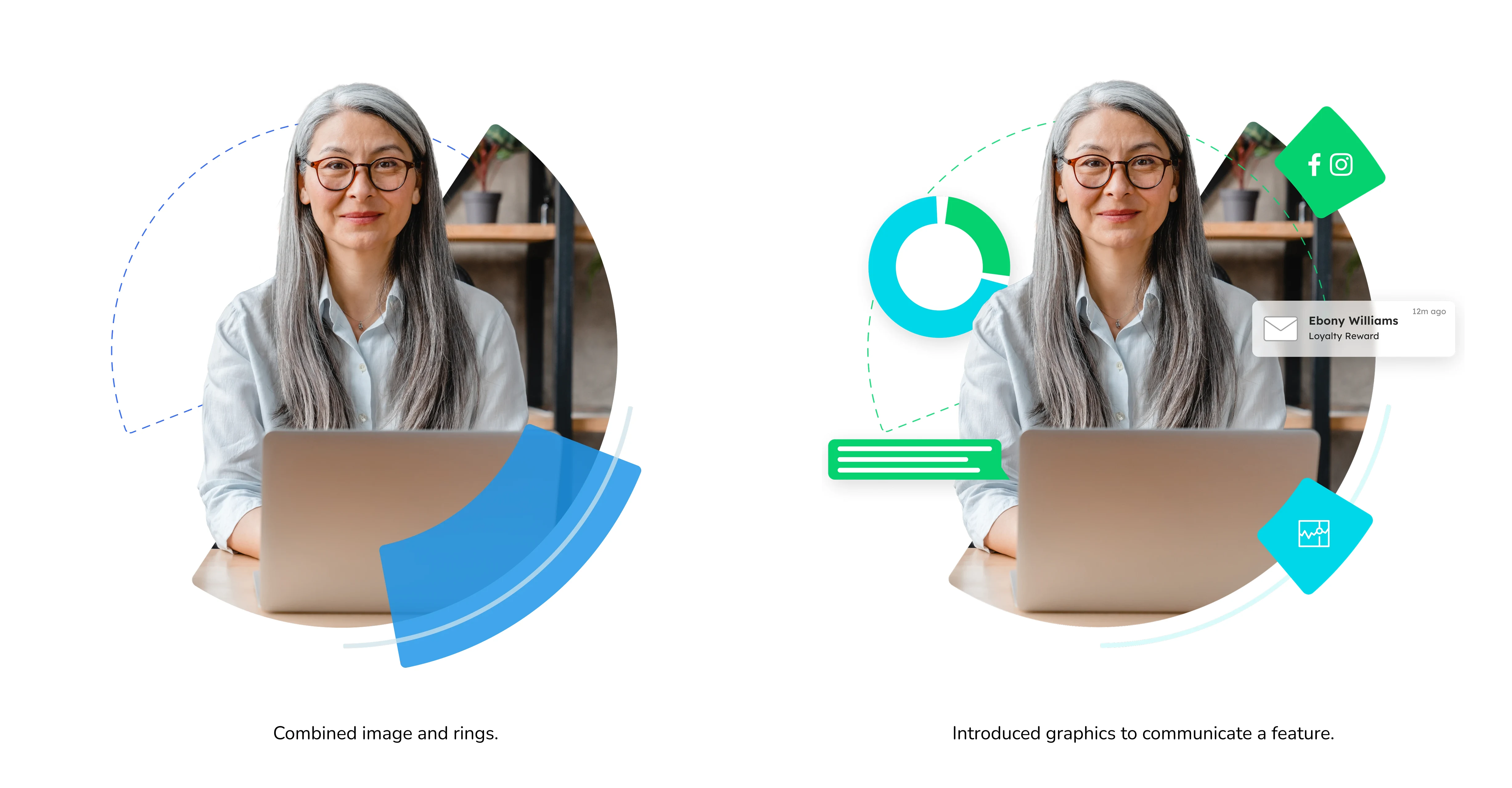 While at Constant Contact I was asked to create graphic assets to effectively communicate different features of the platform. The assets required simplicity and would be used on webpages, marketing materials and within the product.