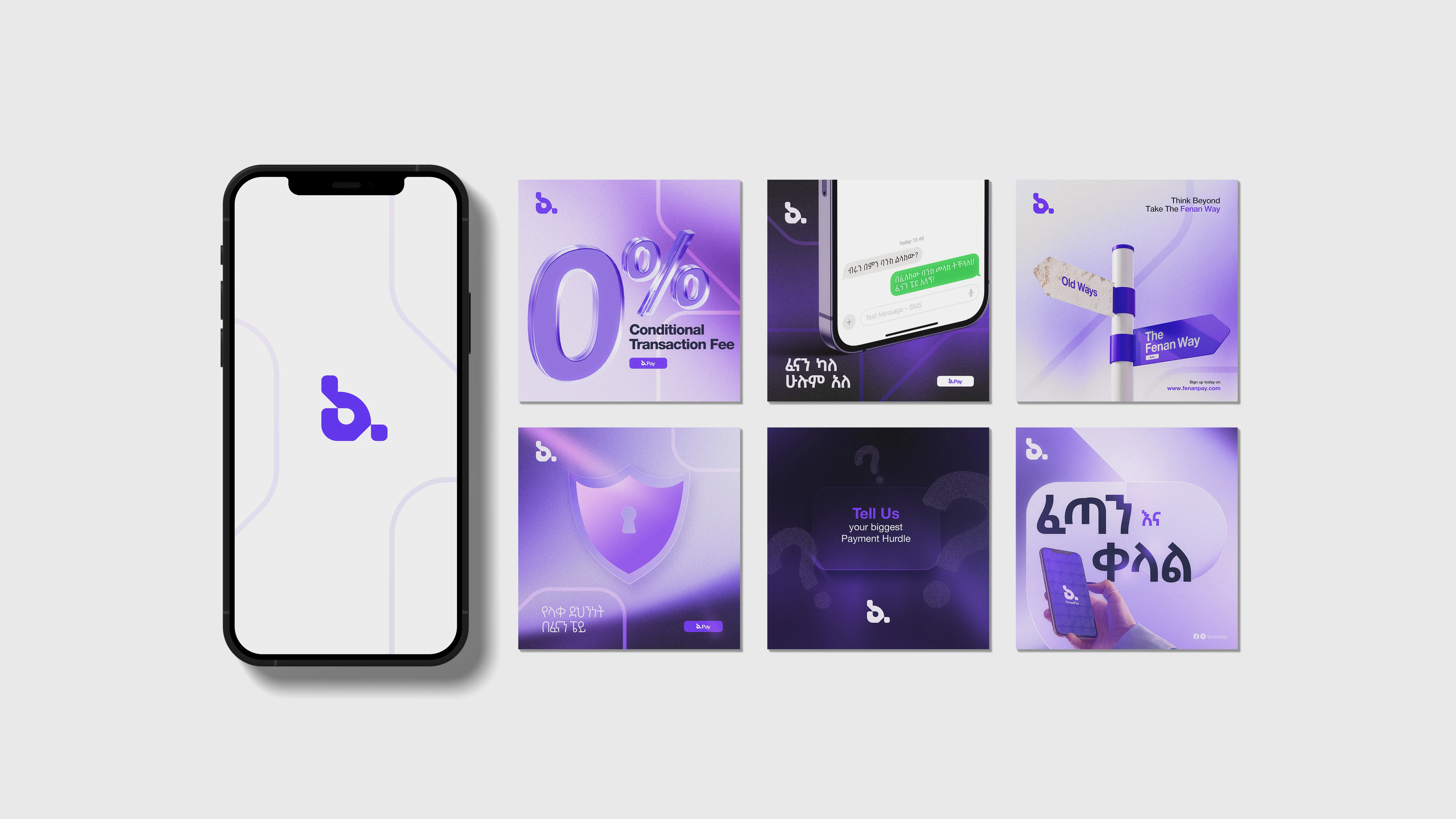 With four distinct marks—the Fenan logo seamlessly adapts to diverse contexts. This ensures Fenan Pay's brand presence remains consistent and recognizable across all touchpoints, both digital and physical.