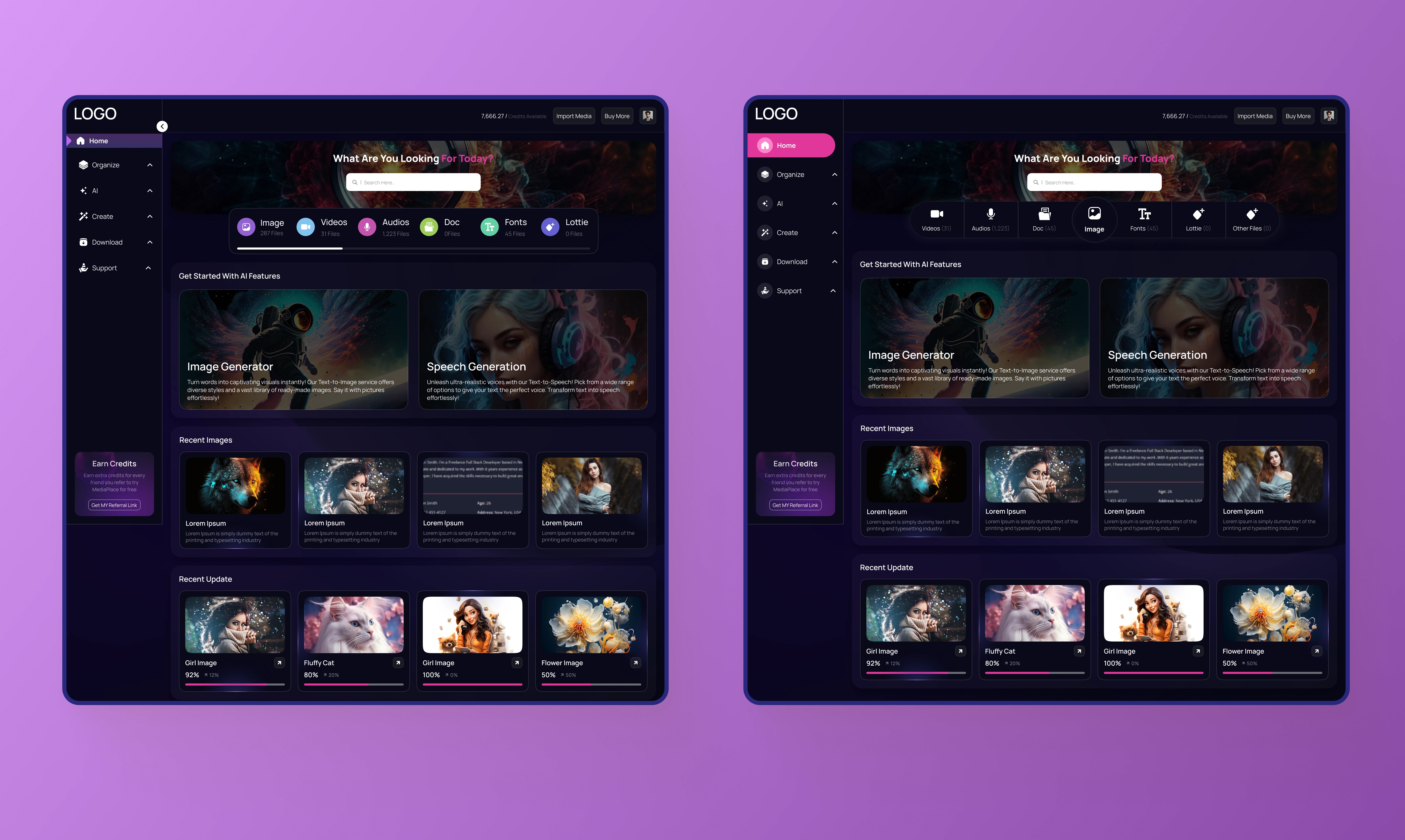 The AI multipurpose dashboard is a versatile and user-friendly platform designed to streamline creative and productivity-focused tasks. Its clean and modern interface ensures an intuitive experience, allowing users to effortlessly navigate between a variety of powerful tools. Key features include background removal for images, an advanced image generator for creating visuals, and speech generation capabilities for text-to-speech applications. The dashboard is equipped with dynamic functionalities, responsive design, and a cohesive layout that maximizes efficiency. The color palette and typography exude professionalism and clarity, while visually engaging elements highlight the cutting-edge technology at work. Designed to cater to a diverse audience, this dashboard embodies innovation, creativity, and simplicity, empowering users to achieve more with ease.