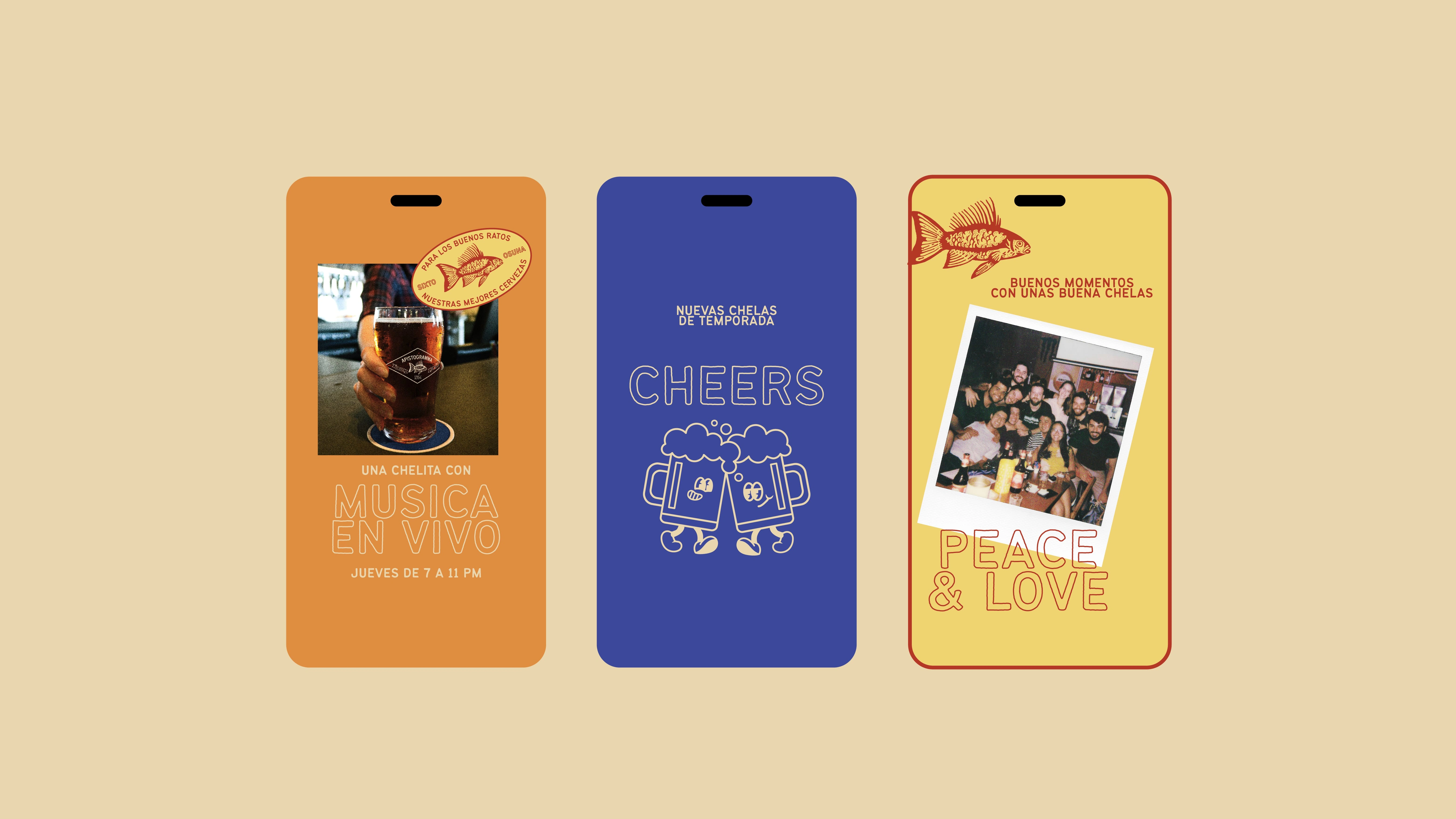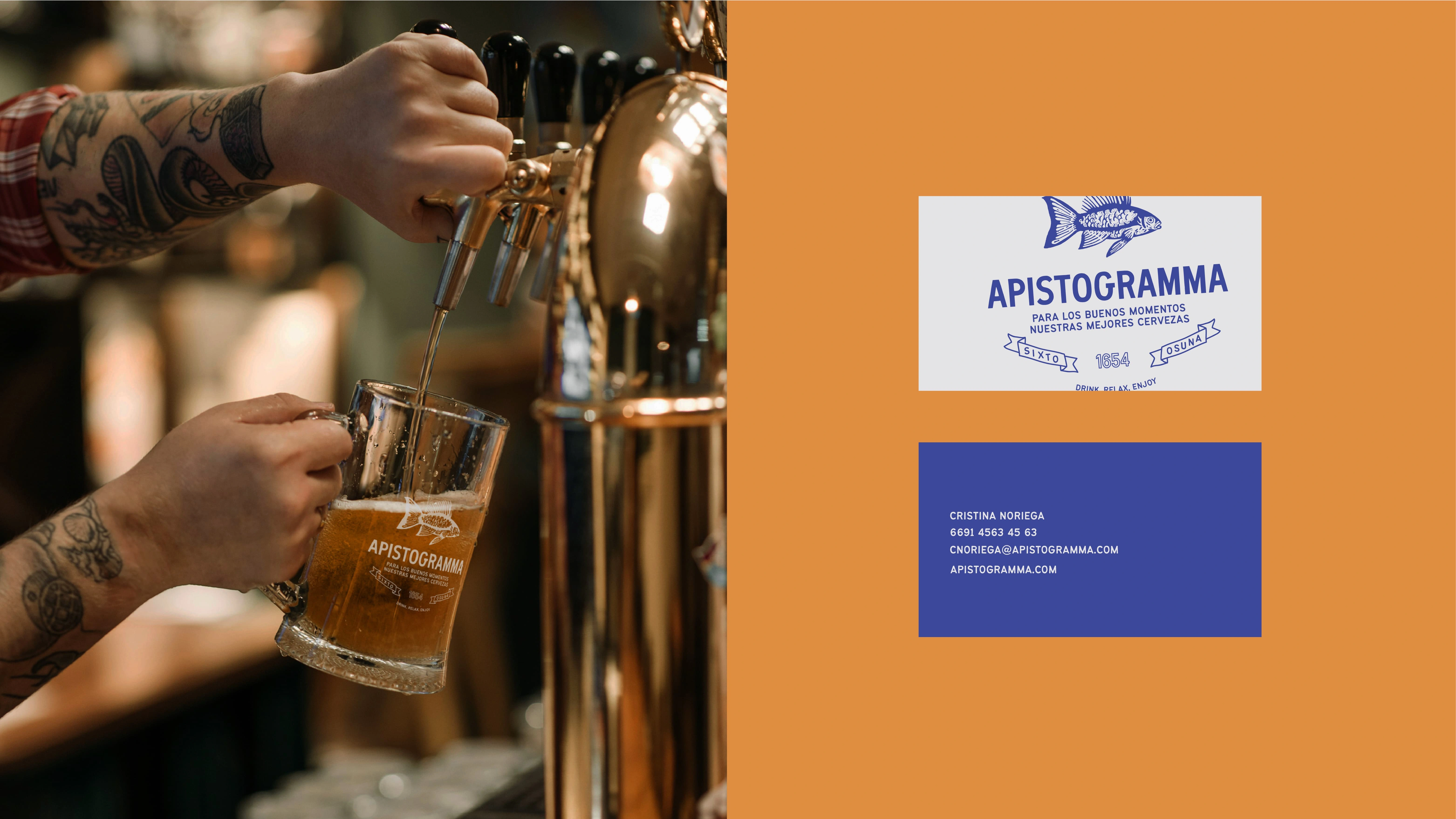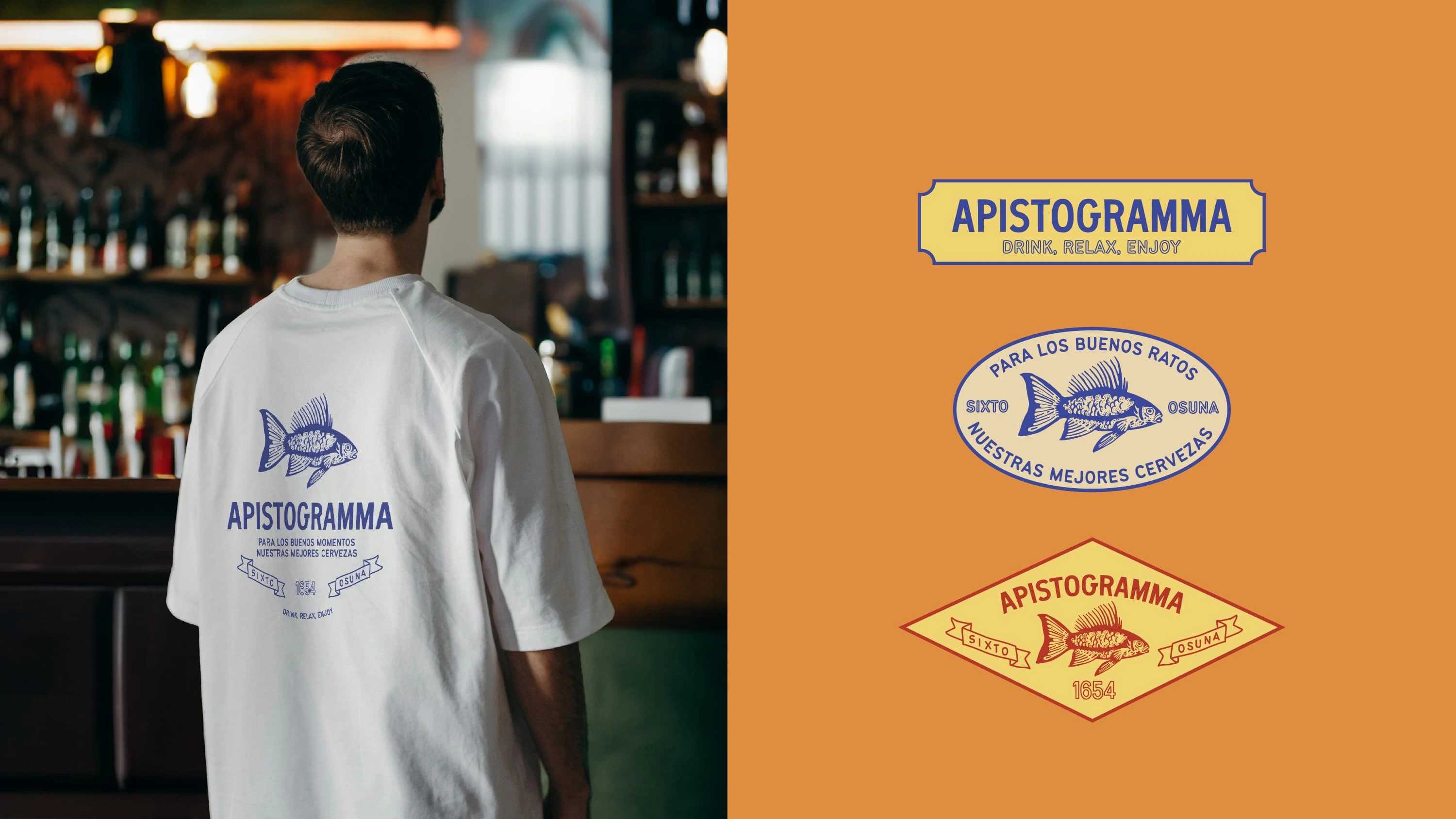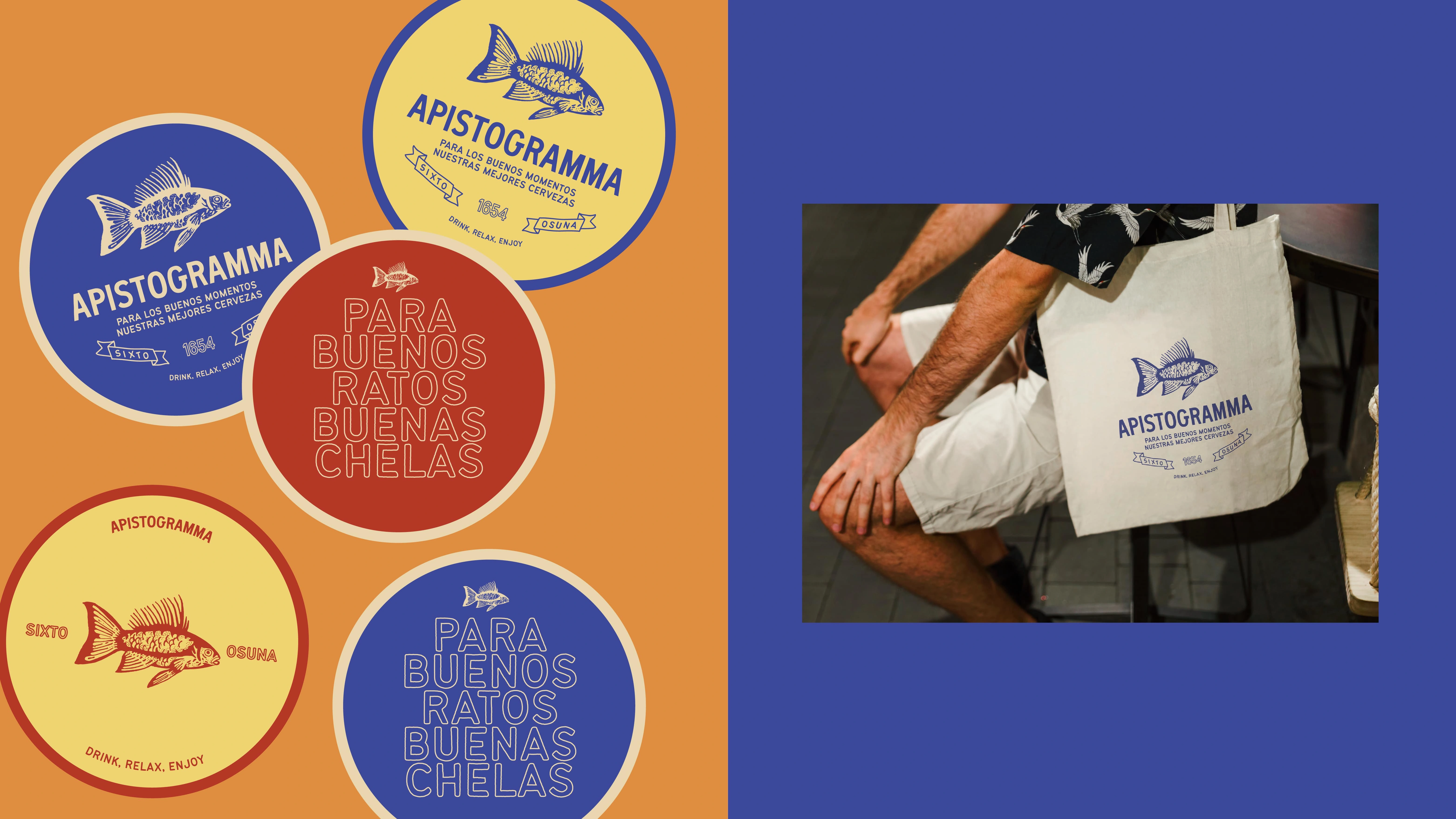 Brand identity for Apistogramma a relaxed pub in the historic center offering craft beers and snacks. The design captures its casual, eclectic, and social vibe.