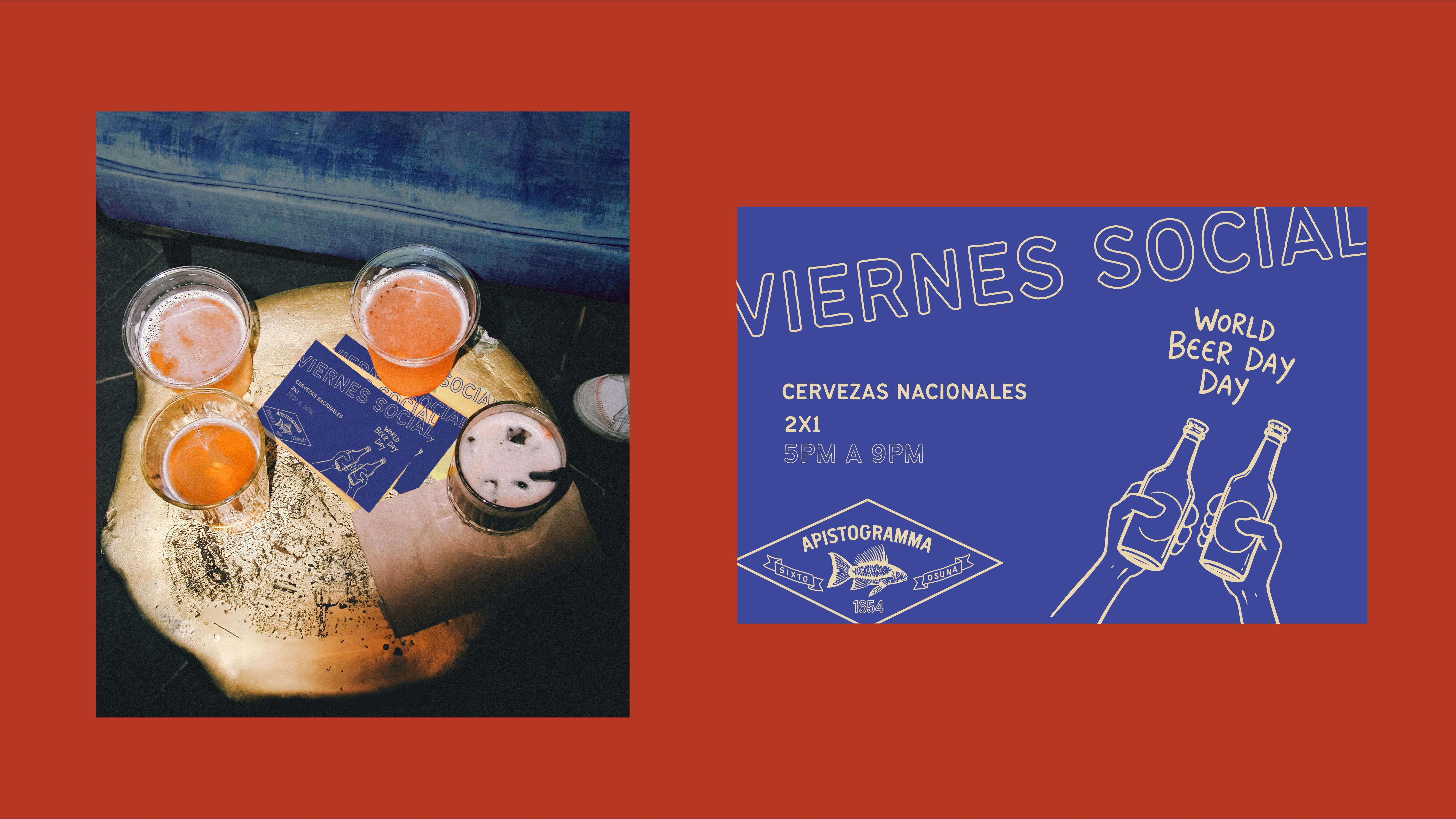 Brand identity for Apistogramma, a relaxed pub in the historic center offering craft beers and snacks. The design captures its casual, eclectic, and social vibe.