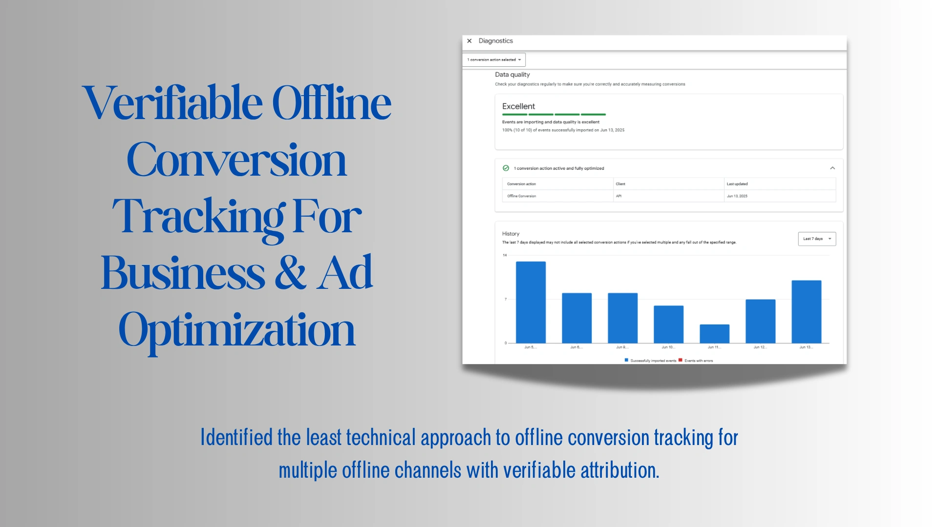 Executed offline conversion tracking for a mid size business taking orders via email & phone calls using sales agents. Created a process to verify attribution.