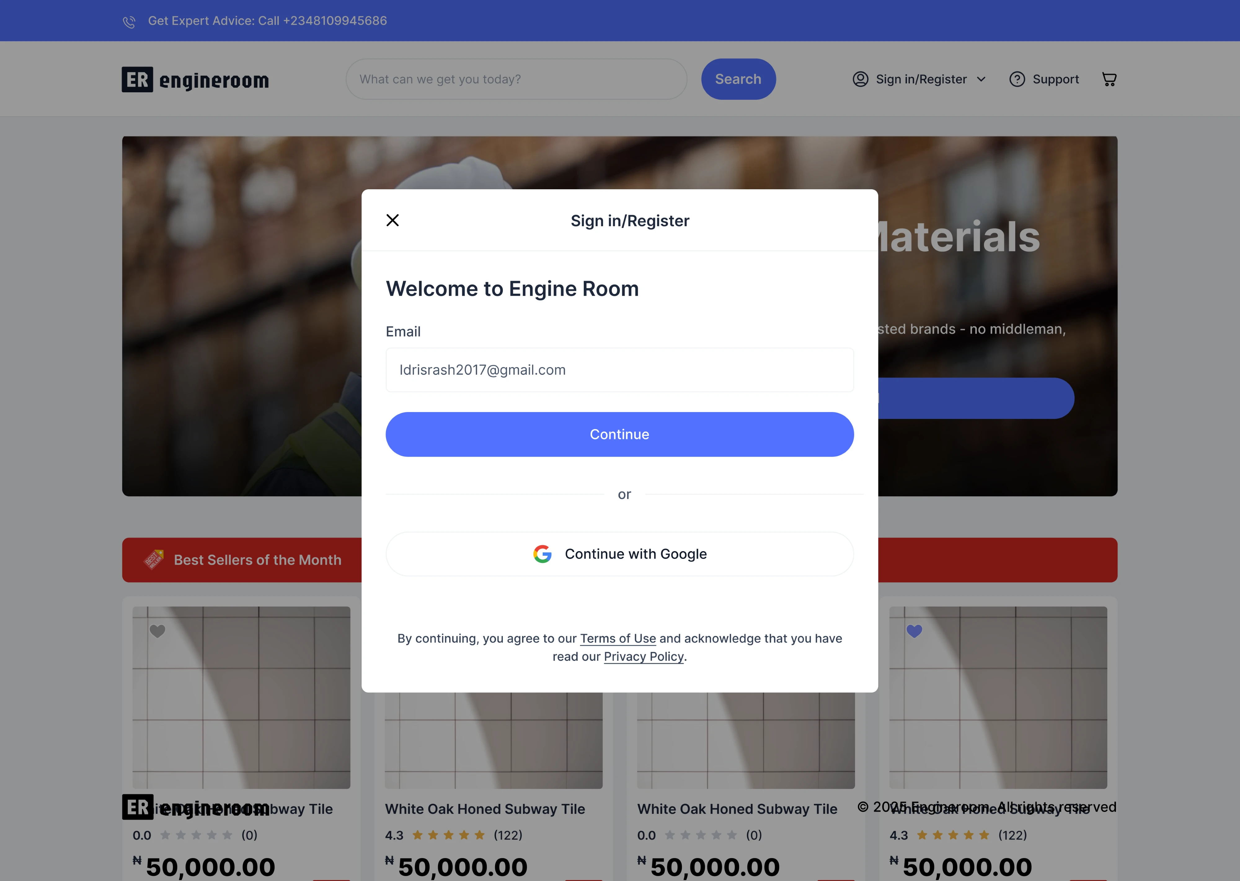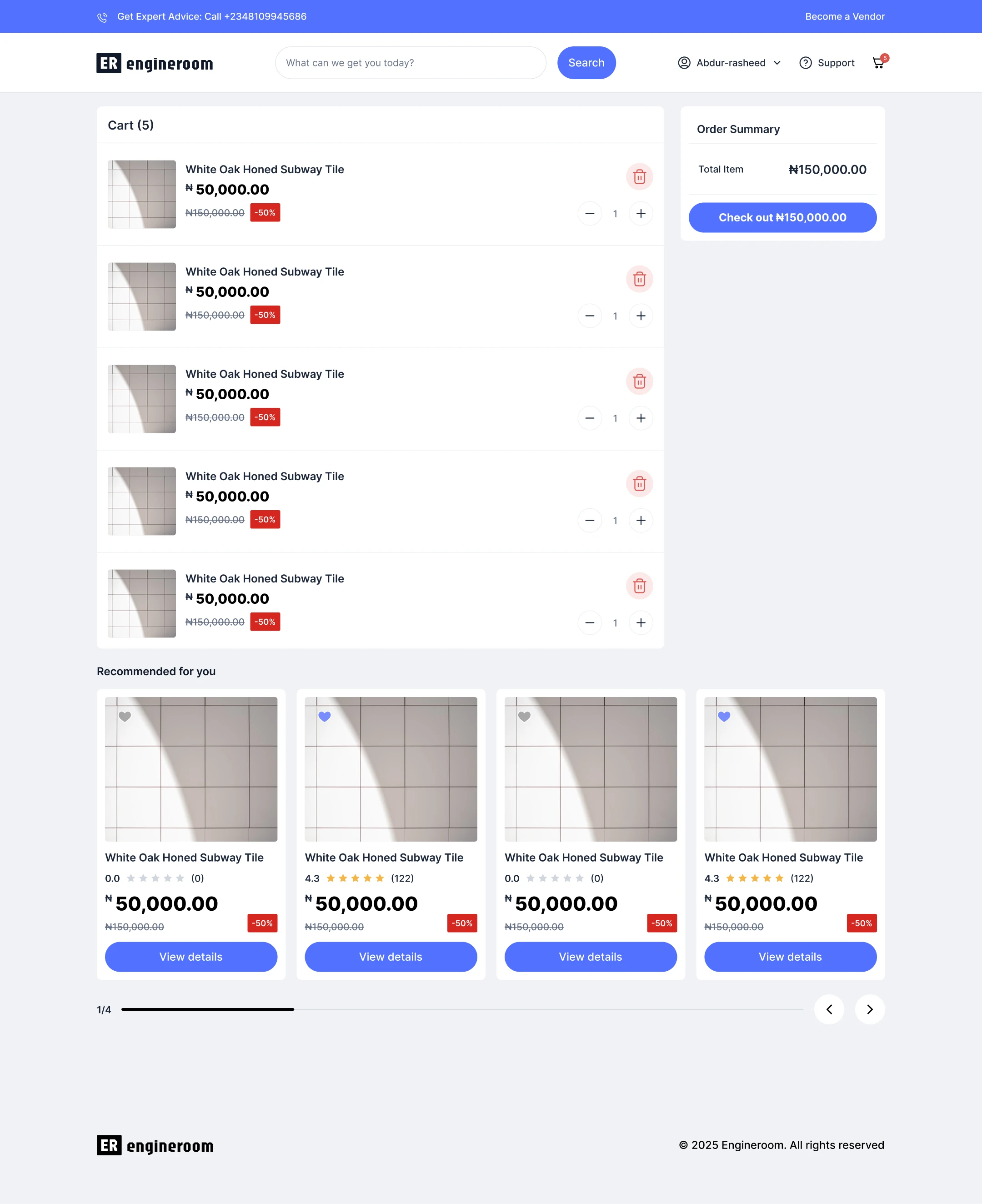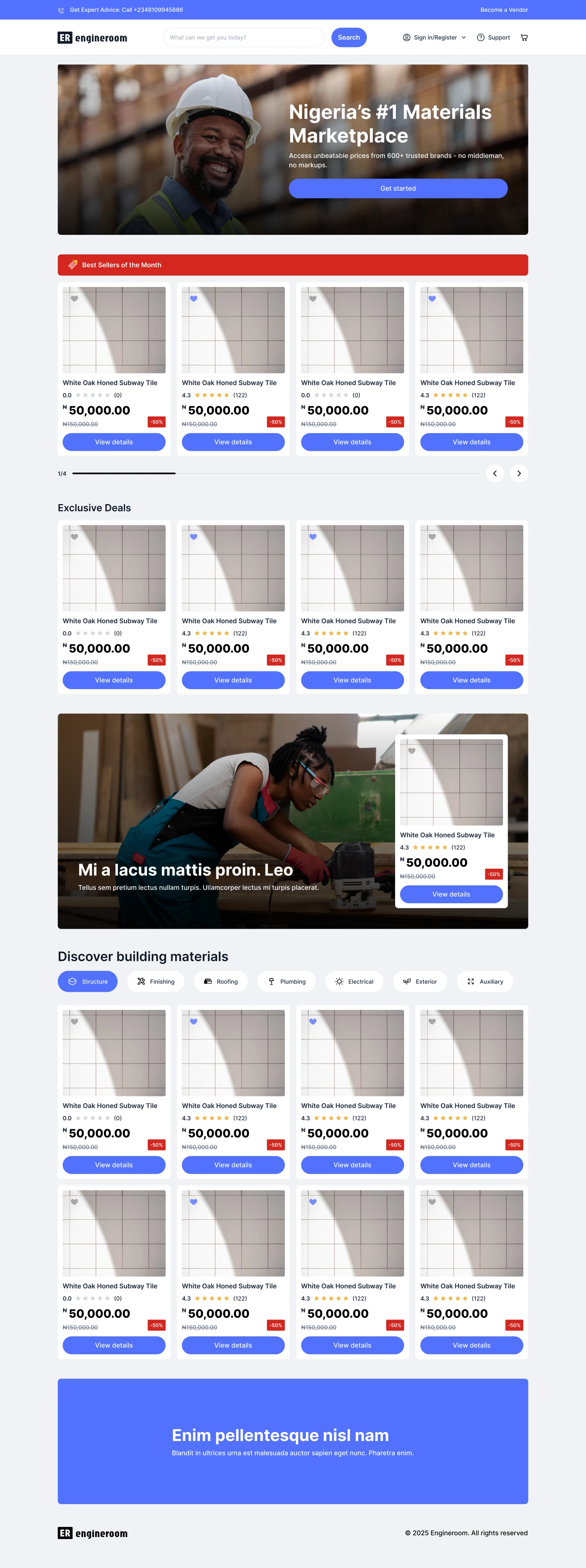 EngineRoom is an e-commerce web app for building materials.