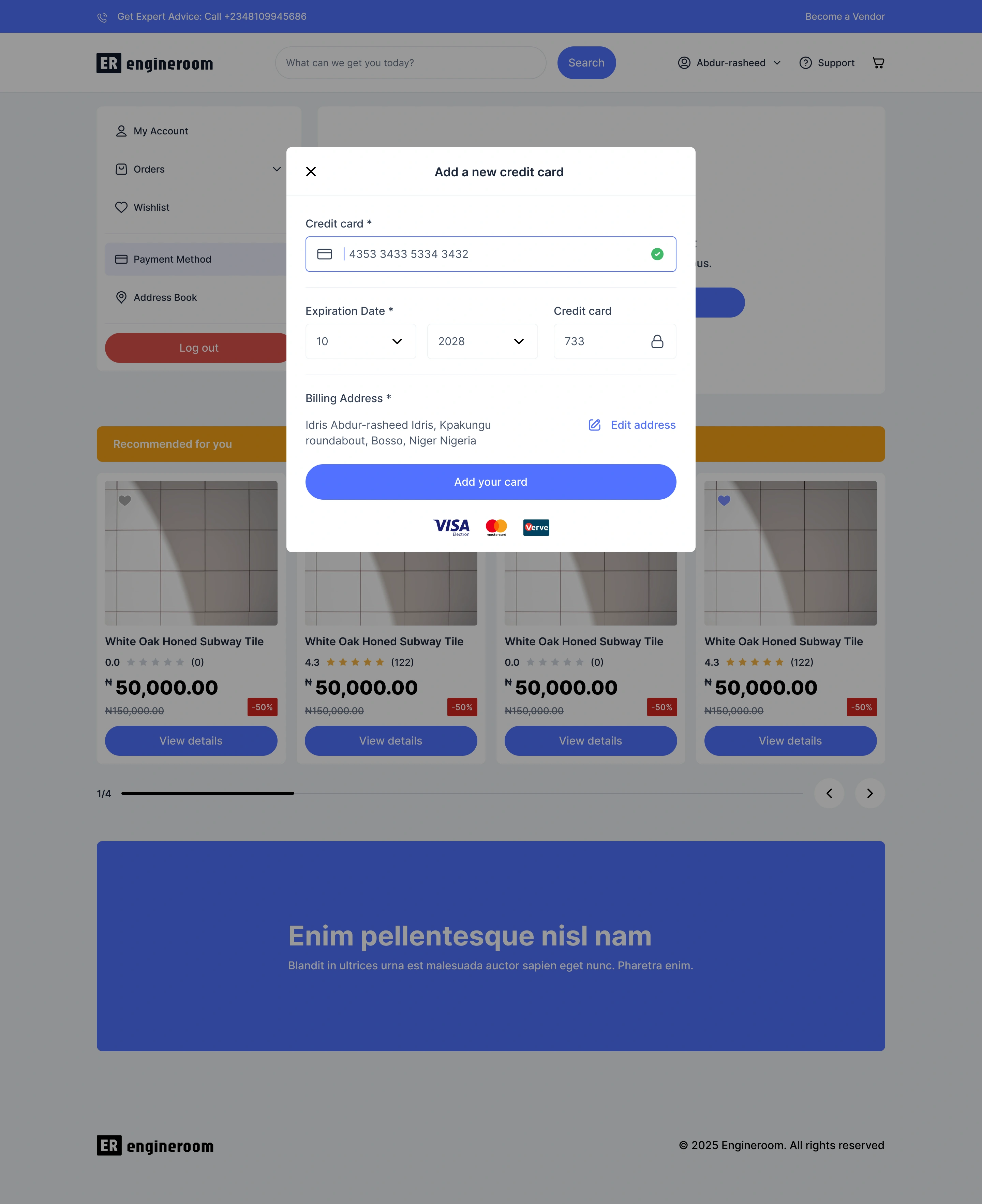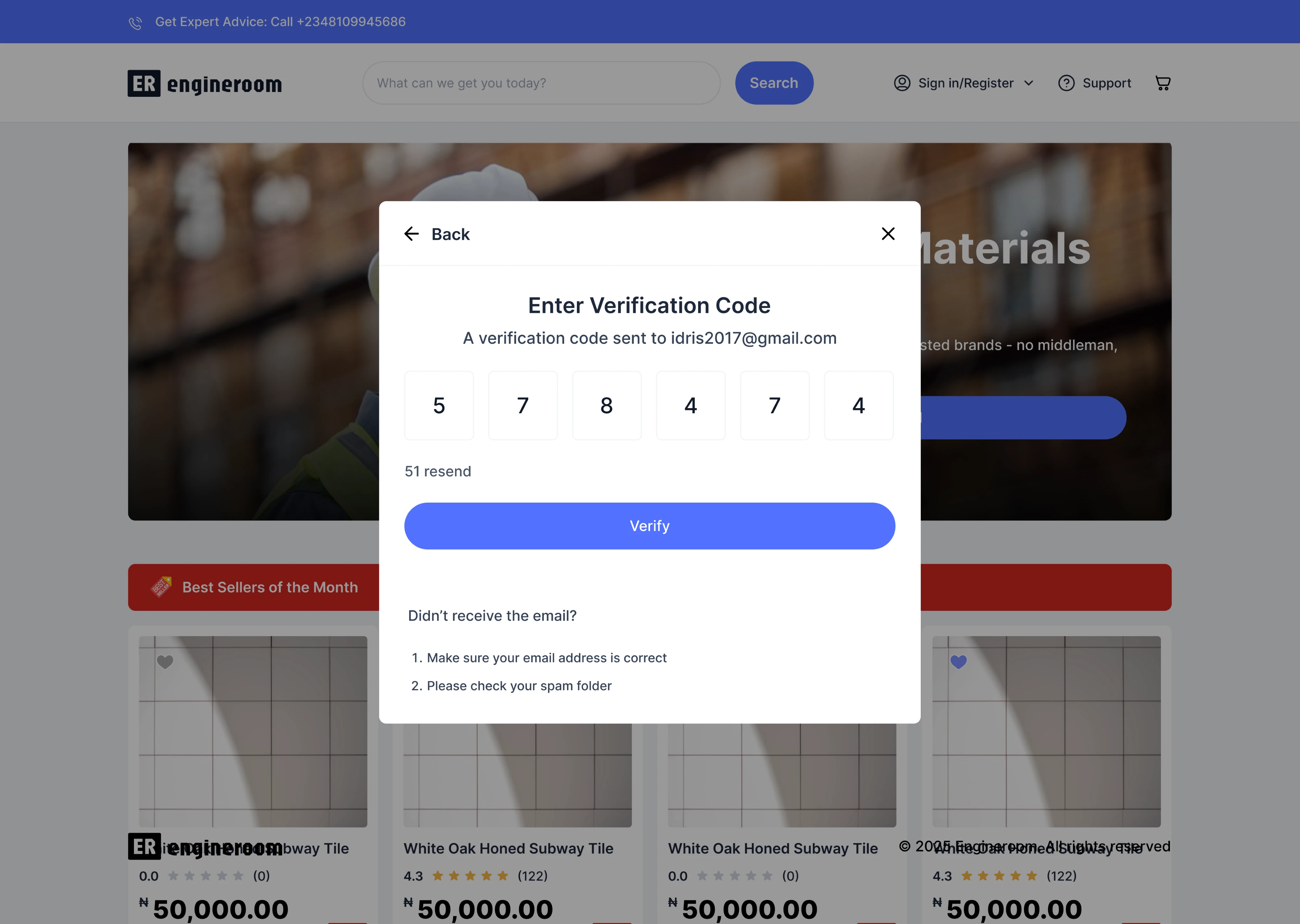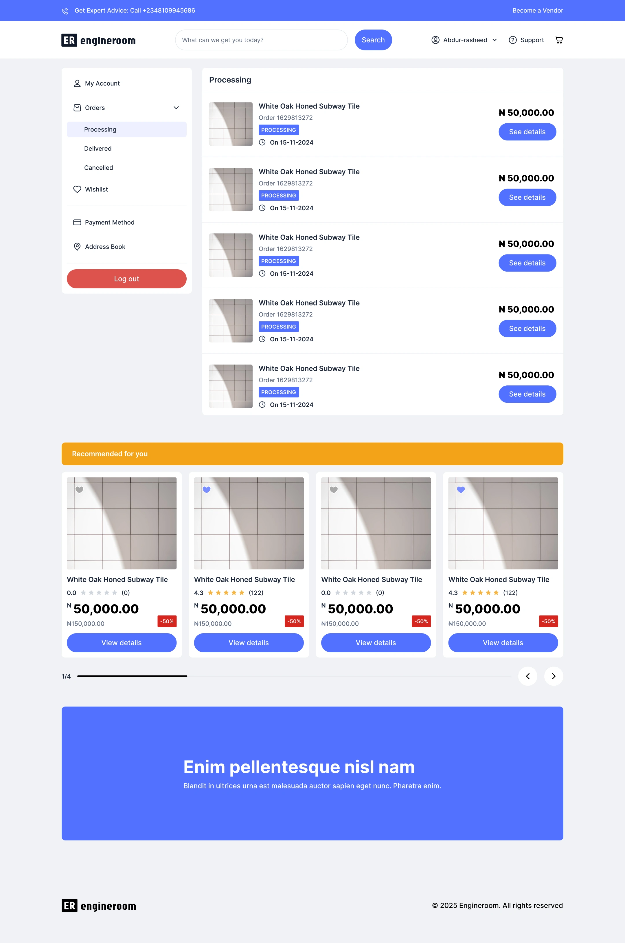 EngineRoom is an e-commerce web app for building materials.