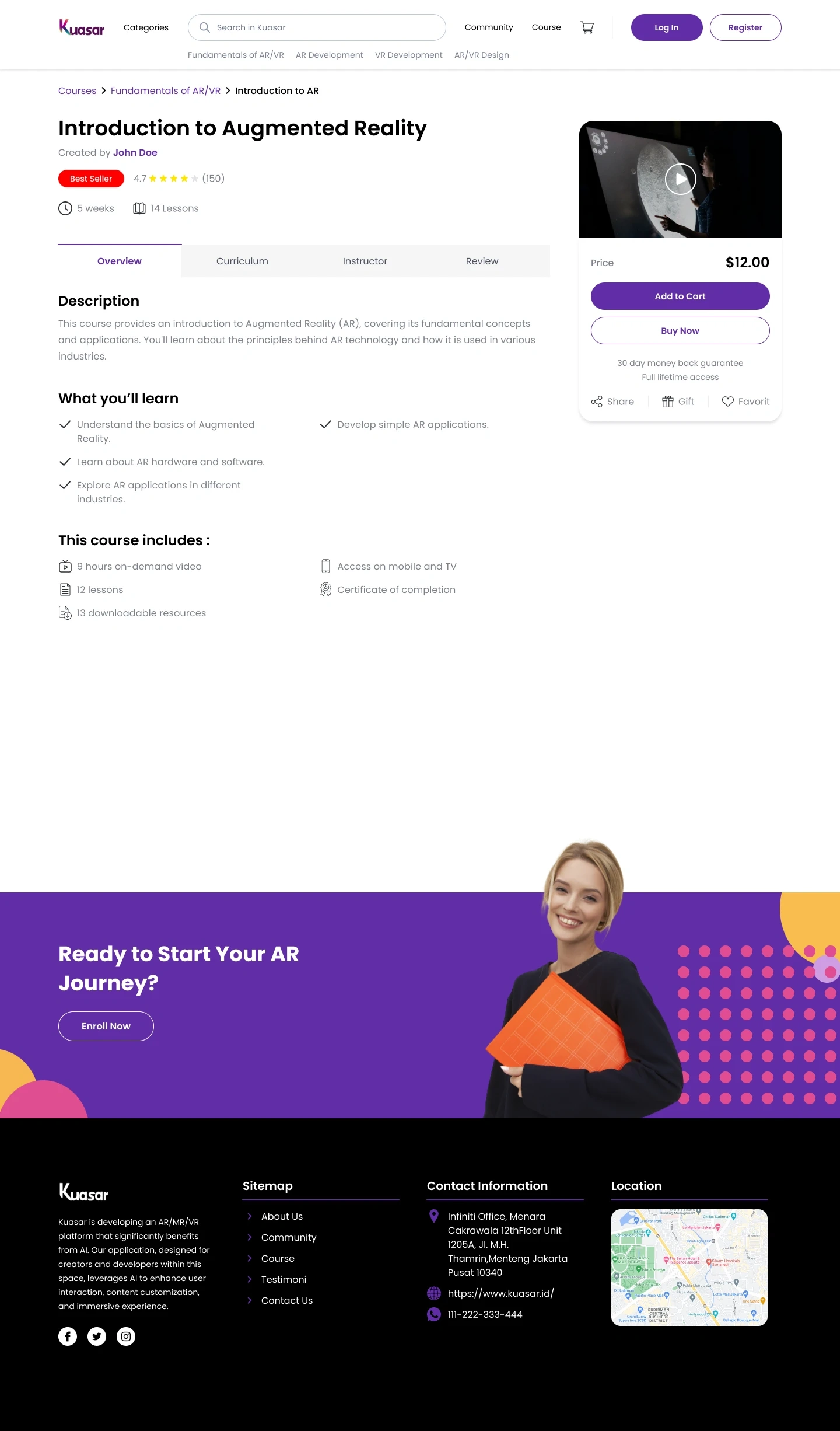 Delivered a specialized e-learning platform that simplifies AR/VR mastery through a structured curriculum and an immersive, creator-focused interface.