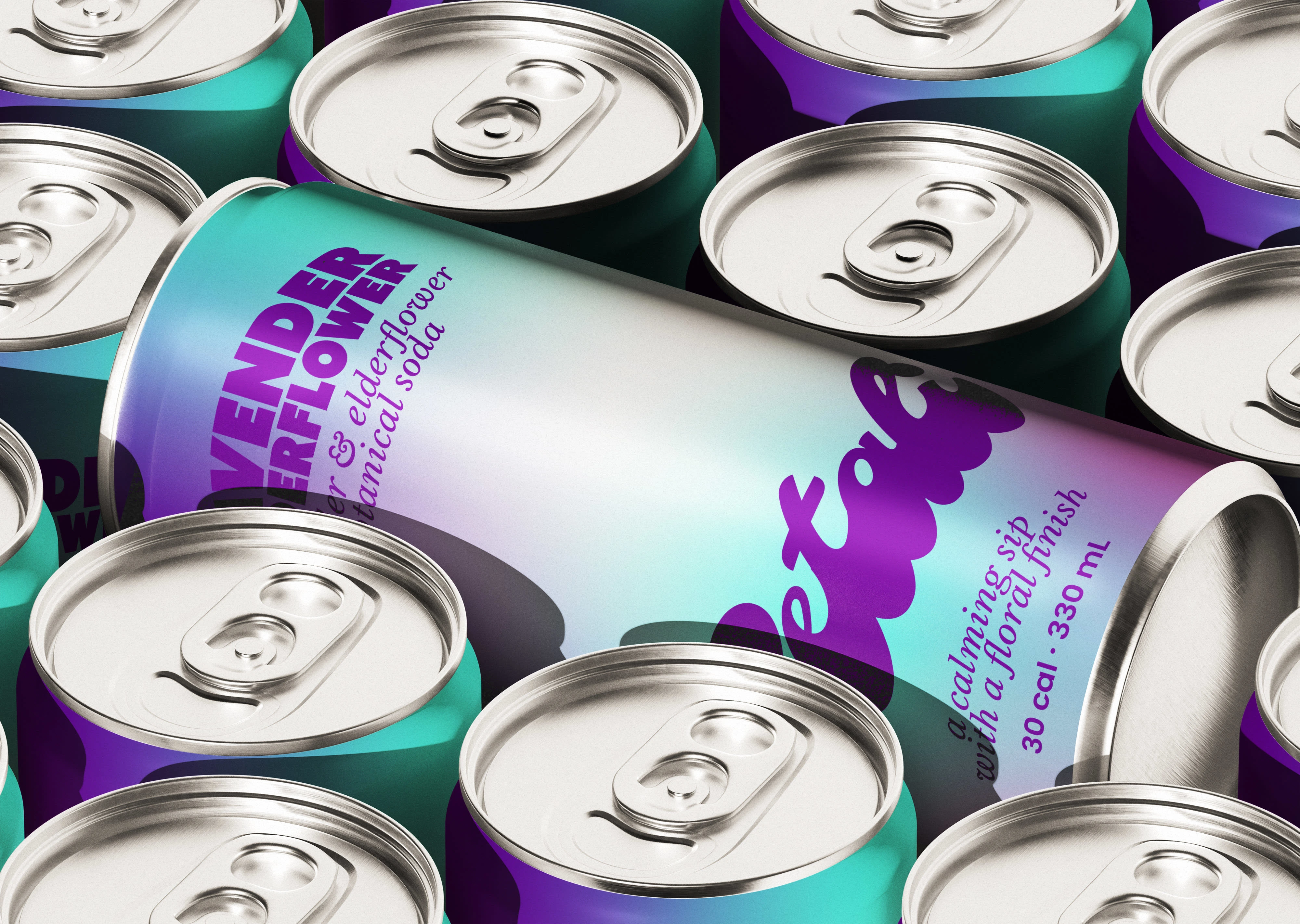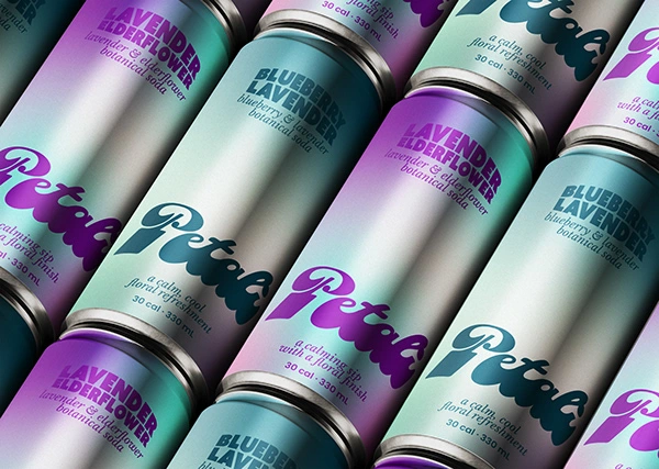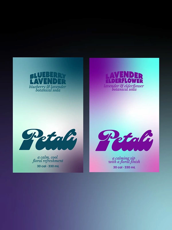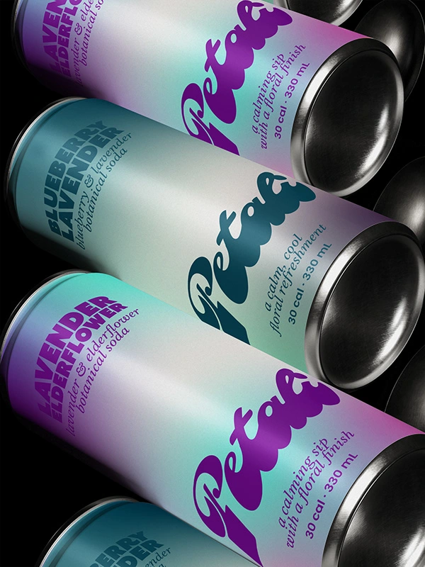 The goal for Petali was to create a soda brand that feels floral and calming without looking overly delicate or generic.