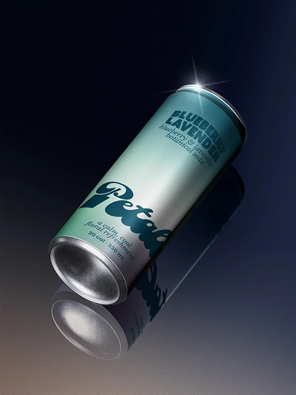 Petali turns a simple soda into a calming, sensory brand experience that feels fresh, floral, and visually elevated.