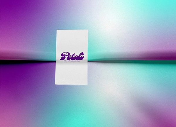 The Petali identity is built around smooth gradient colour transitions inspired by botanical flavours like lavender, elderflower, and blueberry.