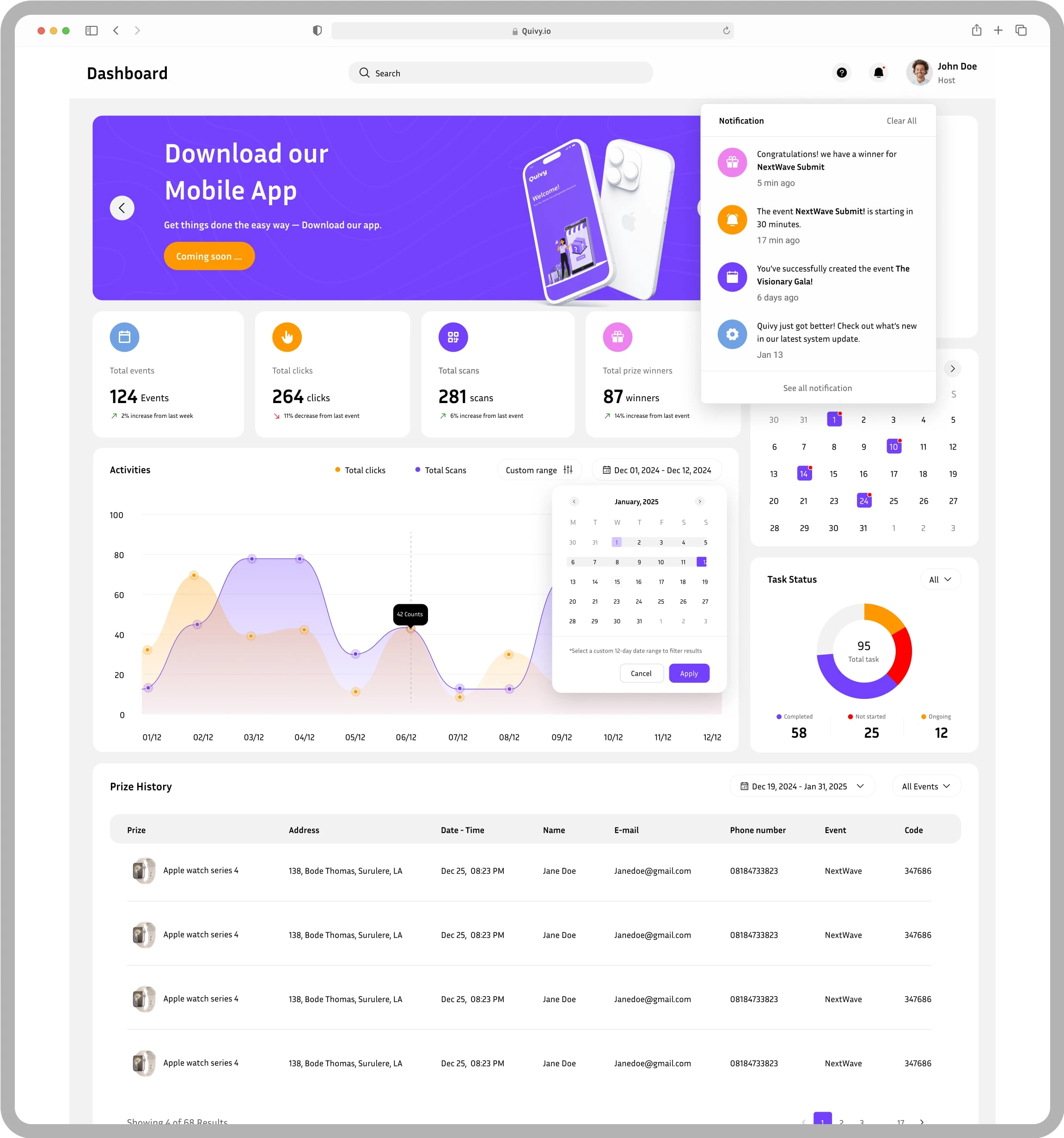 Quivy is a giveaway platform that boosts brand awareness and engagement. I designed a fun, simple interface for instant-win experiences that excite users.