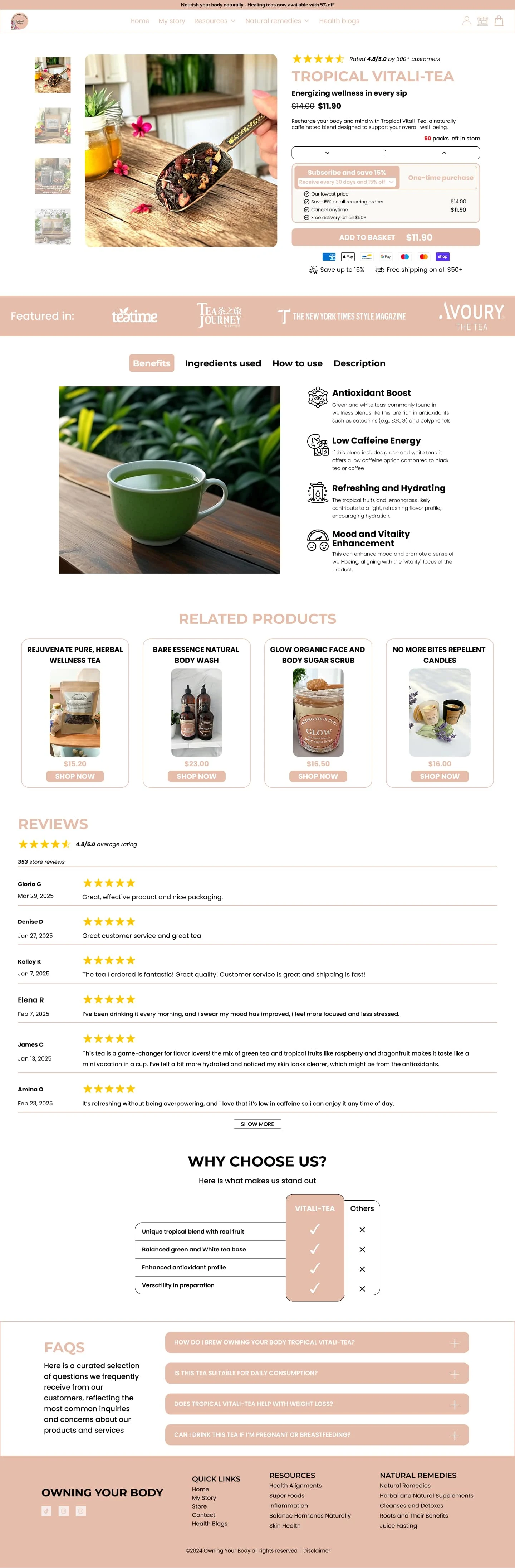 Designed a Product detail page to be more unique and aim to convert visitors to customers with clear CTA