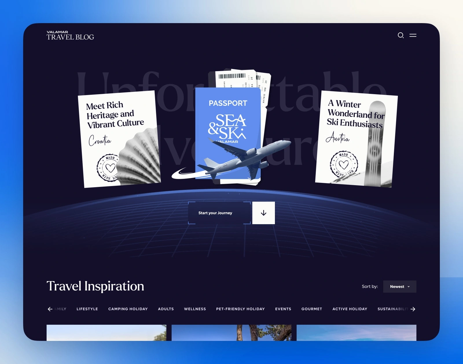 A premium editorial redesign for Valamar’s blog, built to showcase sunny Croatian escapes and winter adventures in the Austrian Alps.