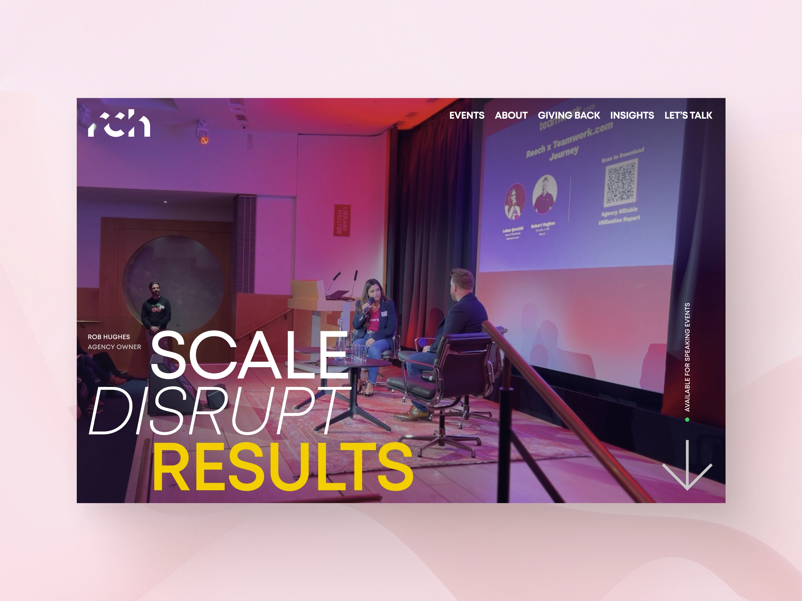 Reech. A great project to create a platform for Rob to share upcoming events, talk about insights as an entrepreneur, as well as future client outreach.