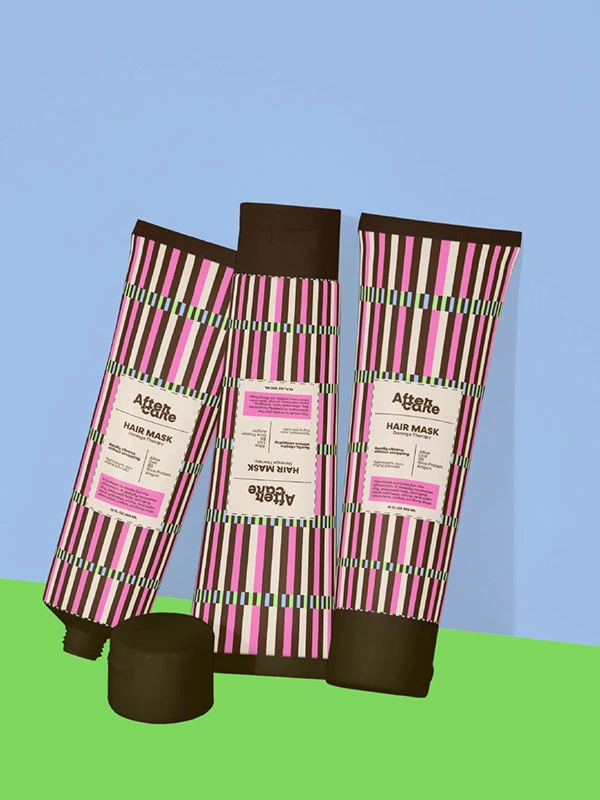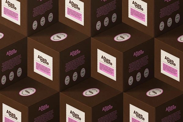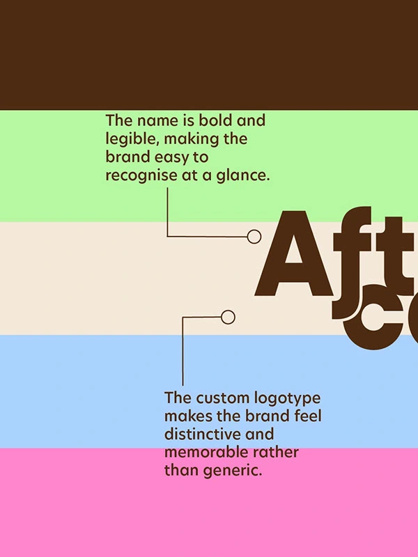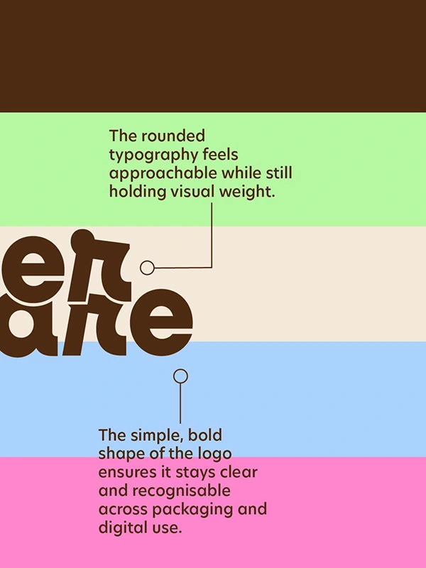 The visual identity is warm, soft, and recognisable. A palette of muted blues, creams, browns, and gentle pink accents creates a sense of comfort and care. Rounded typography adds approachability, while a consistent striped pattern builds a recognisable system across packaging and digital touchpoints.