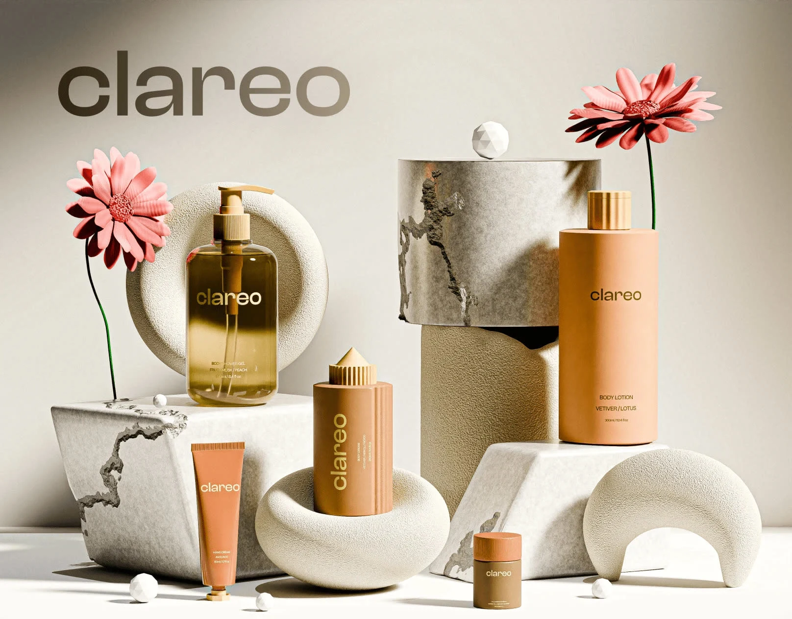 Realistic 3D visualizations for a skincare brand to emphasize the natural and eco-friendly essence of the brand while showcasing the aesthetic appeal of package