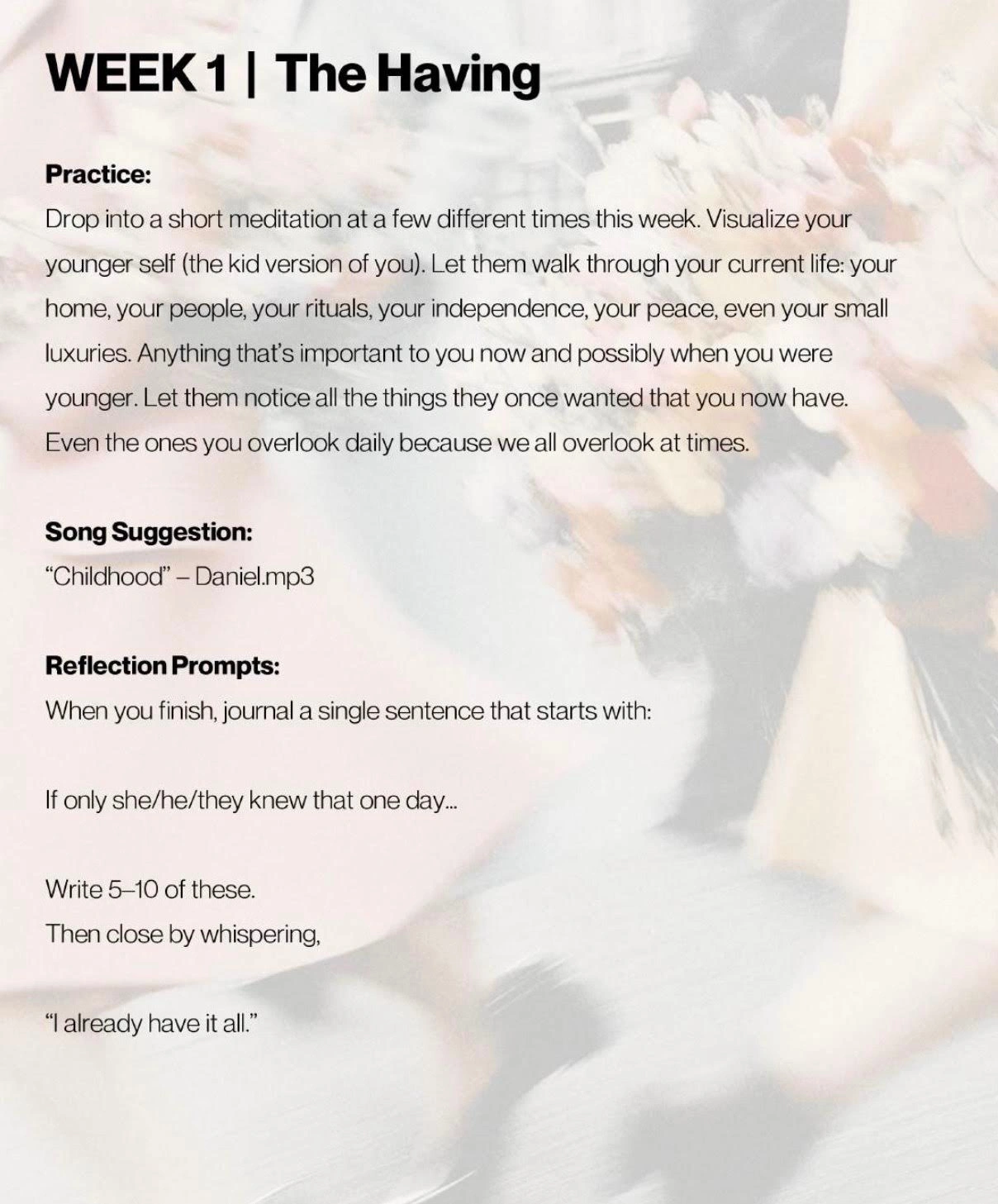 Custom four-week workbook built for a monthly email club, with original copy, curated practices, and cohesive visual branding.