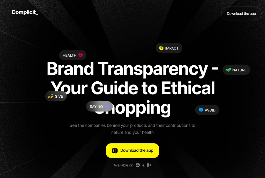 Discover brands’ ethical stances with Complicit – a mobile app helping conscious consumers make informed buying decisions.
