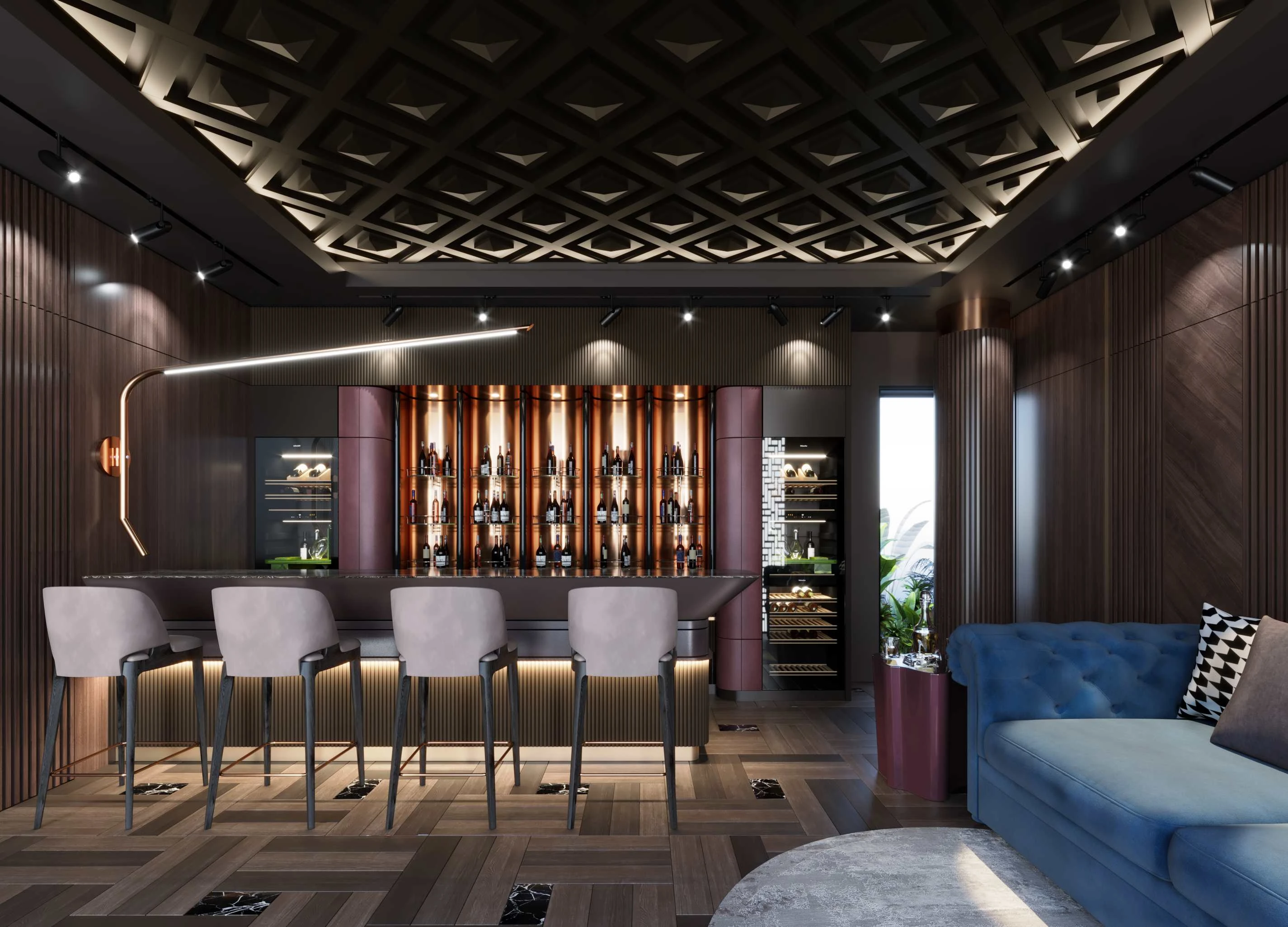 Inteded for gathering and socializing.Every element used in this Private Lounge plays an integral role in defining for sophisticated look and feel of the space.