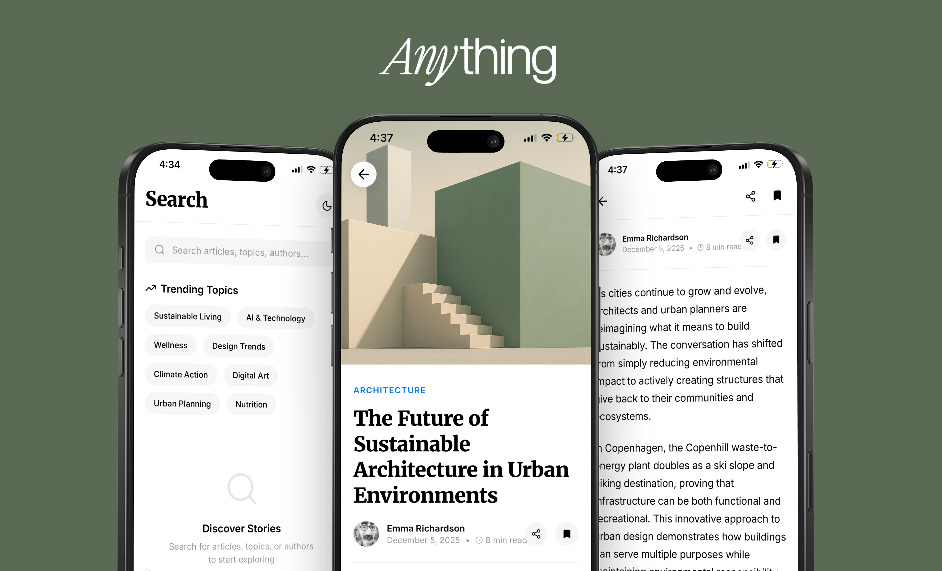 The main home page needed to be extremely simple with an Apple-style aesthetic. I first generated the layout using Anything, which delivered a strong base.