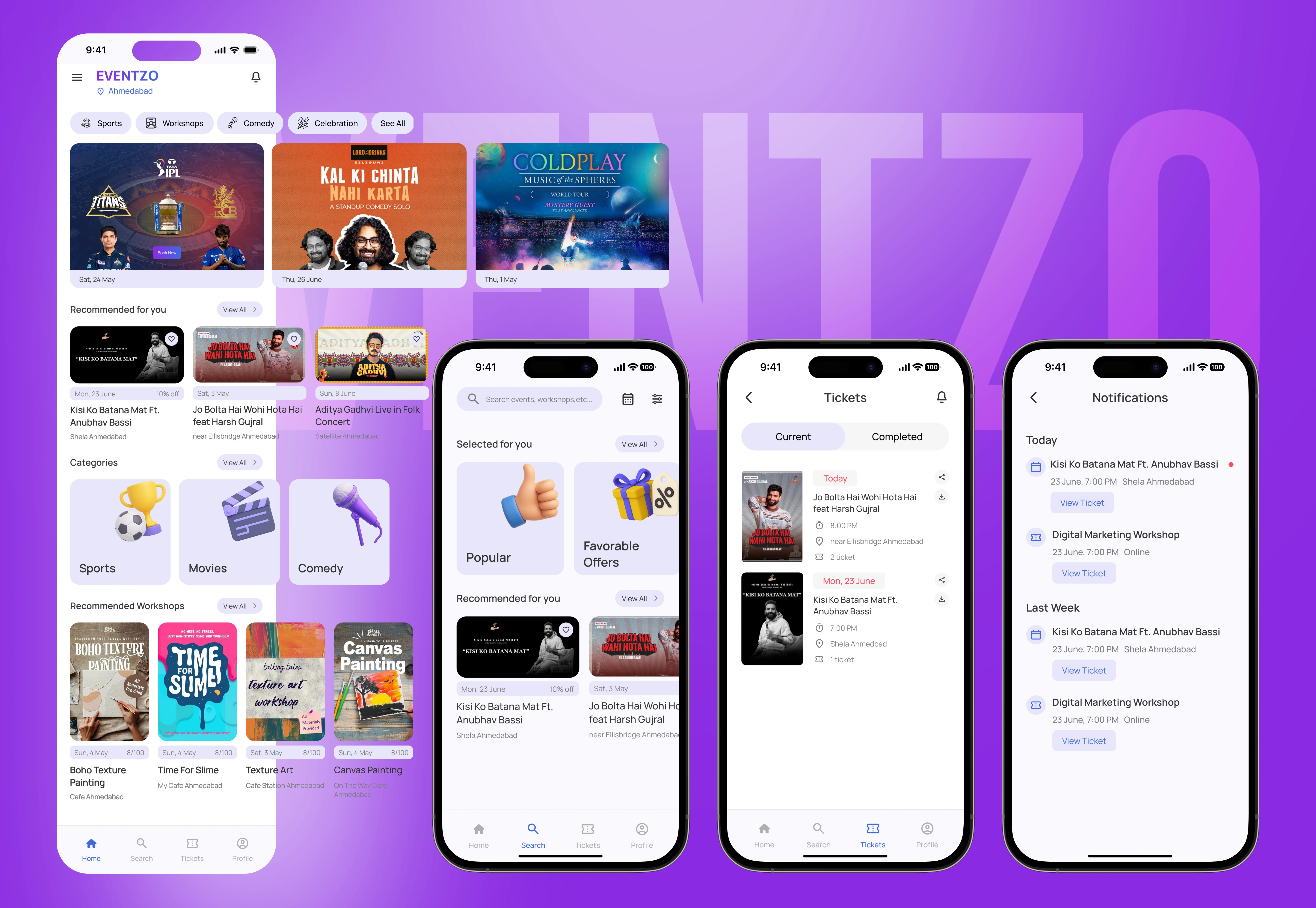 Eventzo is a mobile app for discovering, booking, and managing events. Browse events, buy tickets, track schedules, & get real-time updates all in one place.