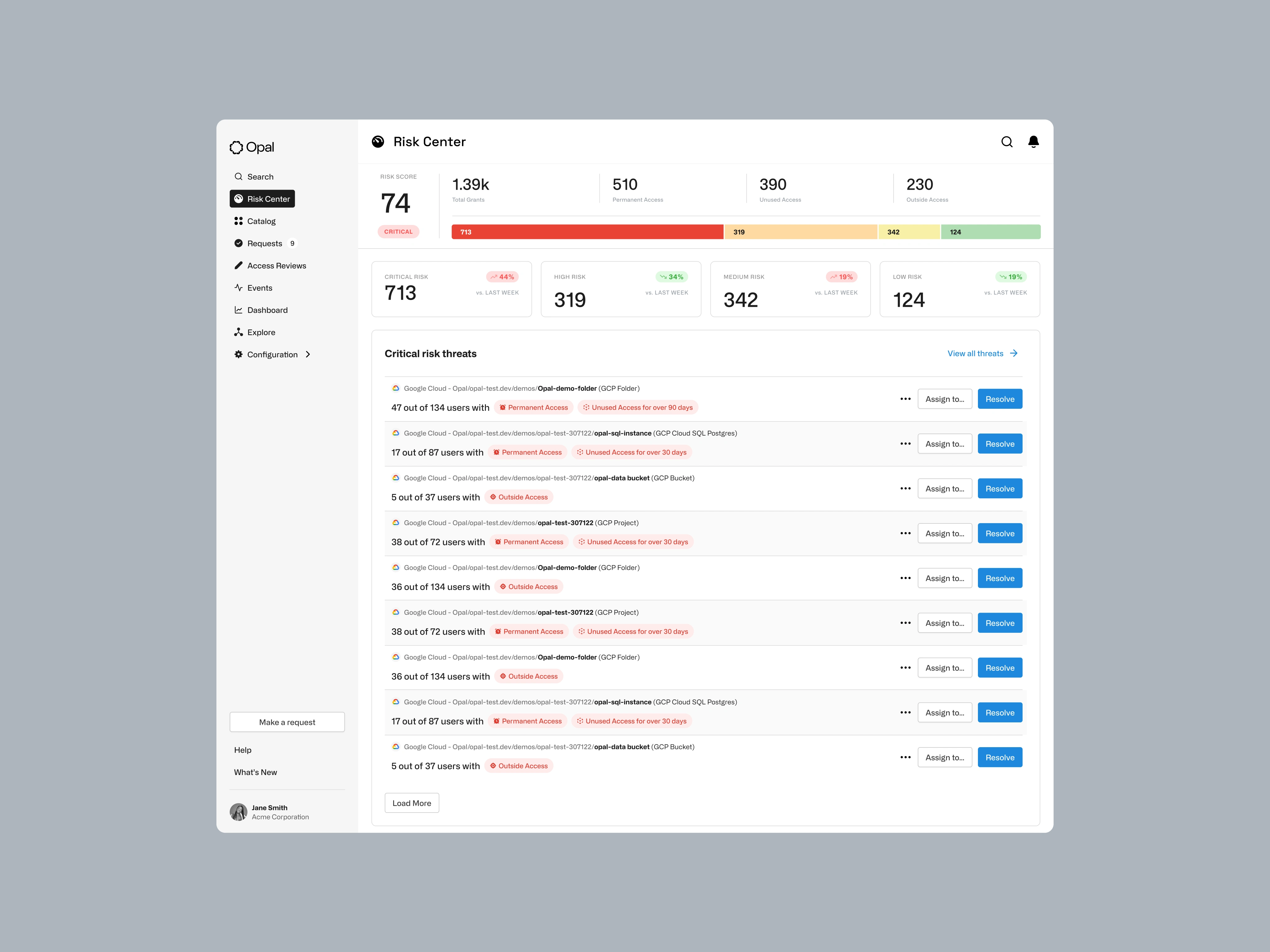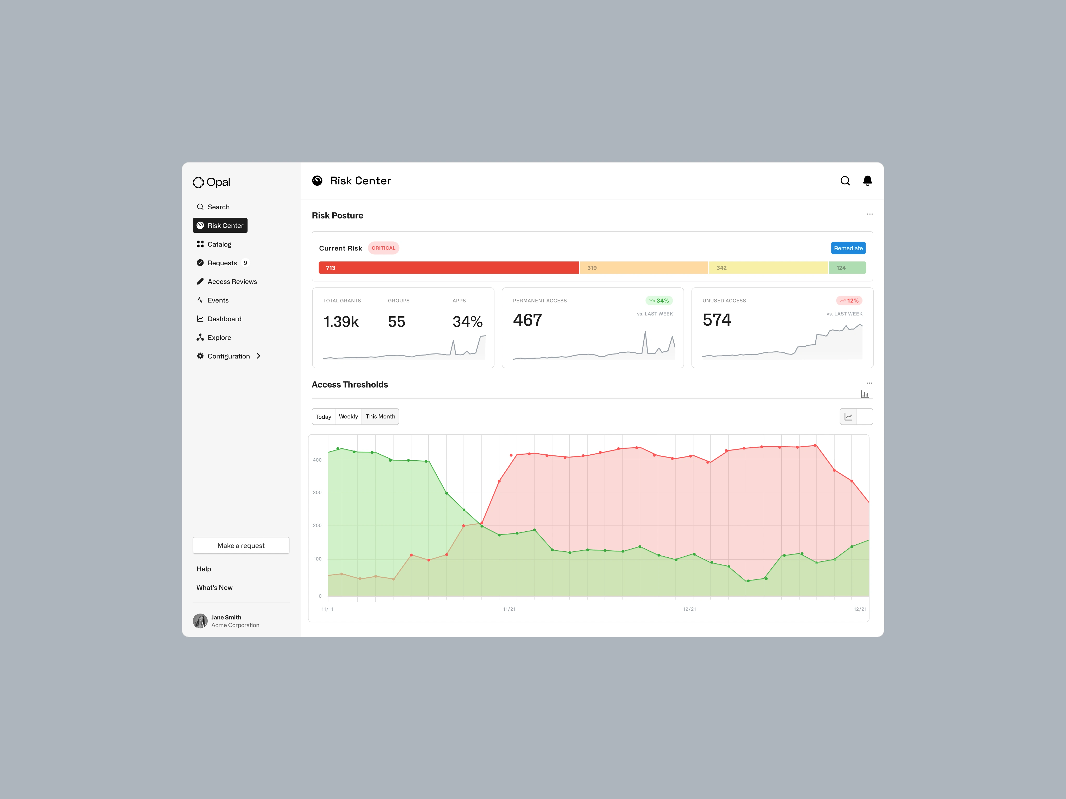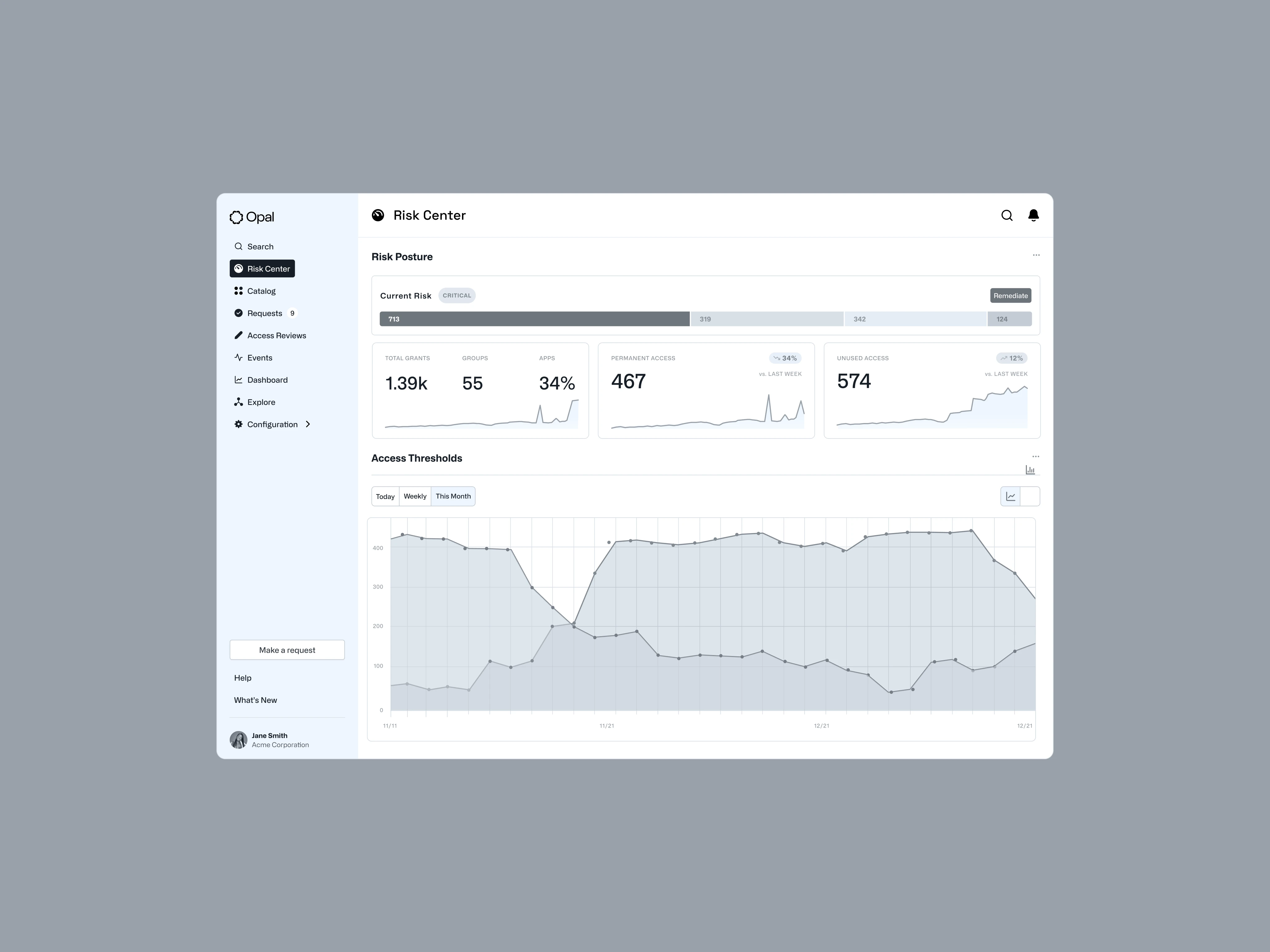Opal the Risk Center, from scratch to make important signals clear, actionable, and more trustworthy. The project began with a deep dive into the existing product's flaws and the users' needs. We analyzed the original design, conducted CISO interviews, held whiteboard sessions, and created a user journey map to define the core problems and requirements.