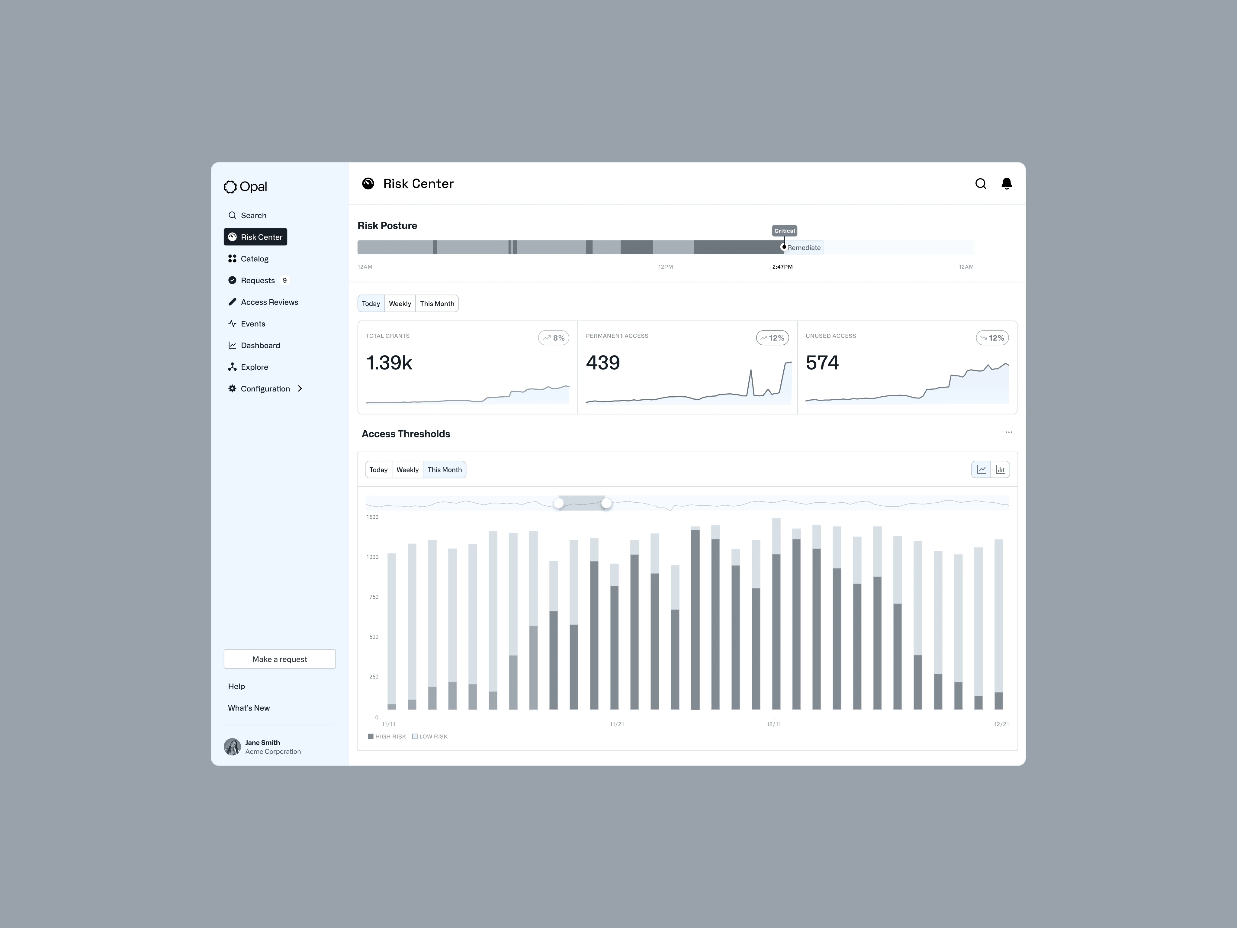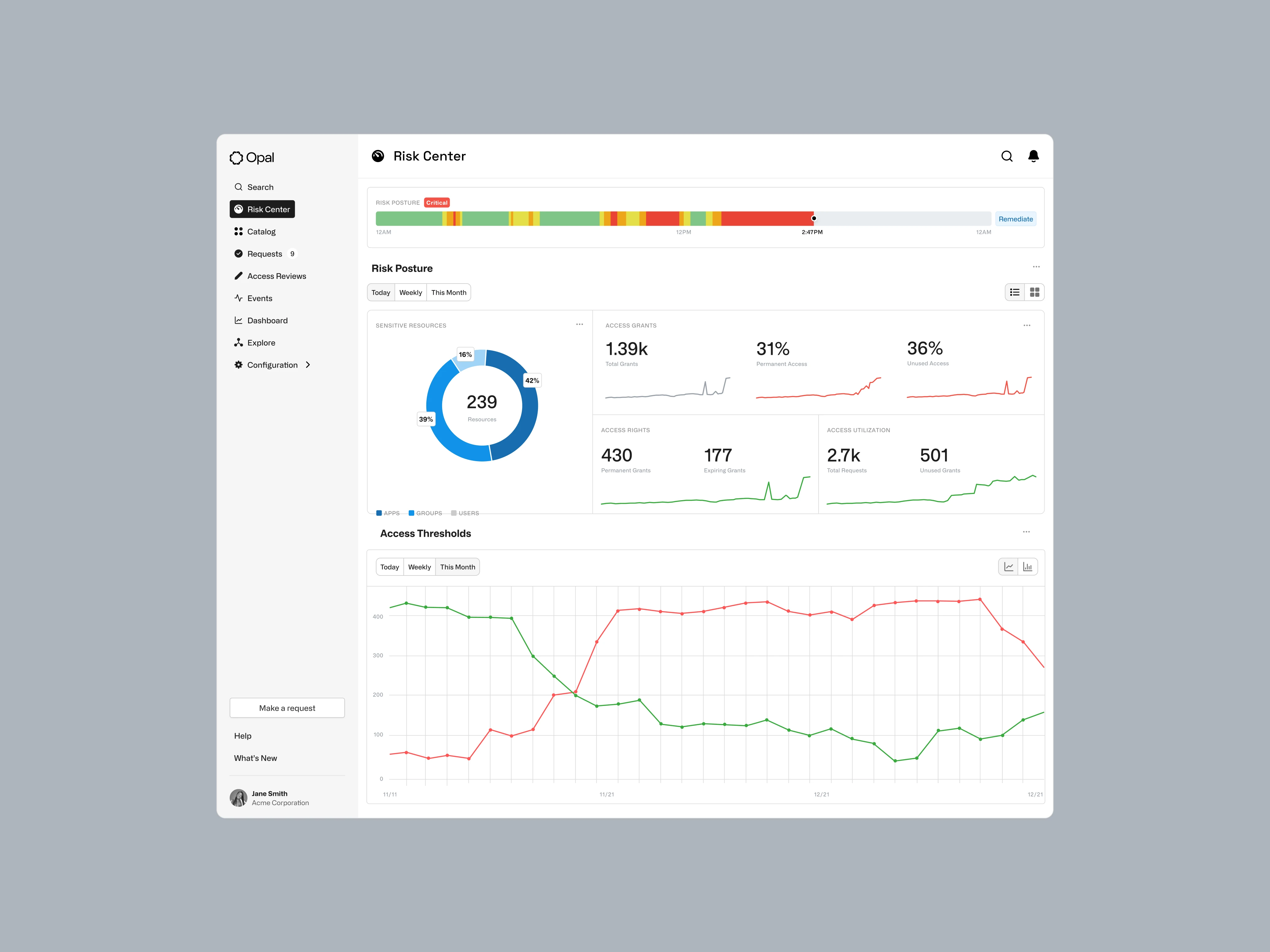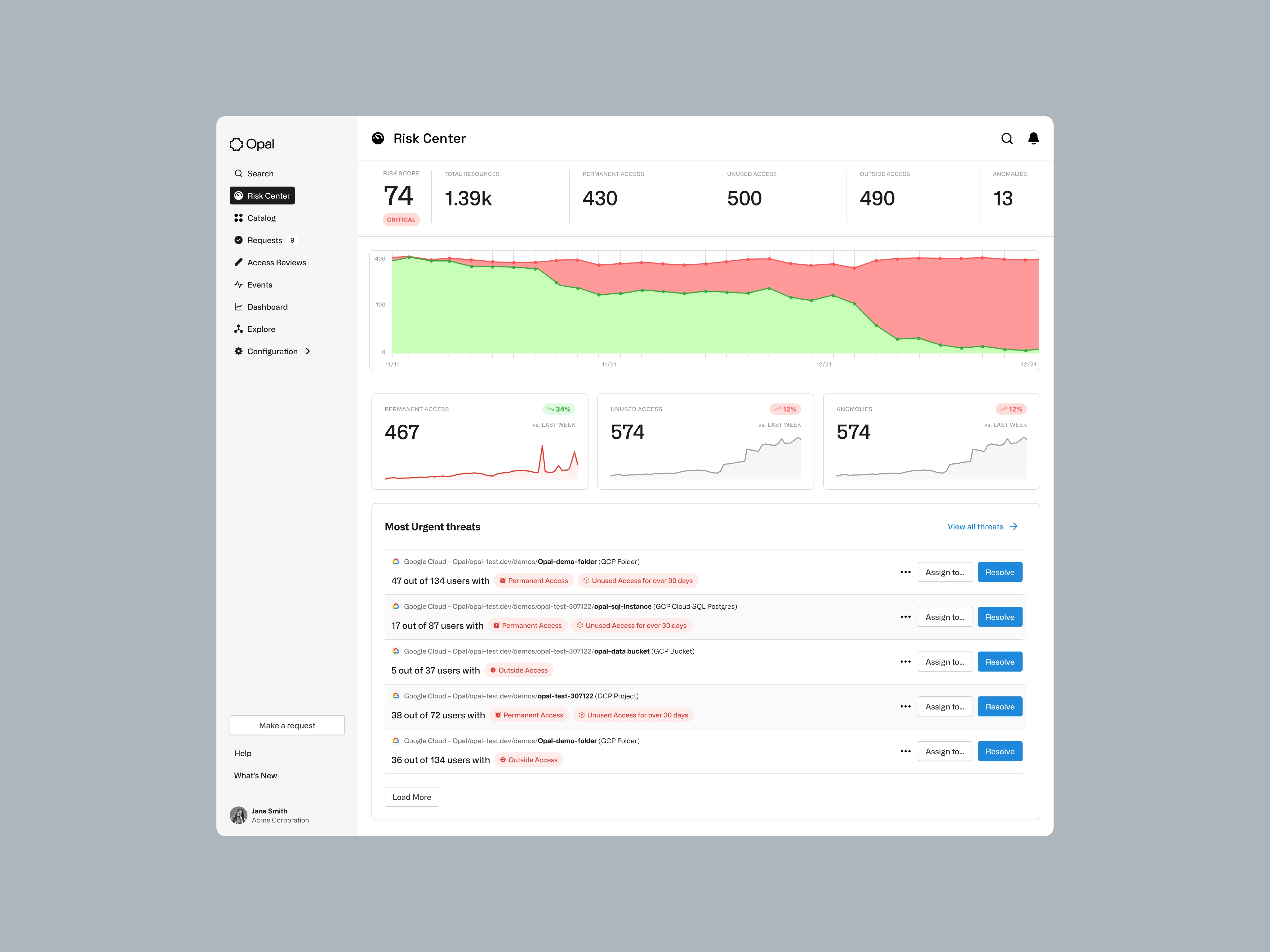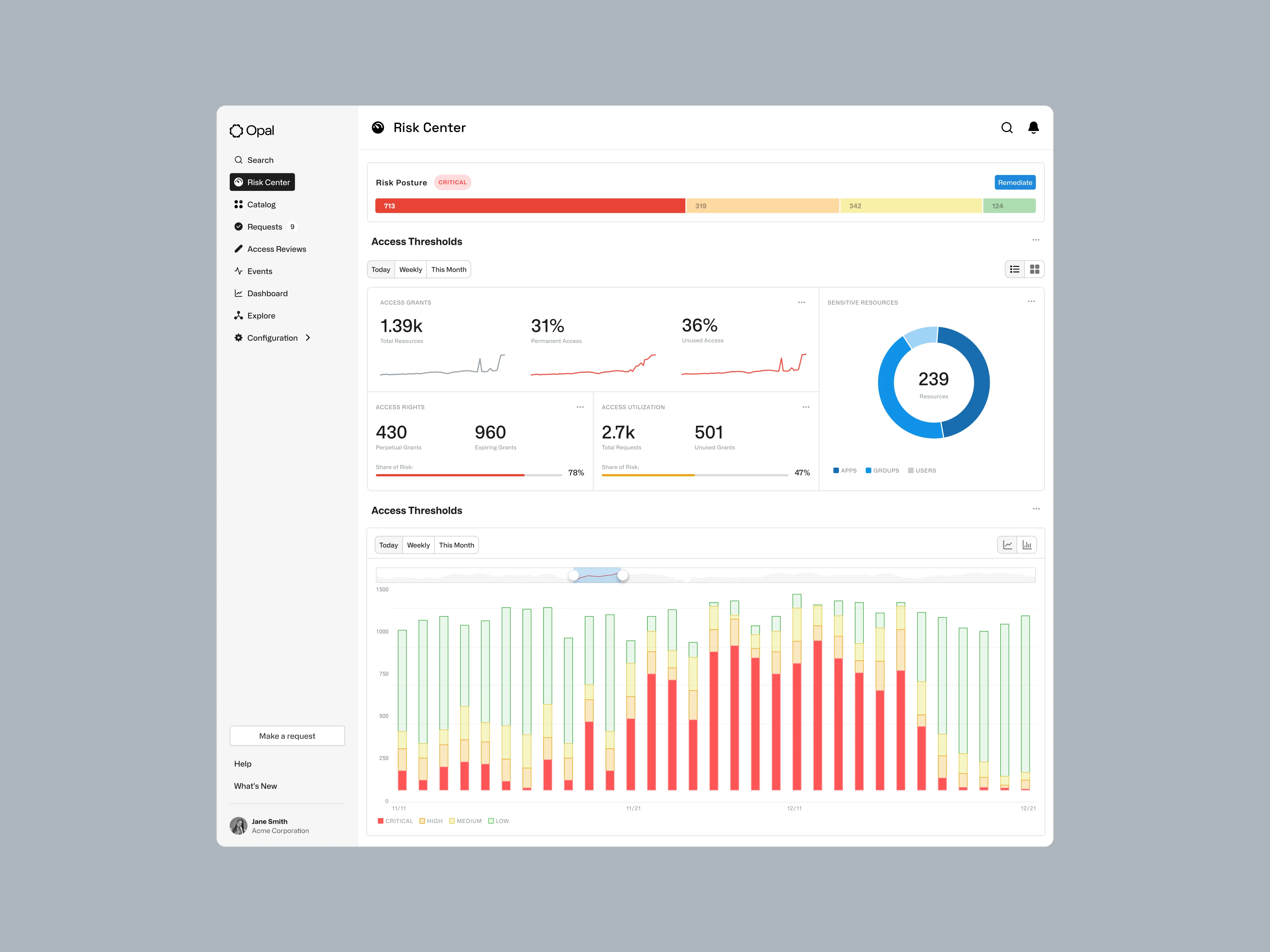 Opal the Risk Center, from scratch to make important signals clear, actionable, and more trustworthy. The project began with a deep dive into the existing product's flaws and the users' needs. We analyzed the original design, conducted CISO interviews, held whiteboard sessions, and created a user journey map to define the core problems and requirements.