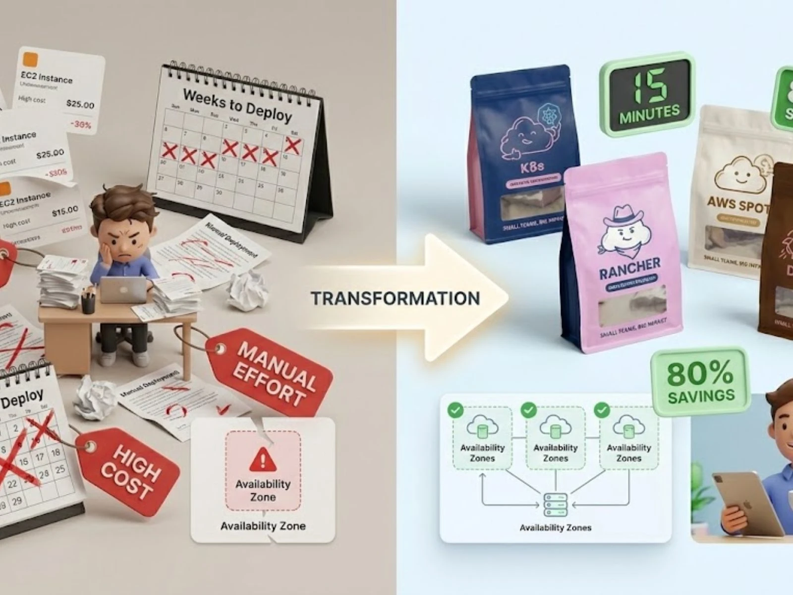 Transformed Value-Ad’s client deployment process, reducing time from weeks to minutes and cutting AWS costs by 80% using Kubernetes and Rancher
