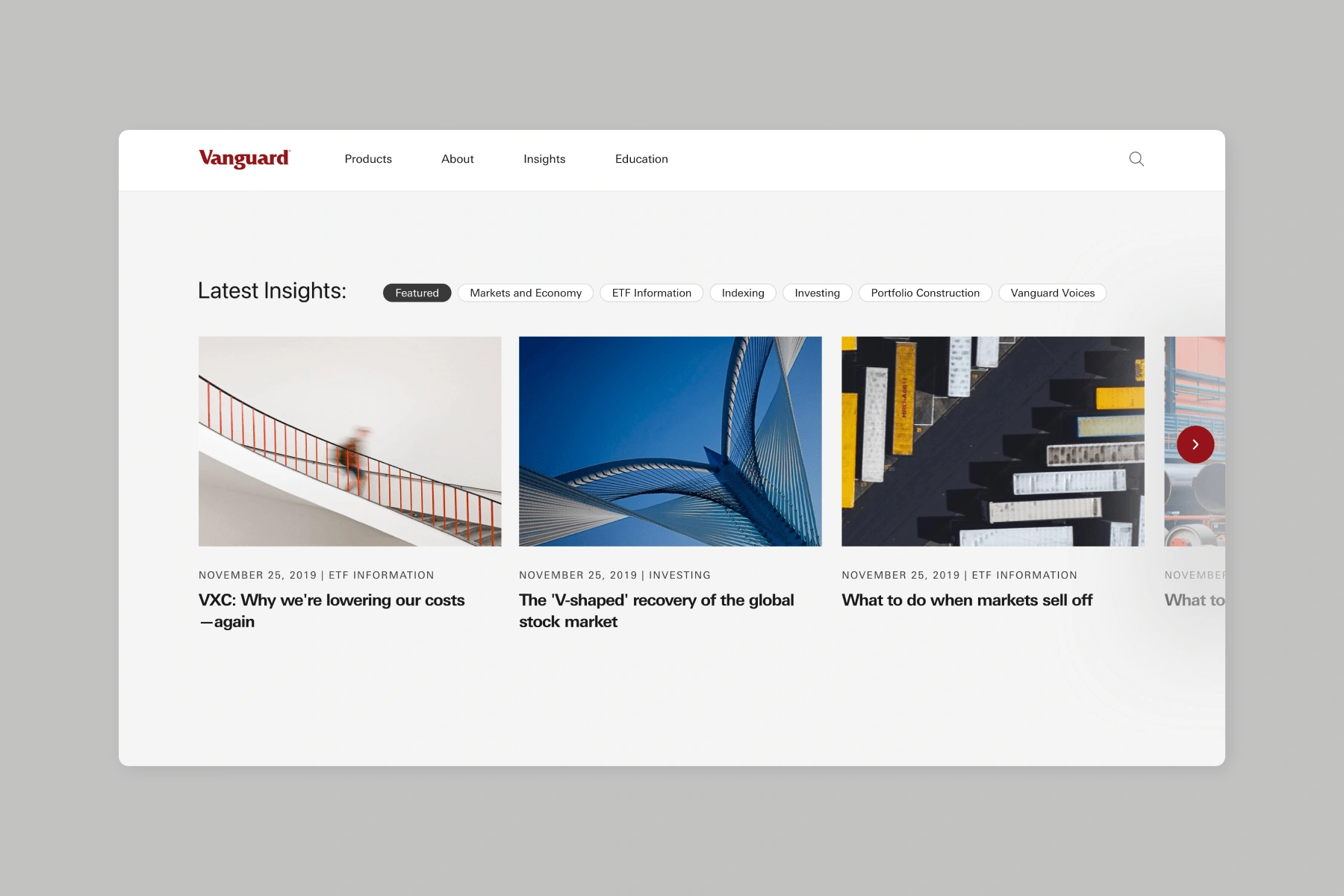 With the help of the Vanguard team, relevant stakeholders and workshops we were able to gain an understanding what pain points their team and users had with the existing website. At the end of the project we presented a strategic plan, vision and roadmap for how we would resolve these problems. The Vanguard leadership team was thrilled with the plan and our work set the foundation for future work to redesign and develop the new marketing site which is now live.