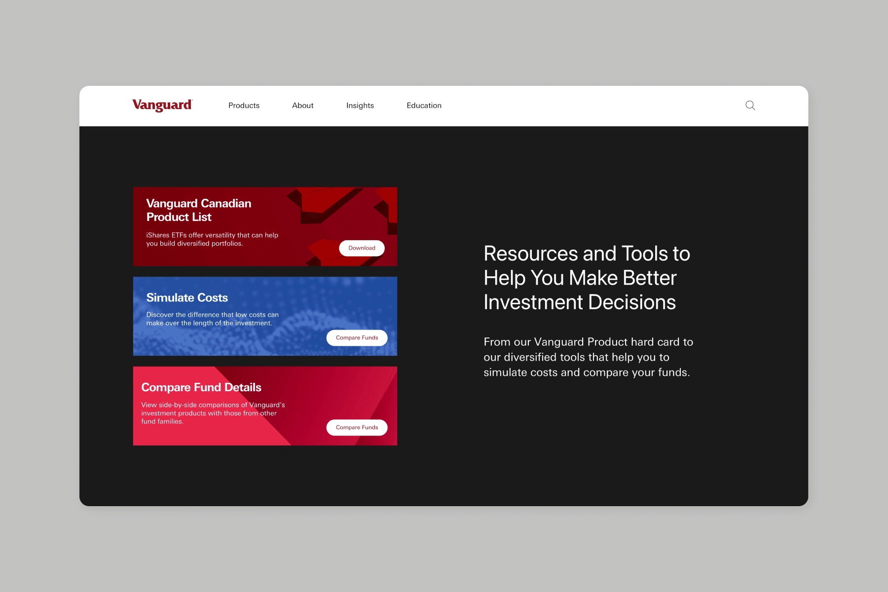 Vanguard is one of the worlds largest investment companies that offers a broad selection of investment products and services. I was part of a cross-functional team responsible for creating a new digital strategy for the Vanguard Canada’s marketing site.