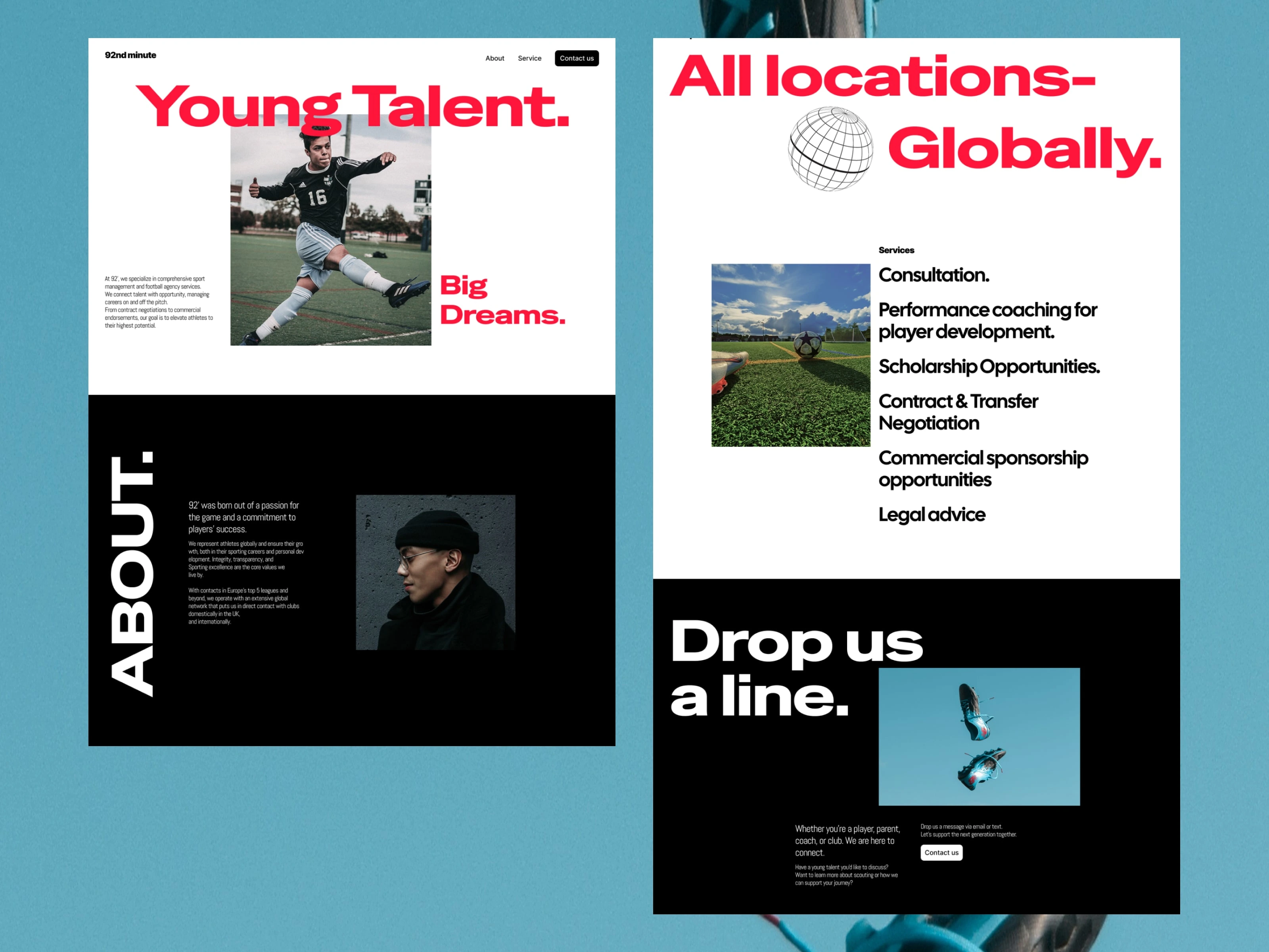 92' minute specialises in comprehensive sport management and football agency services. We created a modern and clean experience and design for the youth.