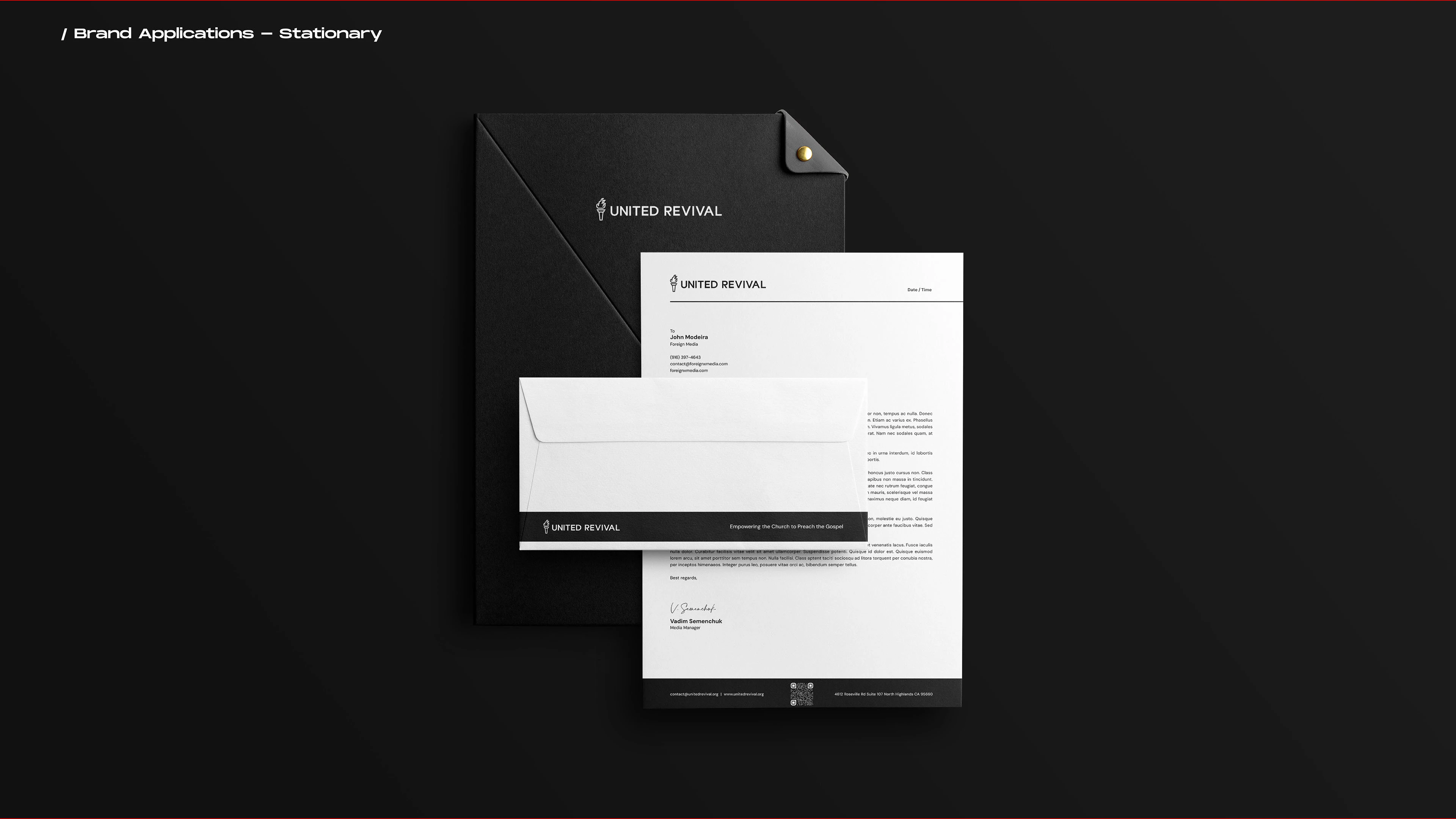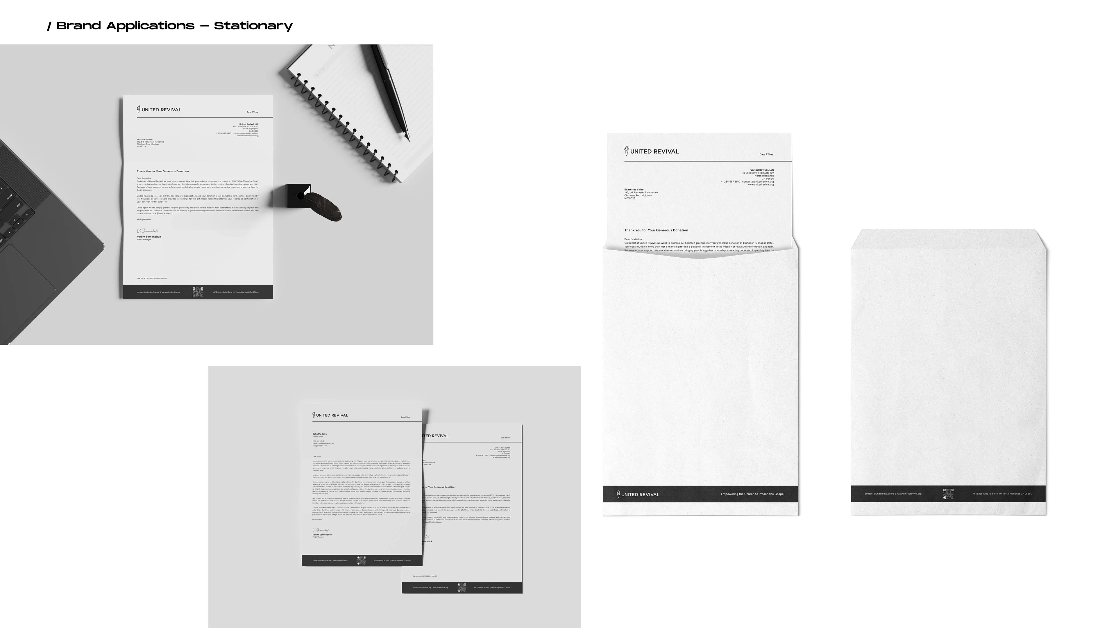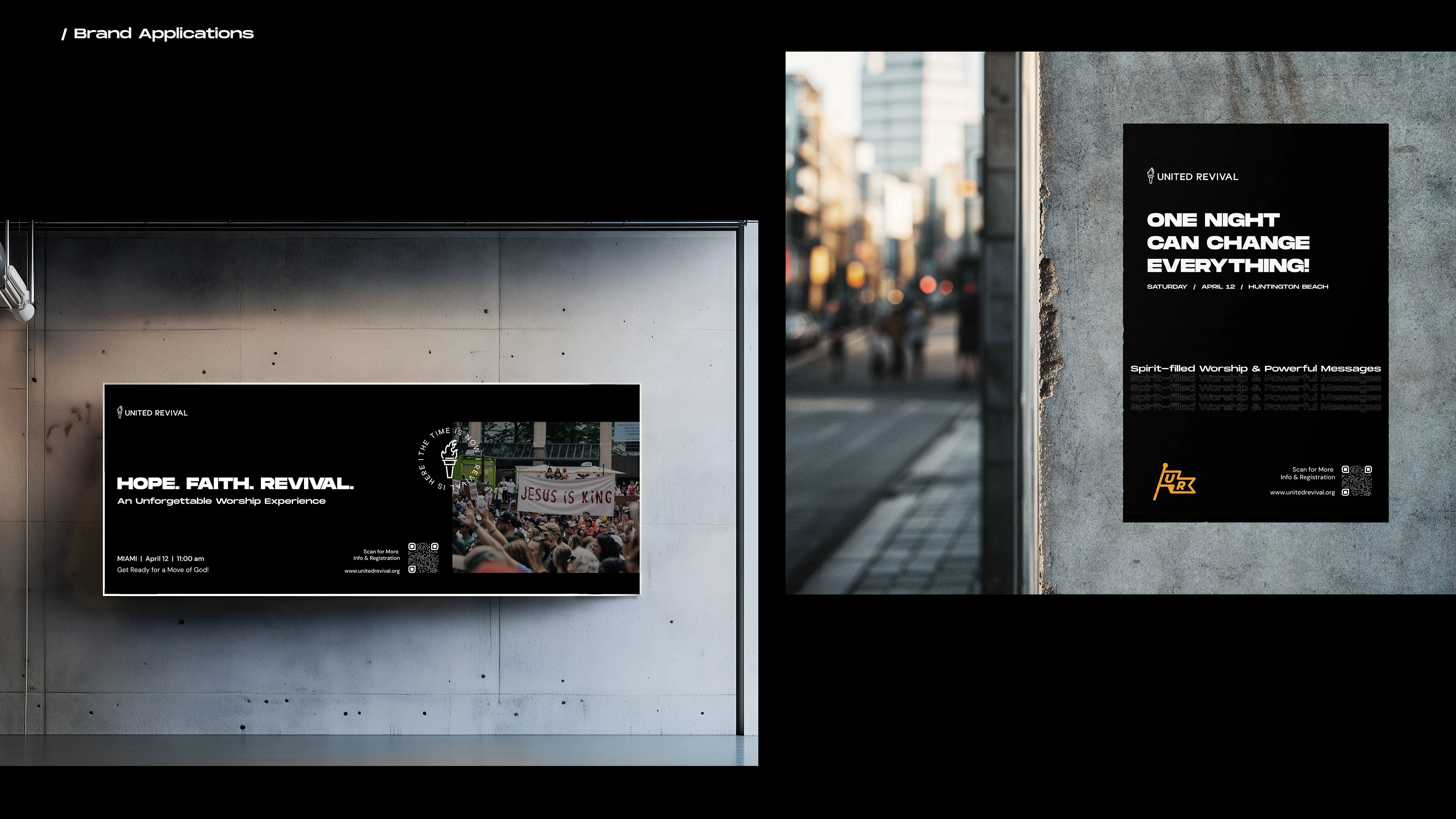 The final identity gives United Revival a cohesive, professional visual system that supports their mission and strengthens their presence across events, digital platforms, and communication materials.